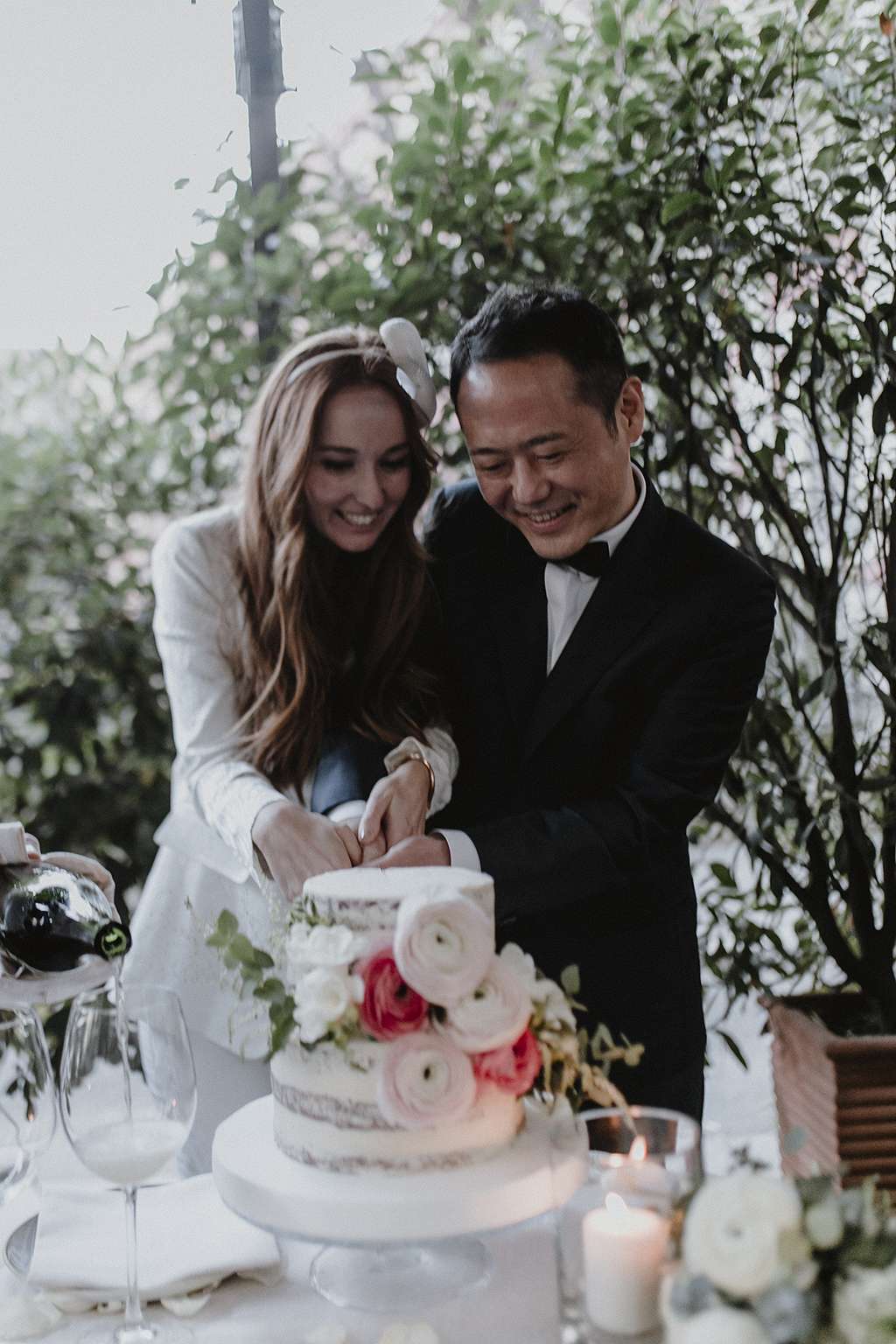 They cut their cake, a naked red velvet cake decorated with ranunculus, freesia and eucalyptus flowers, then moved into a local hotel bar. “We were actually surprised that people wanted to carry on the celebrations after lunch,” said Antoinette. “I wish we’d put more thought into this as I just hadn’t anticipated it.”