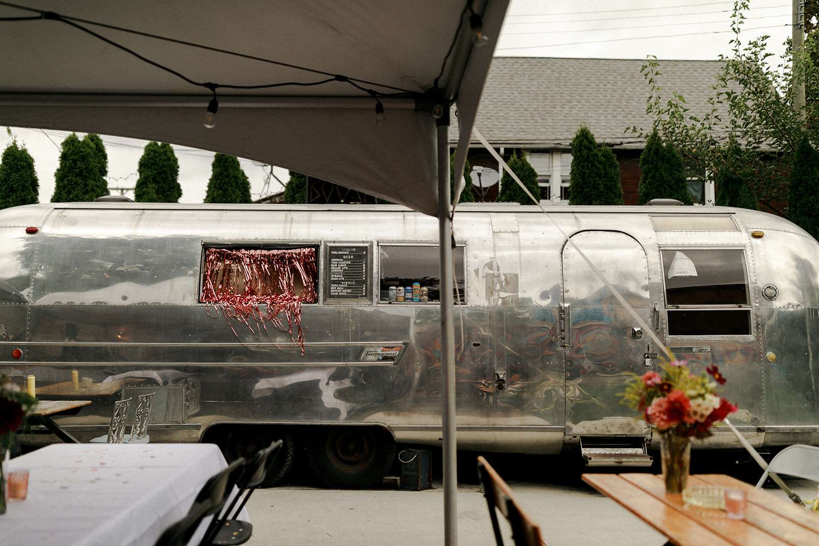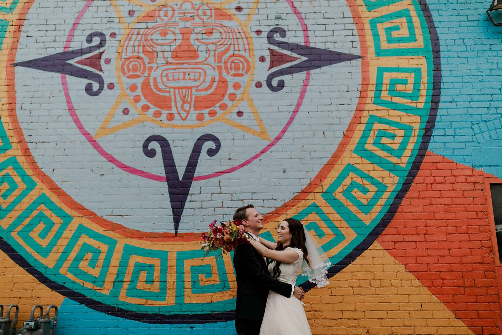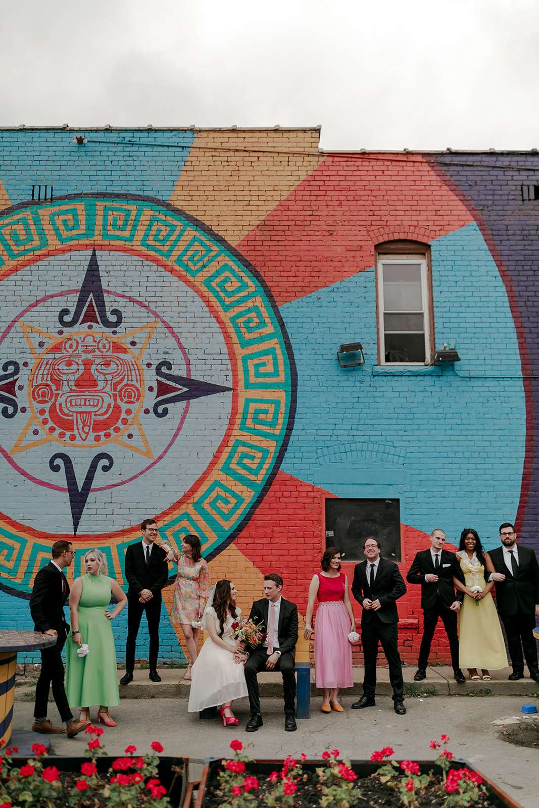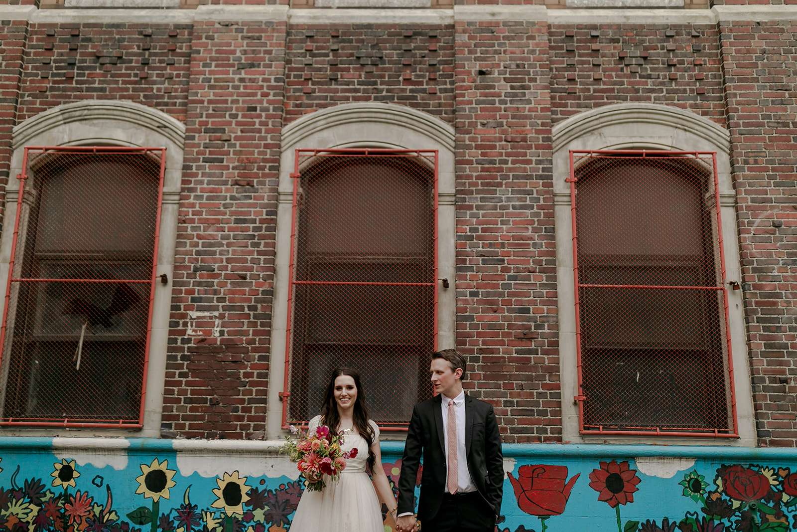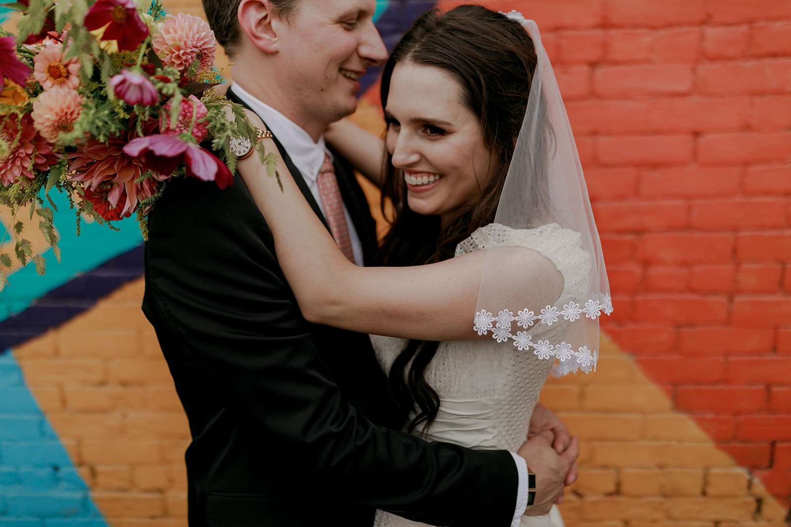 They eloped, just the two of them, and then hosted a big party reception at El Club in Detroit. “We were trying to achieve that dreamy vibe from The Virgin Suicides,” said the bride. “It definitely ended up being more vibrant, not so muted, but that was OK! We eloped at the courthouse a few days before the party which seemed like a very natural way to do it to us, but a lot of our family and co-workers were a little mystified by that plan!”