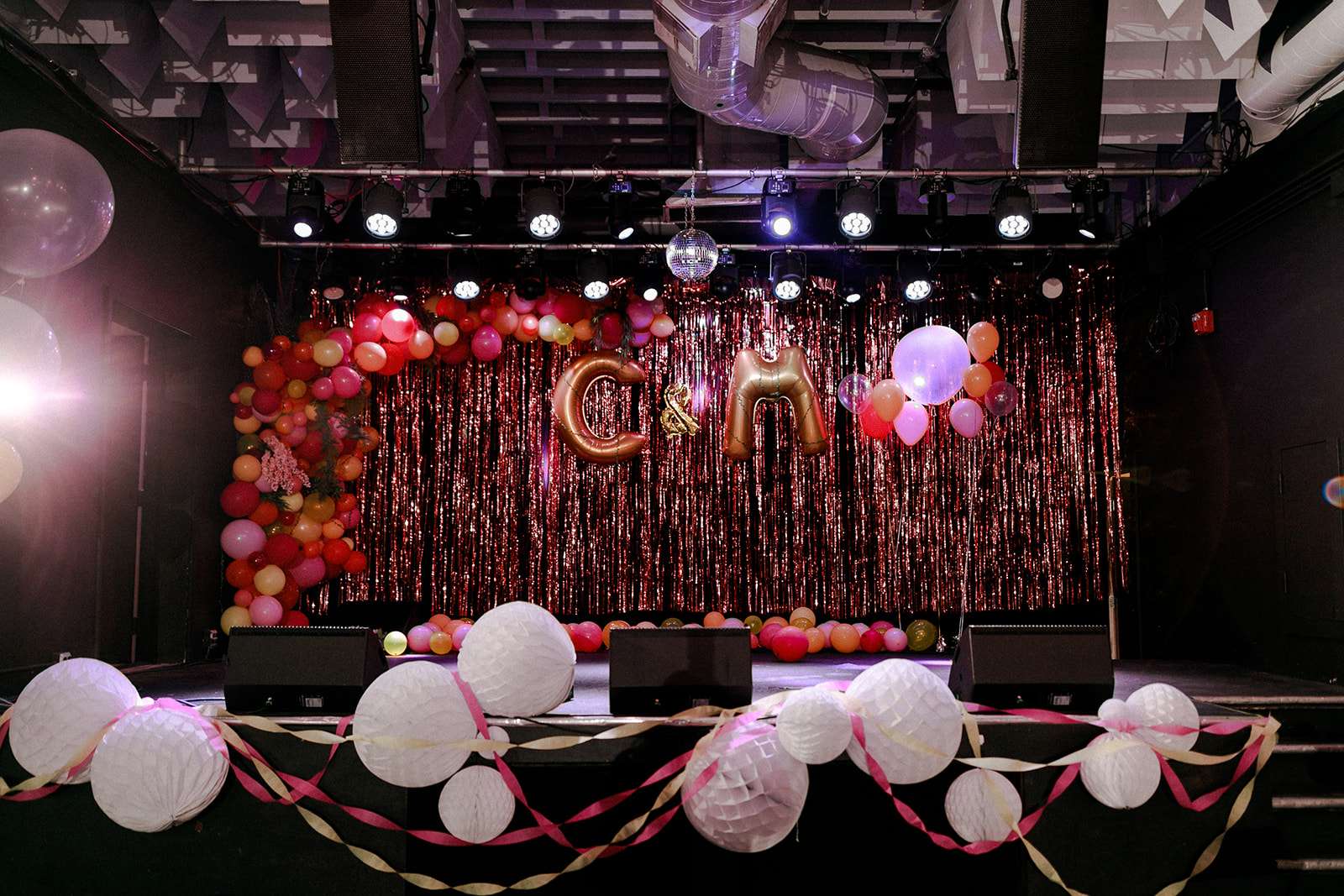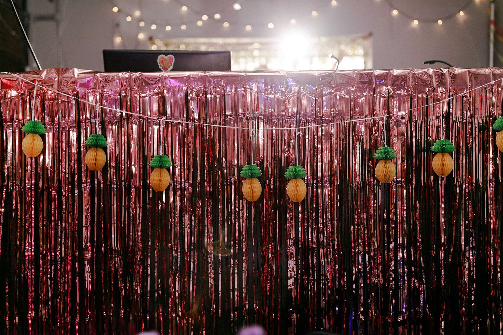 For decorations they went over the top and party fabulous! “A main concern was somehow getting a disco ball!” Courtney laughed. “For some reason this was somewhat difficult to rent one so we borrowed ours from a friend. We also had lots of balloons, garlands and tinsel purchased from michaels.com, ohhappyday.com, Amazon and bargainballoons.com.”