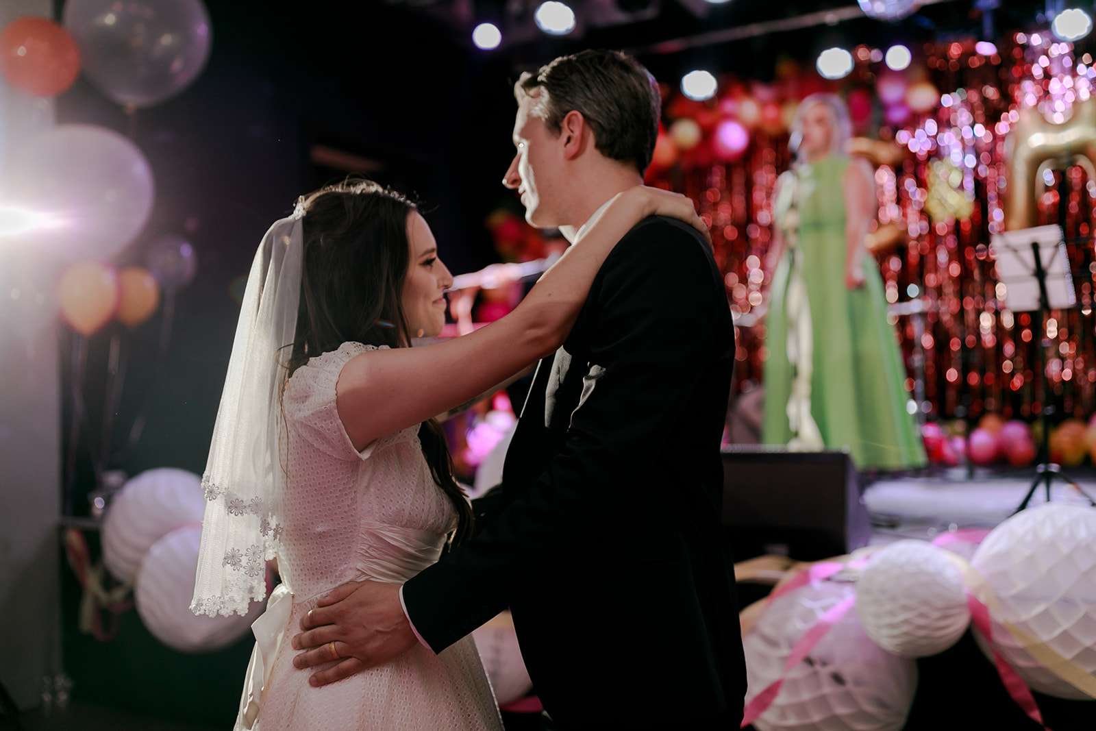 Courtney and Mark’s August wedding was inspired by the high school dances they went to as teenagers. They wanted to replicate the magic and excitement of those nights into their big day and we love how it turned out! Colourful, creative and just a little bit kitsch – all the things we adore here at Rock n Roll Bride!