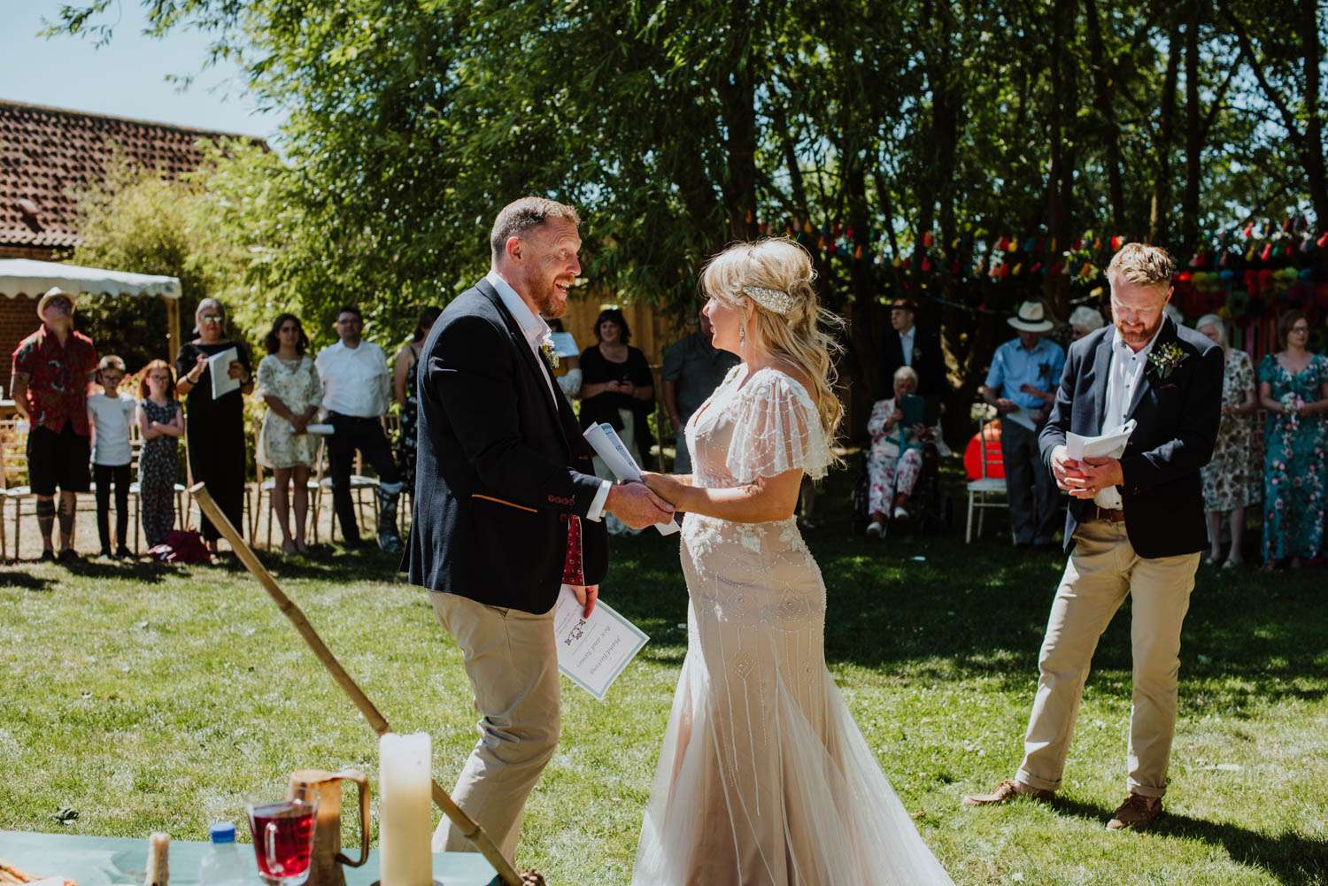 The druid handfasting ceremony was a really special moment (they did the legal ceremony a few days prior). Instead of an aisle, their guests were gathered in a circle around them, their children were also really involved.