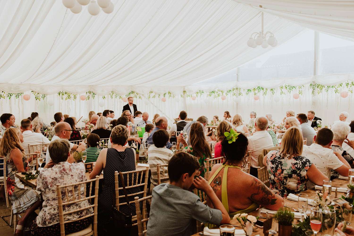 James and Bex go to Glastonbury every single year, but as there was no festival in 2018, they decided they would get married on the same weekend and host their own! The day was held at The Pheasantry Brewery, near their home in Nottinghamshire. As well as making their day feel perfect for them, their family and in particular their children were a really important part of the day. Between them they have five kids, two each from previous relationships and the youngest, Frank, together. They even painted Frank’s buggy with the pyramid stage and portraits of Michael Eavis and Dave Grohl on it!