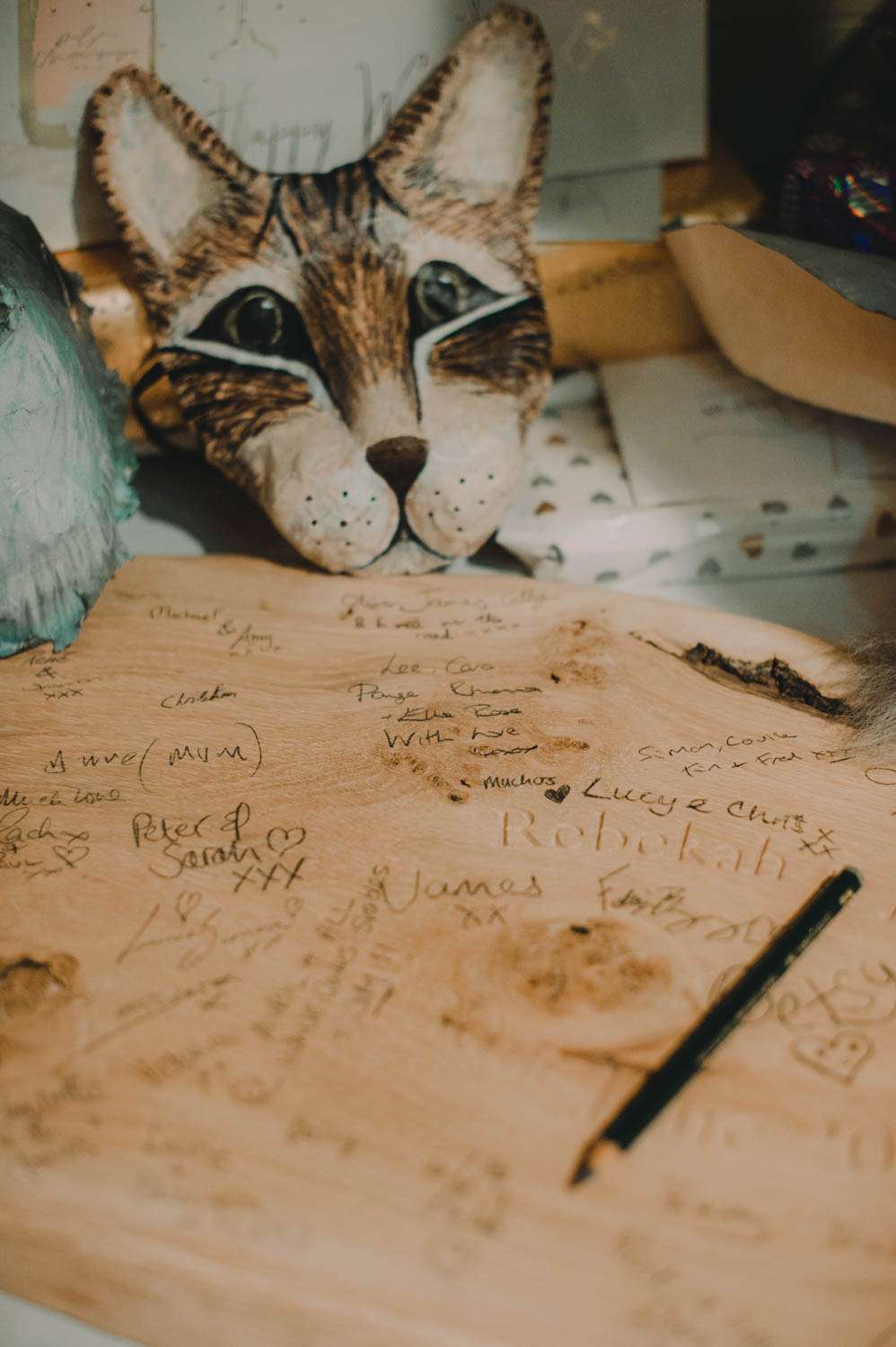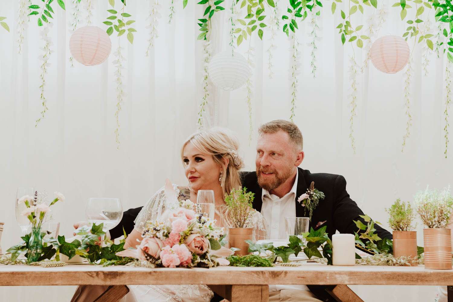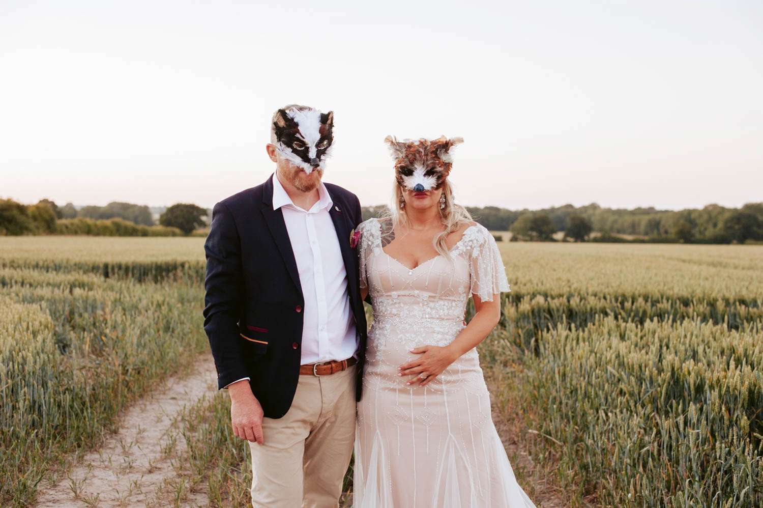 Incredibly, they managed to pull of their wedding with a budget of just £7,500! They did PLENTY of DIY including the headpieces, all to signs, the tents and the flowers. “One of my favourite projects was the animal masks we used in the photos as it got dark. My dress was from True Bride and I modified it myself.” The fruit cake was made by a friend and most of the flowers were picked from the family garden.