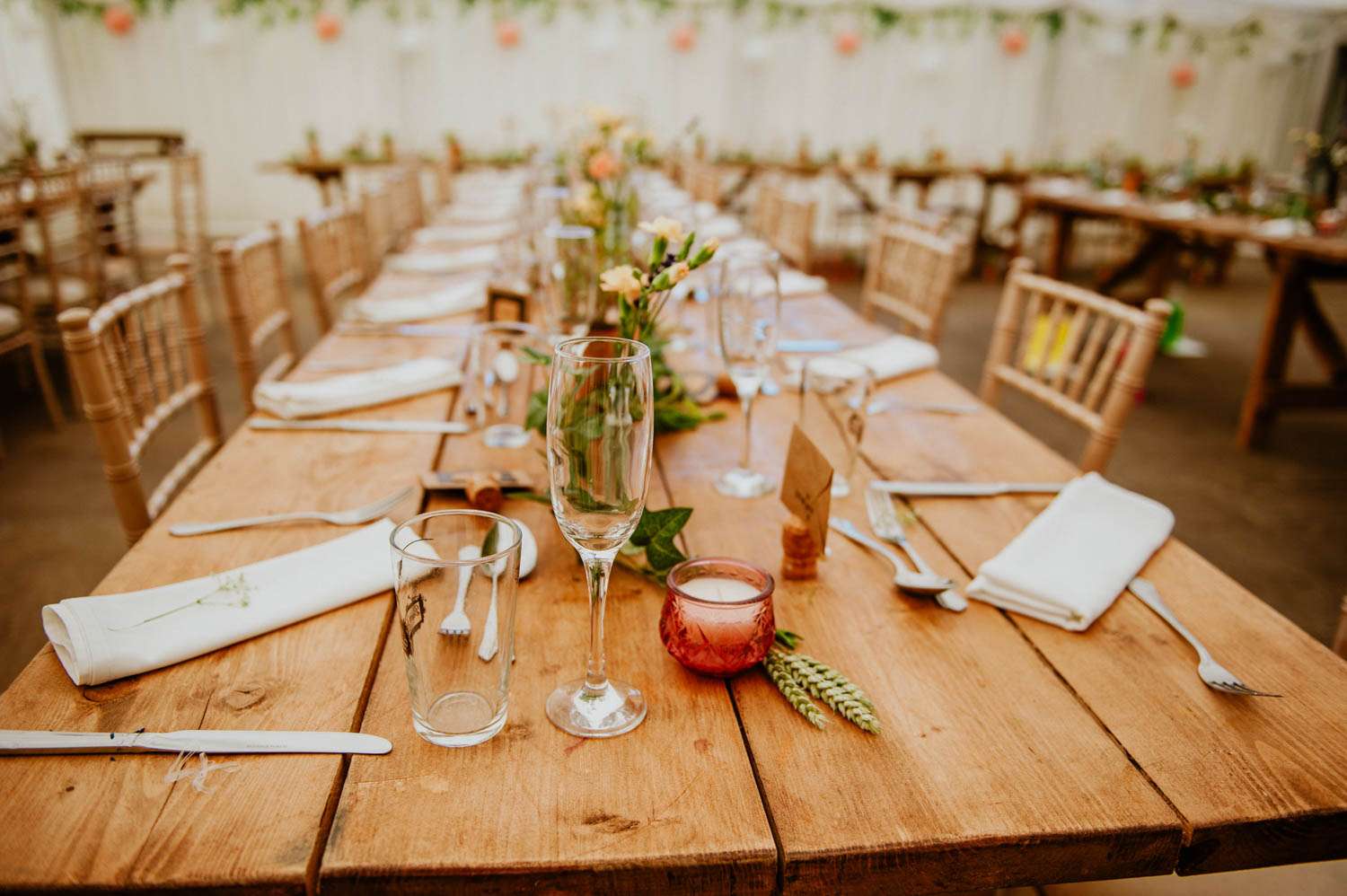 “Our wedding was a Midsummer Night’s Dream meets Glastonbury festival meets English village fete meets The Wicker Man!” said the bride. “As a family we usually go to Glastonbury Festival, its where James proposed in fact, and on hearing 2018 would be a fallow year and there would be no festival we decided to have our own, that way we get to celebrate our anniversaries there!”