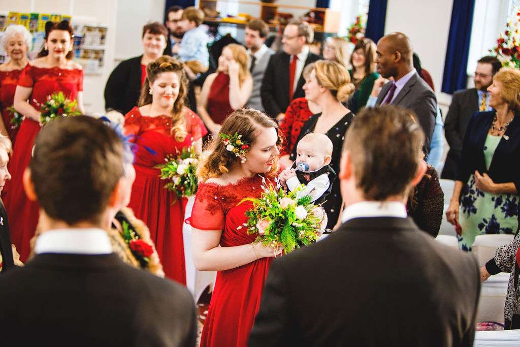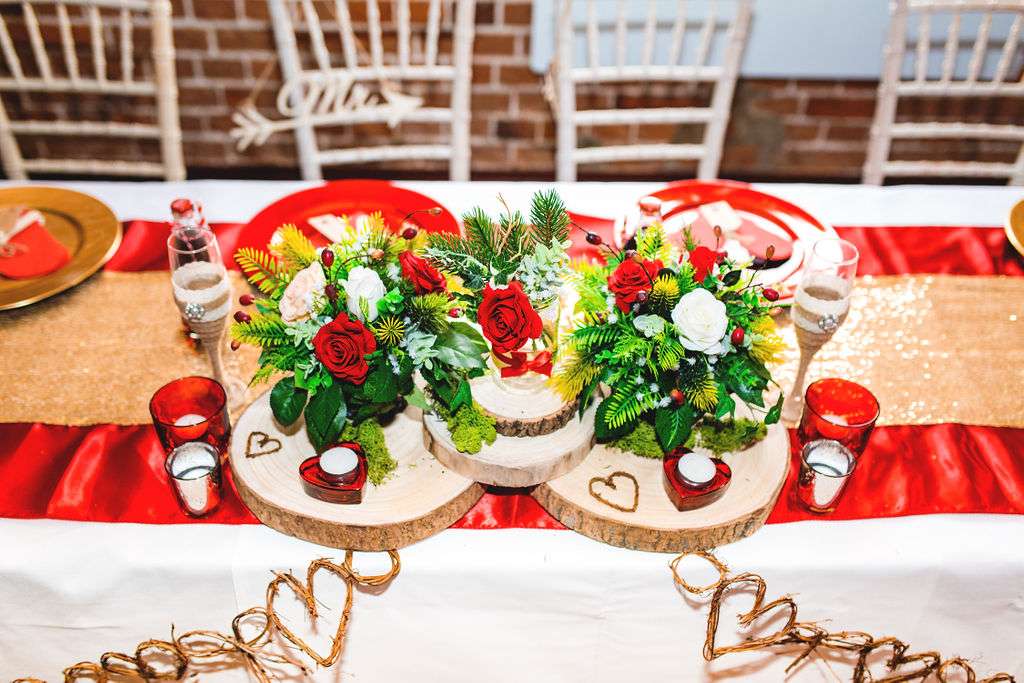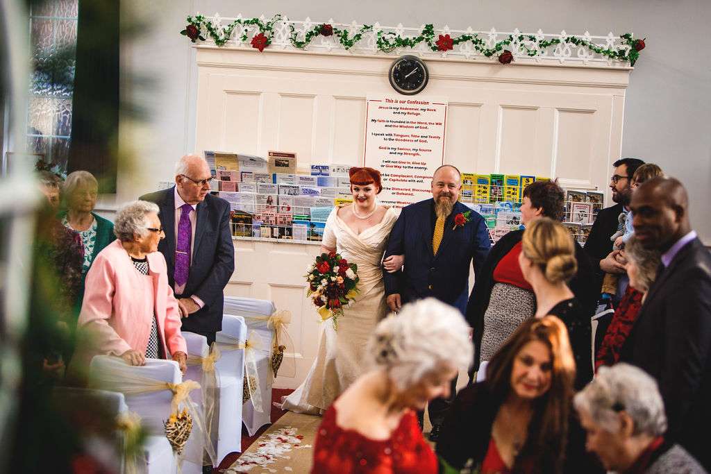 Sarah loves decorating her and Richard’s house for Christmas, so this drew the first inspiration for the couple’s November wedding day. “We wanted a family friendly, rustic yet glamorous, cosy and romantic winter wedding,” explained Sarah. “I love decorating the house for Christmas with rustic, old fashioned decorations and lots of winter foliage, and wanted to capture that coziness for our wedding. I also love all things vintage, especially 1950s and Rockabilly, and had to give a nod to the styles I love so much.”