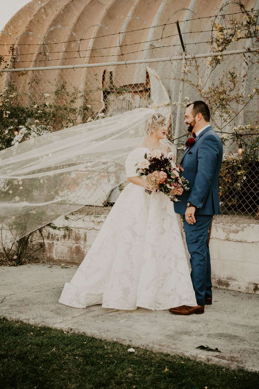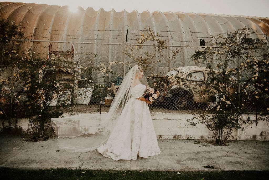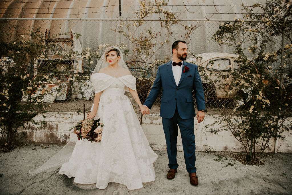 Unlike many couples who head to Vegas to elope, Stephen and Perla live and work in the city so they had the capital of unique weddings right on their doorstep. The couple chose The Doyle to host their day – a laidback, downtown venue complete with a cool, industrial space that they could put their own stamp on, and resident baby goats and alpacas! “The venue having baby goats and alpacas in residence was a huge plus,” said Perla. “They made for some adorable photos and everyone loved petting them during cocktail hour!”