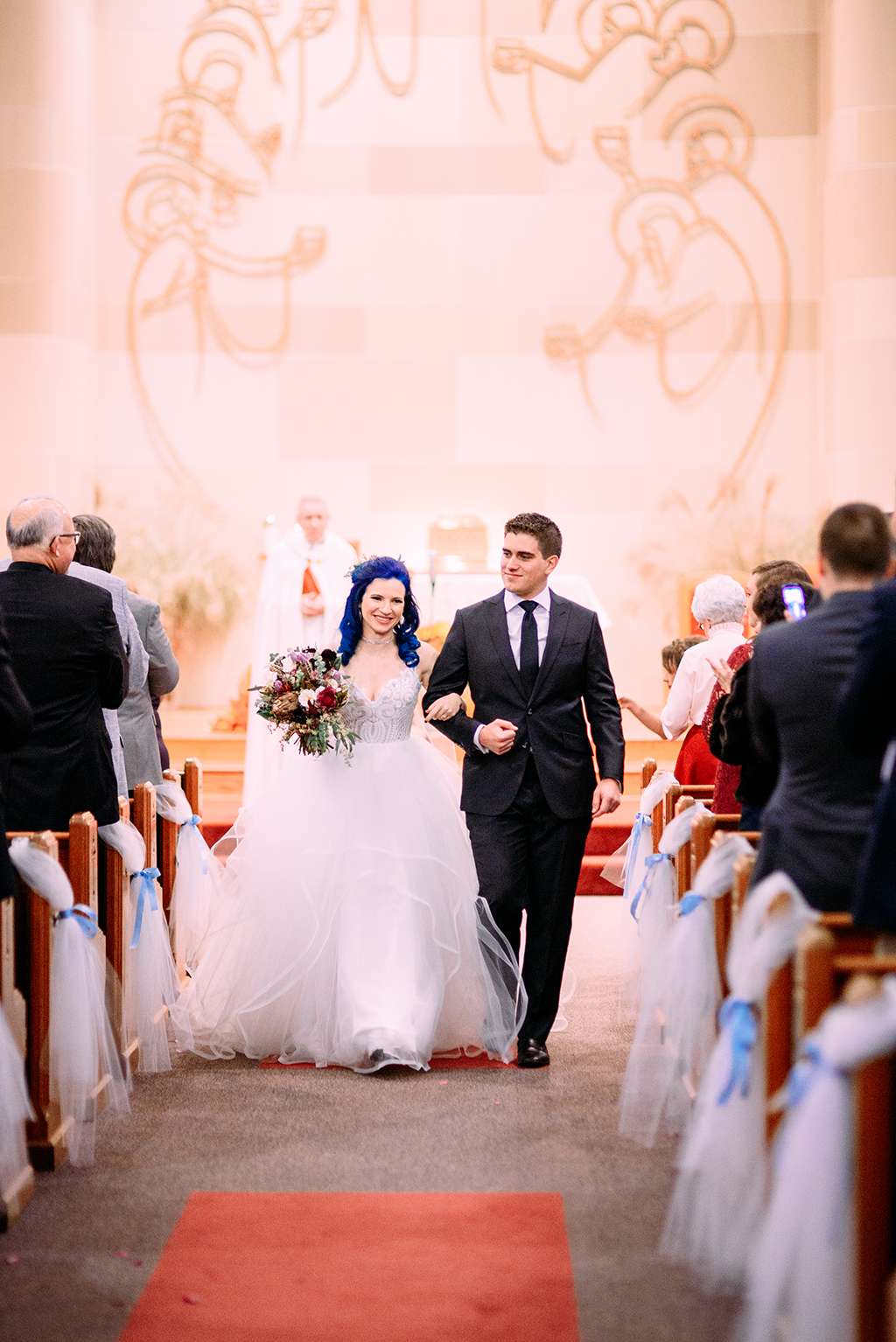 They married in a traditional Catholic ceremony, and although the church wedding completed contradicted their style, with Catholic families, they felt they felt the serious nature and ritual behind a religious ceremony was important to keep. “You have very little creative control over Catholic ceremonies,” said Sarah. “Although obviously we knew this ahead of time, it meant that the ceremony wasn’t as emotional as I thought it would be, and at times felt impersonal.”