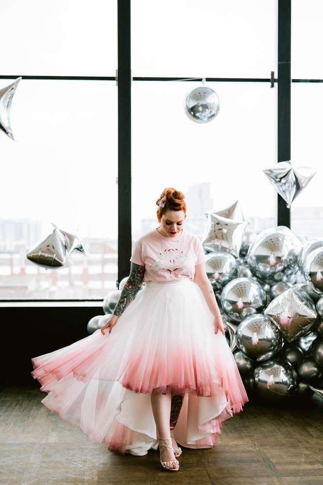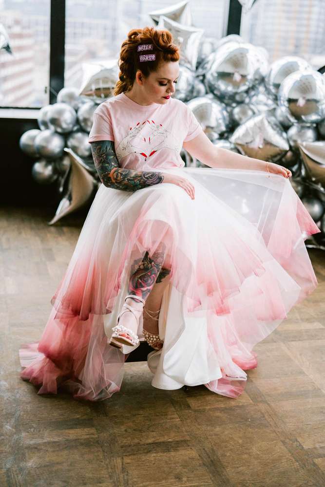 Finding just one dream wedding outfit for is a pretty tall order, which is why we are ALL about wedding day outfit changes here at Rock n Roll Bride! Whether that’s as simple as swapping your veil for a crown, adding a warm jacket, or kicking off your heels (literally!) so you have something more conformable to dance in… Or you want a whole second outfit that’s more suited to throwing some serious shapes on the dance floor, we are here for it!