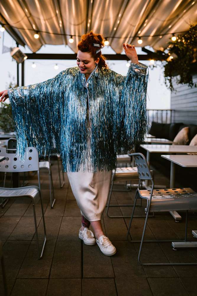Finally, we went full-on party mode! This blue tasselled jacket from Bottle Blonde Studio was SO fun to shoot and wear!