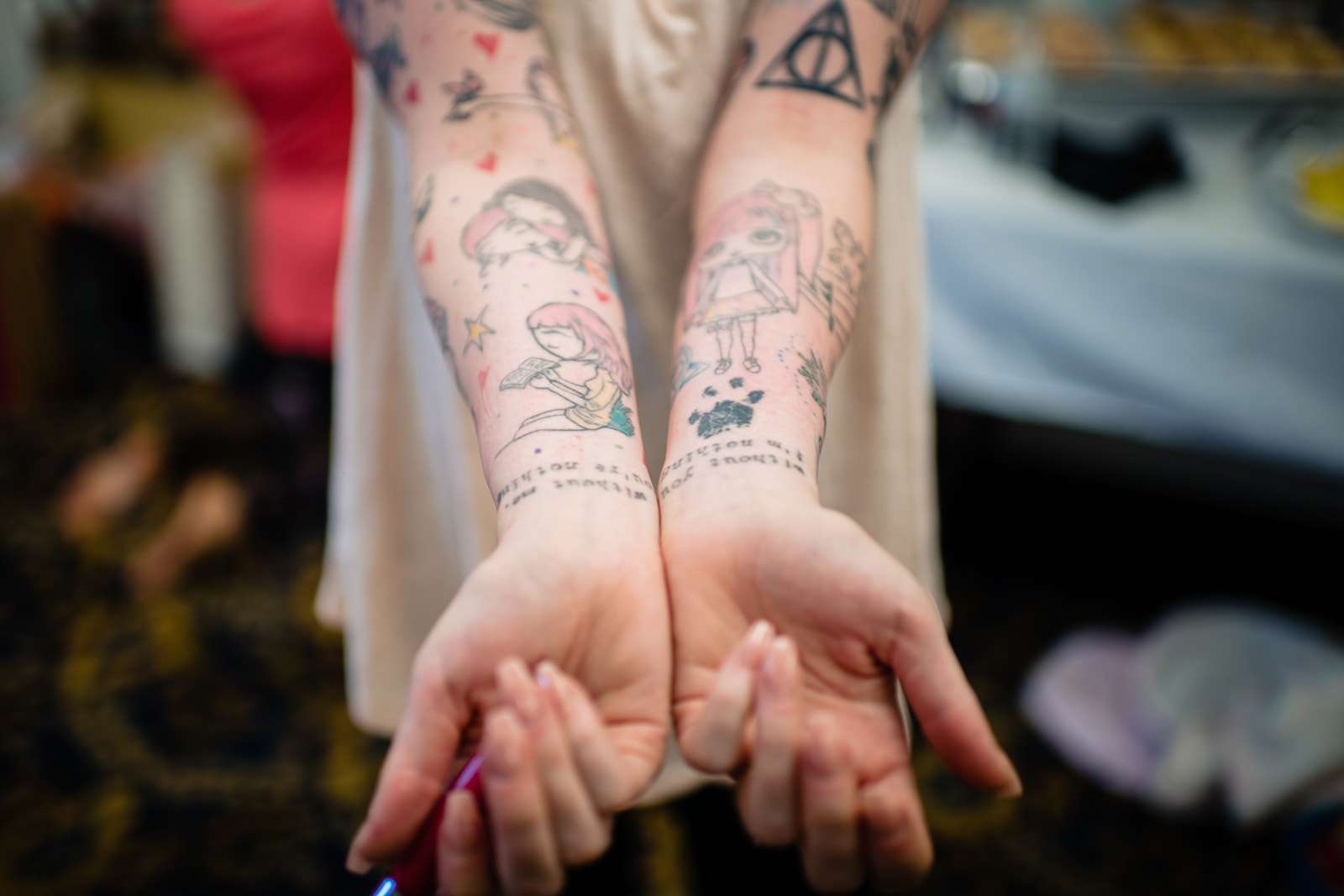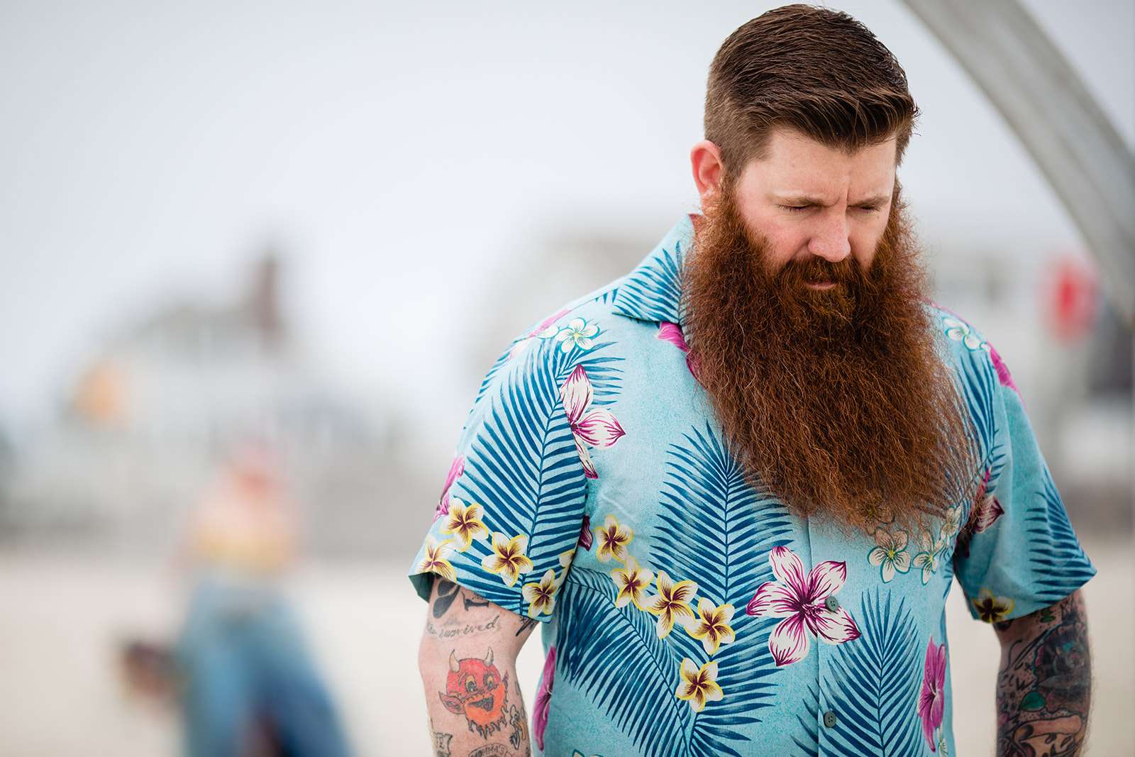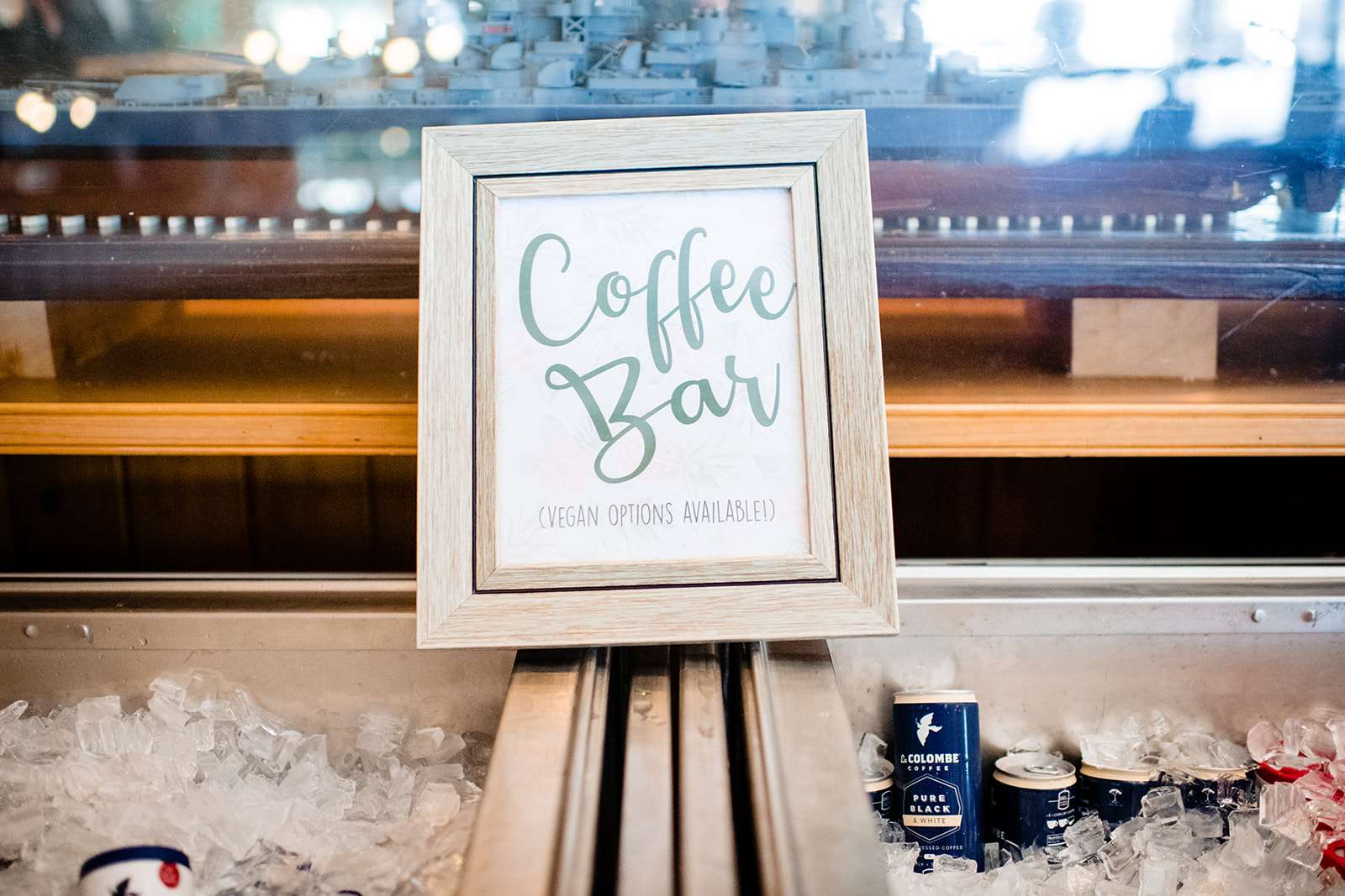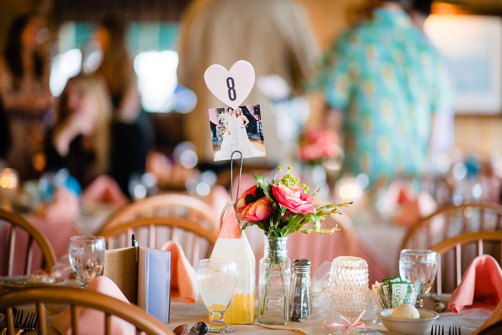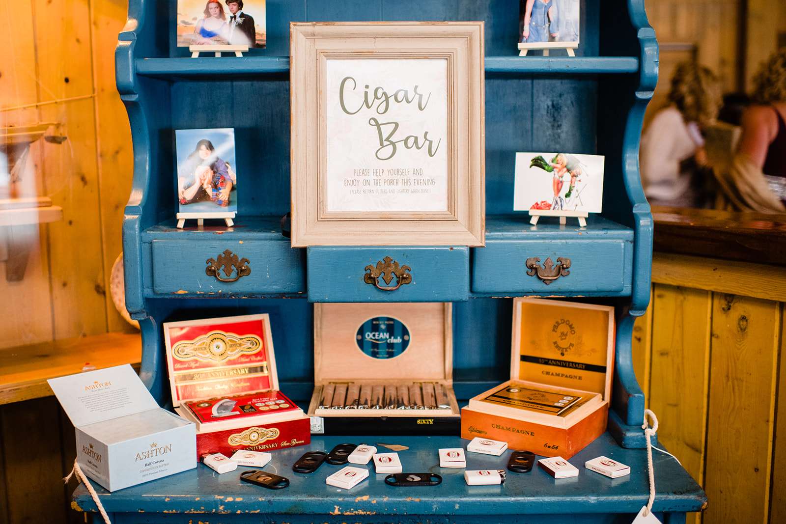 “The guys were dressed down in Hawaiian shirts and our dress code was casual (with Hawaiian shirts encouraged). My girls all wore different dresses in different colours and my dress was blue and gold. I wore our baby down the aisle in a ring sling, we didn’t have a cake, we didn’t do any of the typical wedding tosses. Joe changed into a custom Phillies jersey for the reception and we had a coffee bar and a cigar bar. Our wedding was also a dry wedding. I’m straightedge and Joe is in recovery, as was 90% of our guest list. Everyone still had an amazingly fun time – we had to ask the venue coordinator to turn on the lights at the end of the night so people would take the hint and leave!”