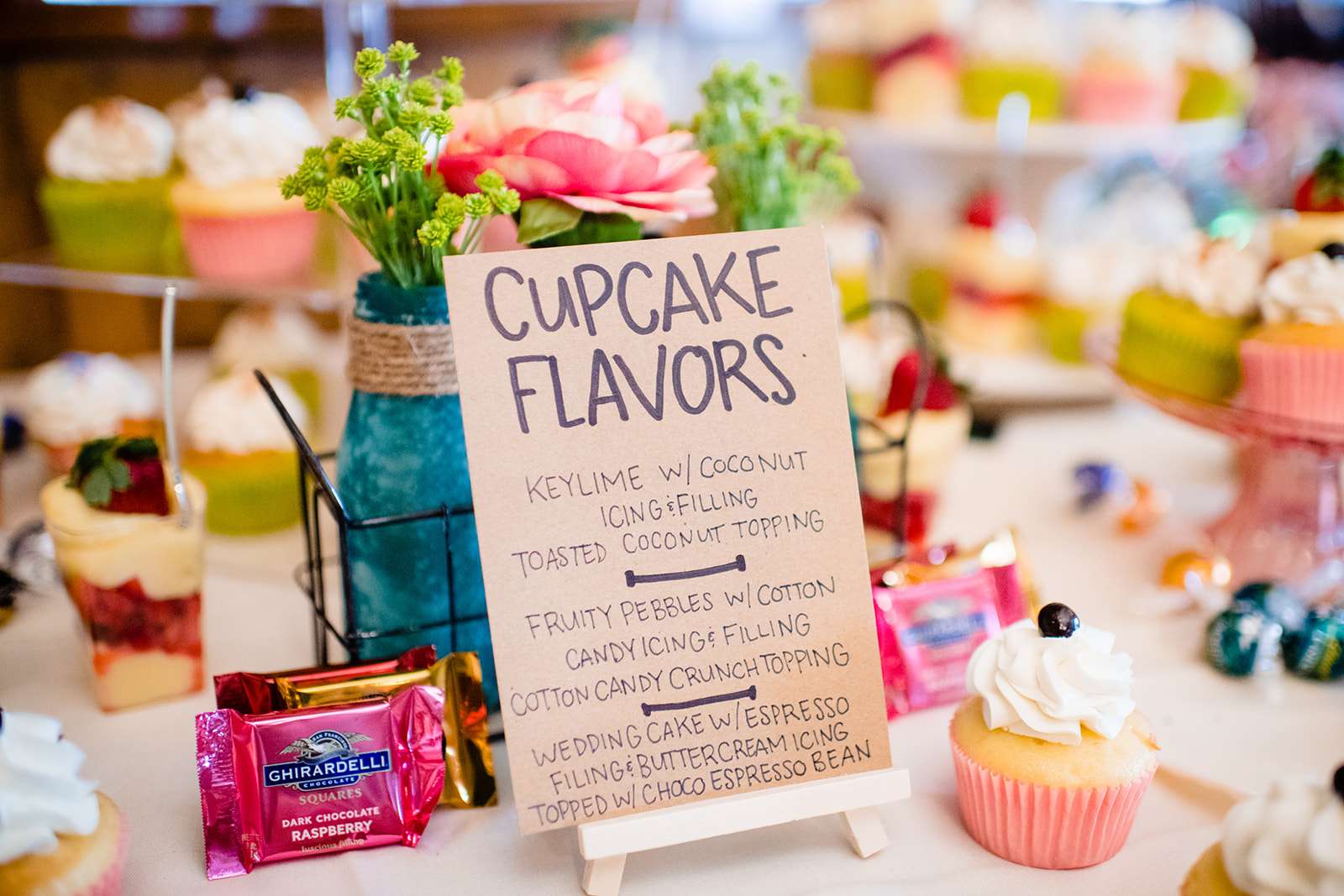 There was no theme other than just picking things that they liked and so much was homemade – from the stationery to the decorations, the signs, the ceremony arch, the centrepieces and even Catie’s dress. it was made up of a simple tulle skirt (from Etsy) which she and a friend then customised by adding the gold stars. They also made her matching gold top. Her flower crown was found on Amazon and as comfort was key, her shoes were Vans.