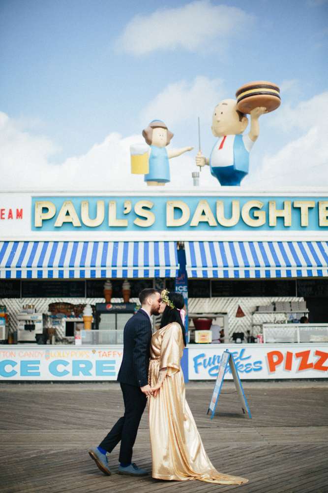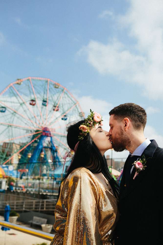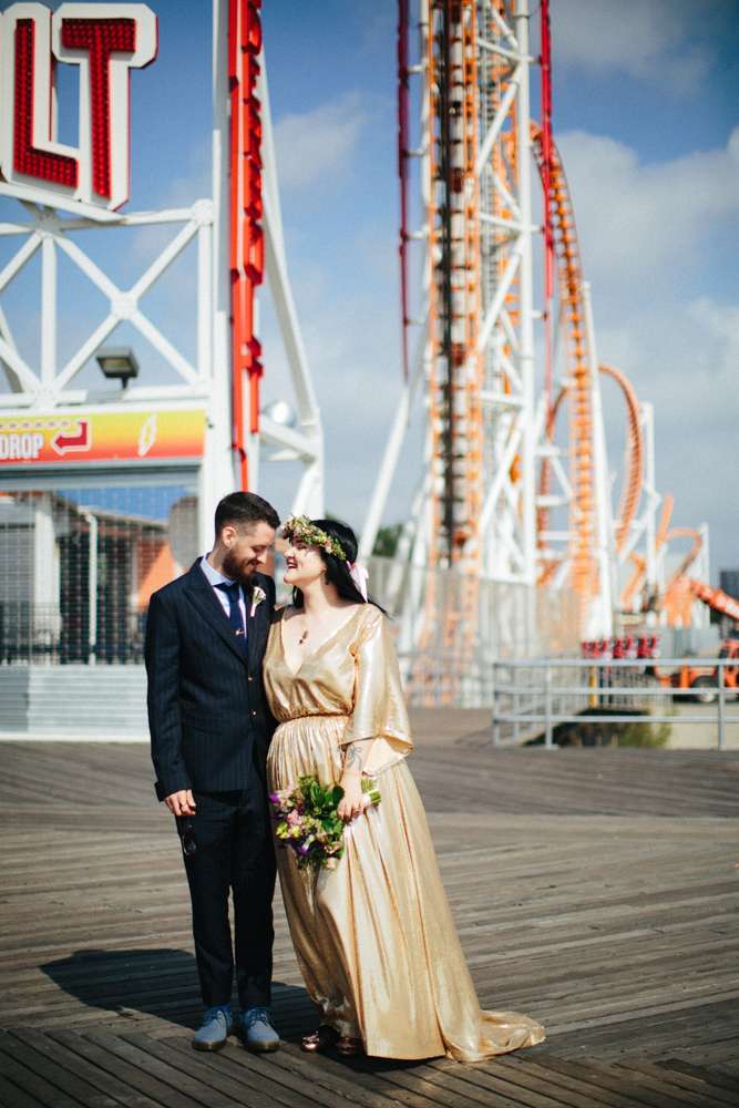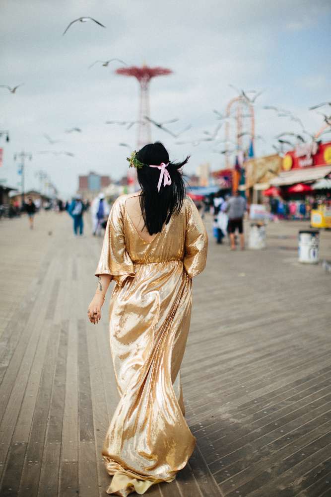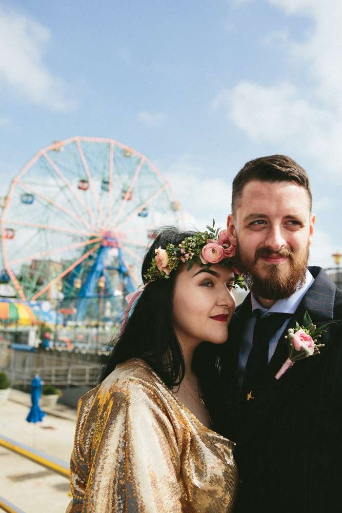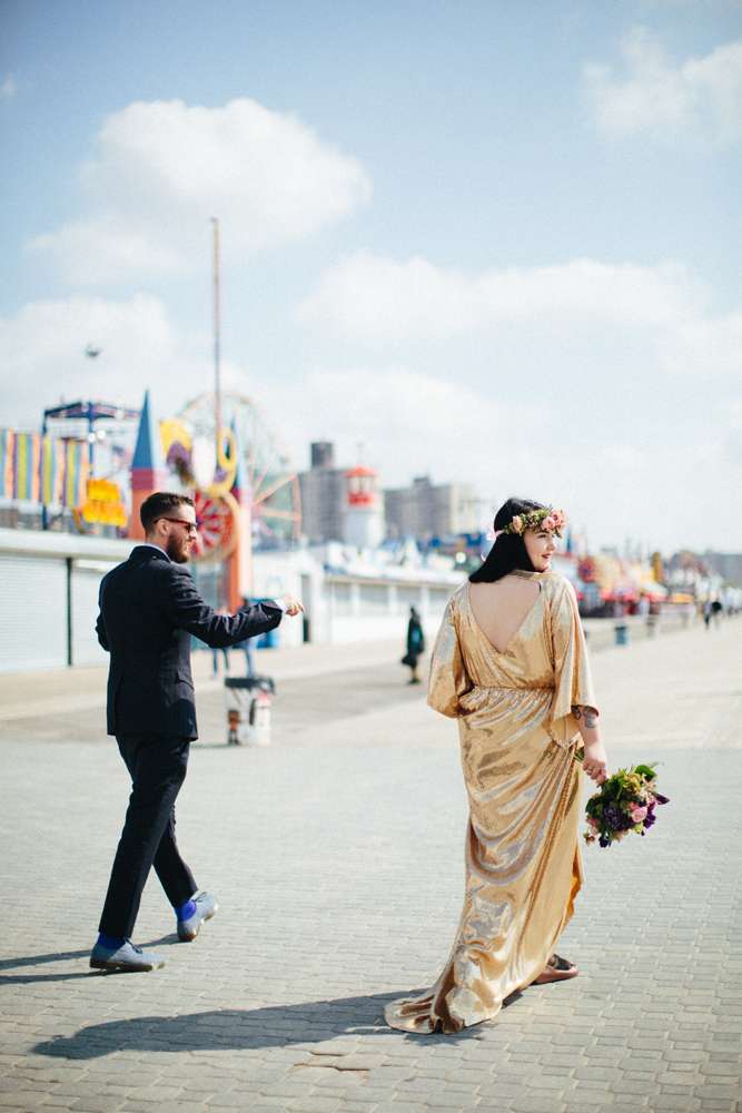“Our wedding theme was ‘gold and freedom!'” said Yvette. “We wanted the theme to be no pressure, just free and for ourselves. We got engaged at Coney Island, Brooklyn in 2015. This became the inspiration for us to return to Brooklyn to get married. We wanted it to be very much about marrying each other for the right reasons and starting married life in a stress-free way.”