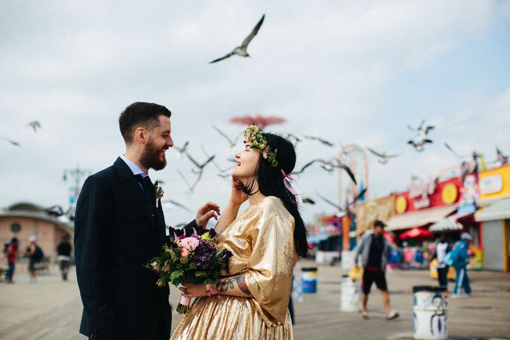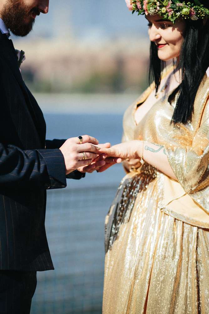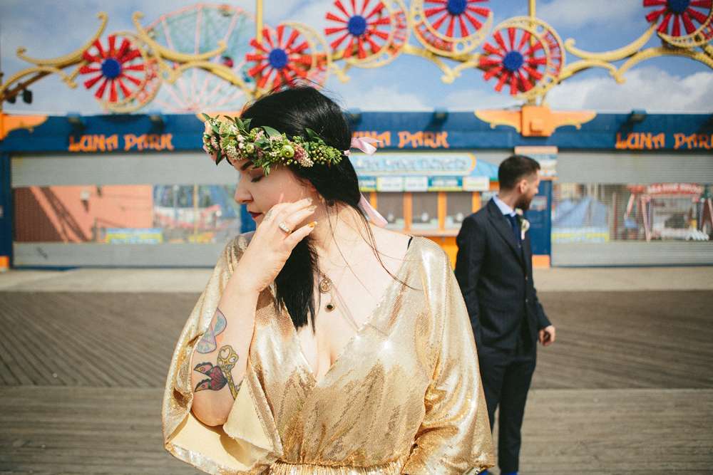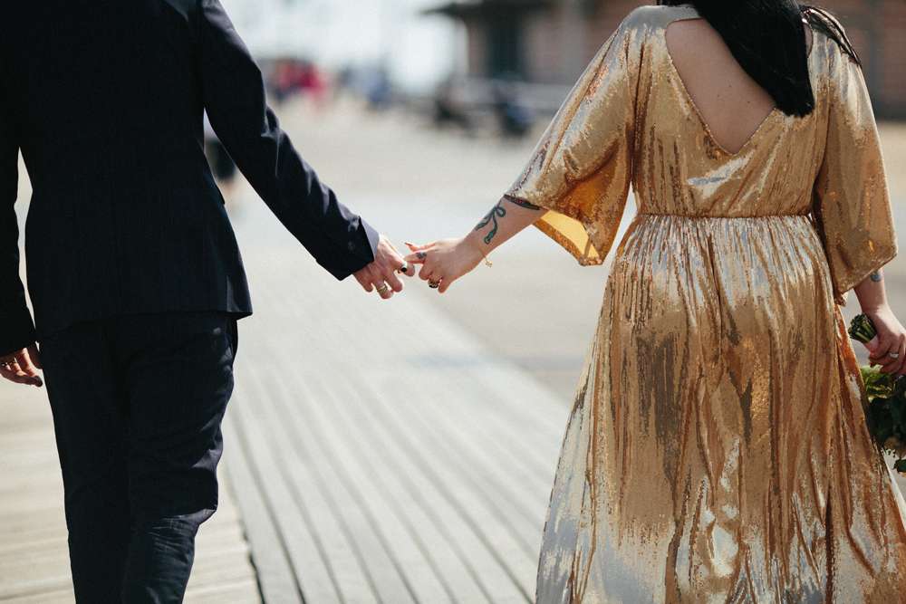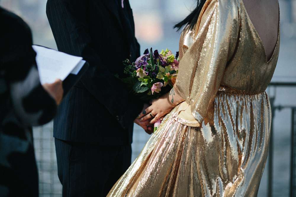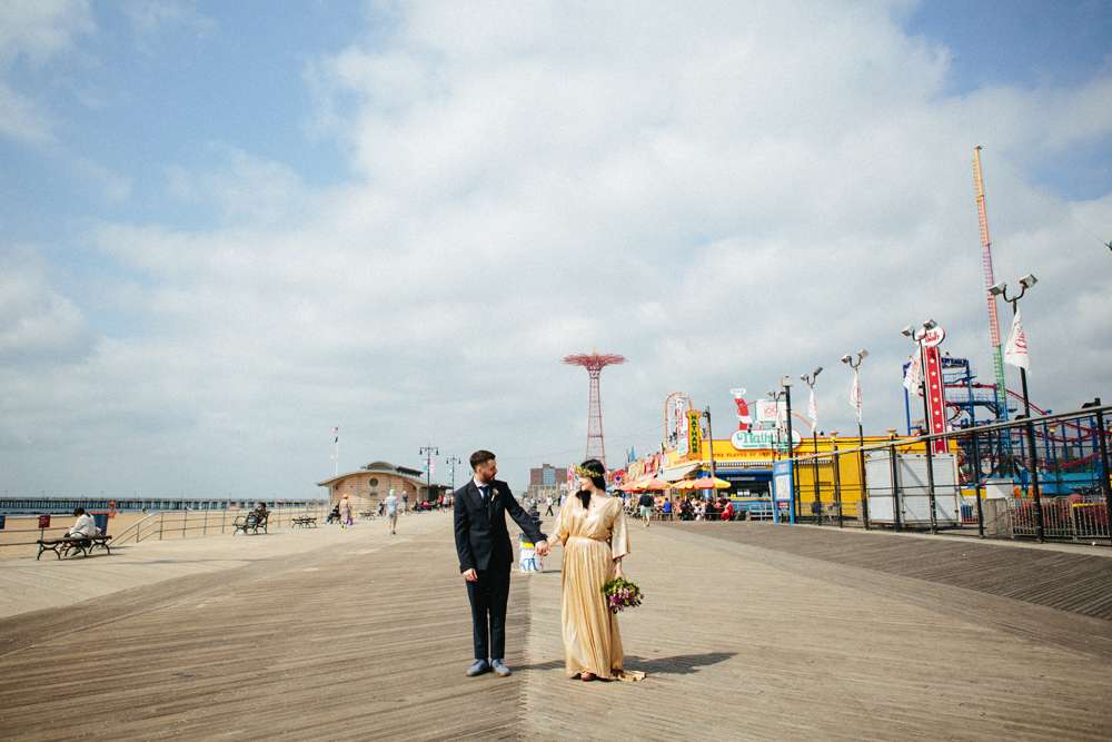“Our wedding theme was ‘gold and freedom!'” said Yvette. “We wanted the theme to be no pressure, just free and for ourselves. We got engaged at Coney Island, Brooklyn in 2015. This became the inspiration for us to return to Brooklyn to get married. We wanted it to be very much about marrying each other for the right reasons and starting married life in a stress-free way.”