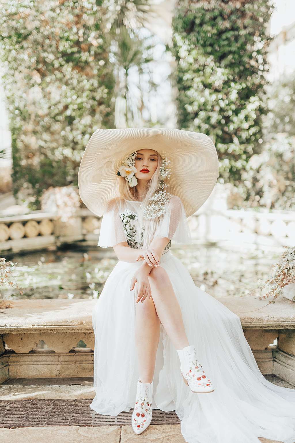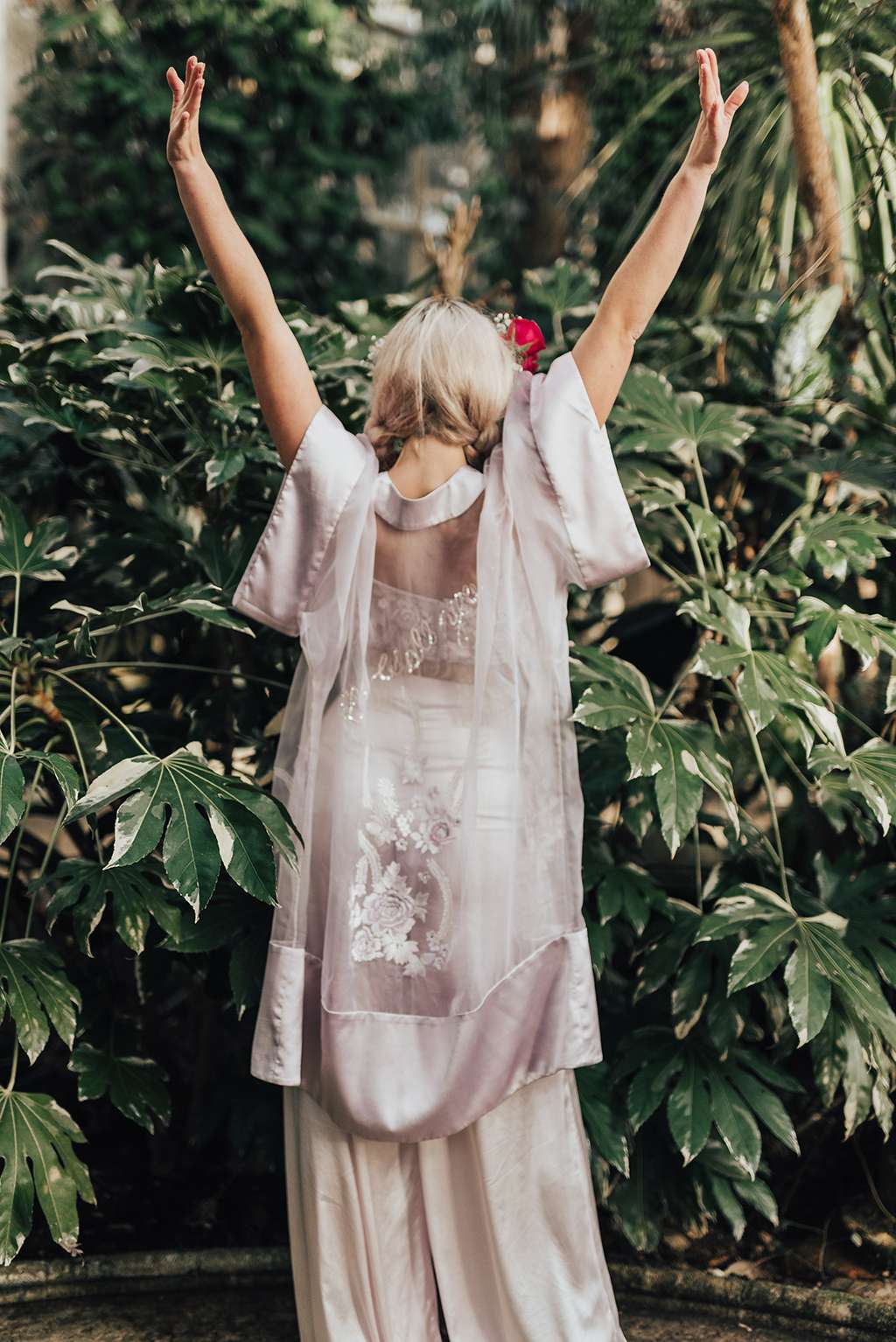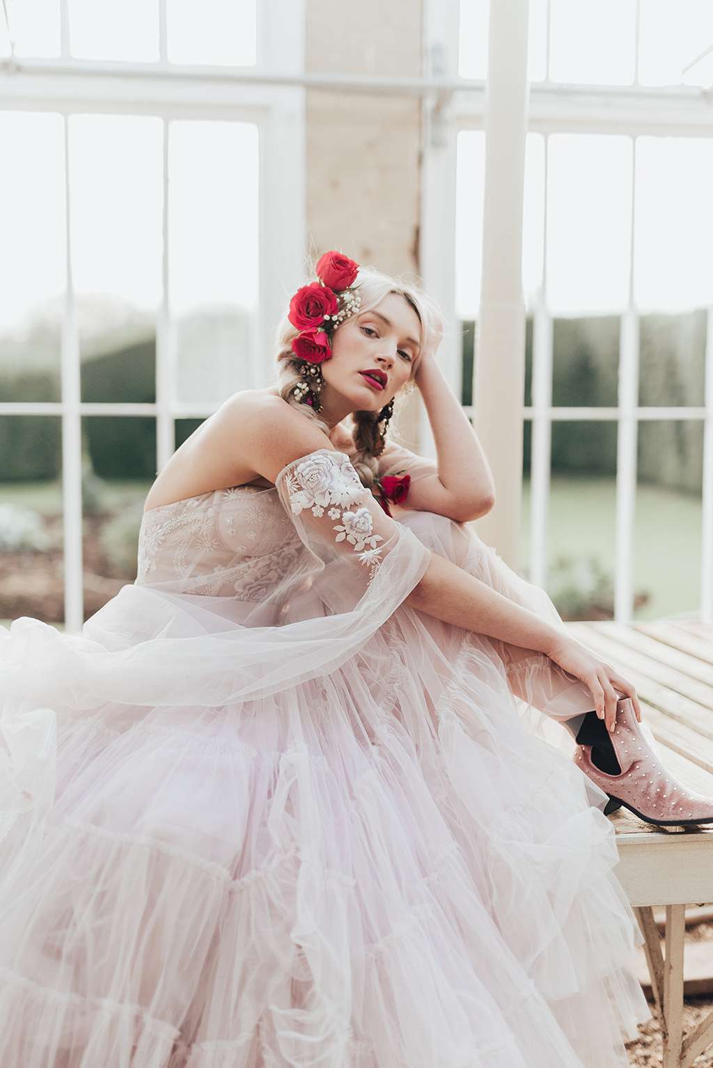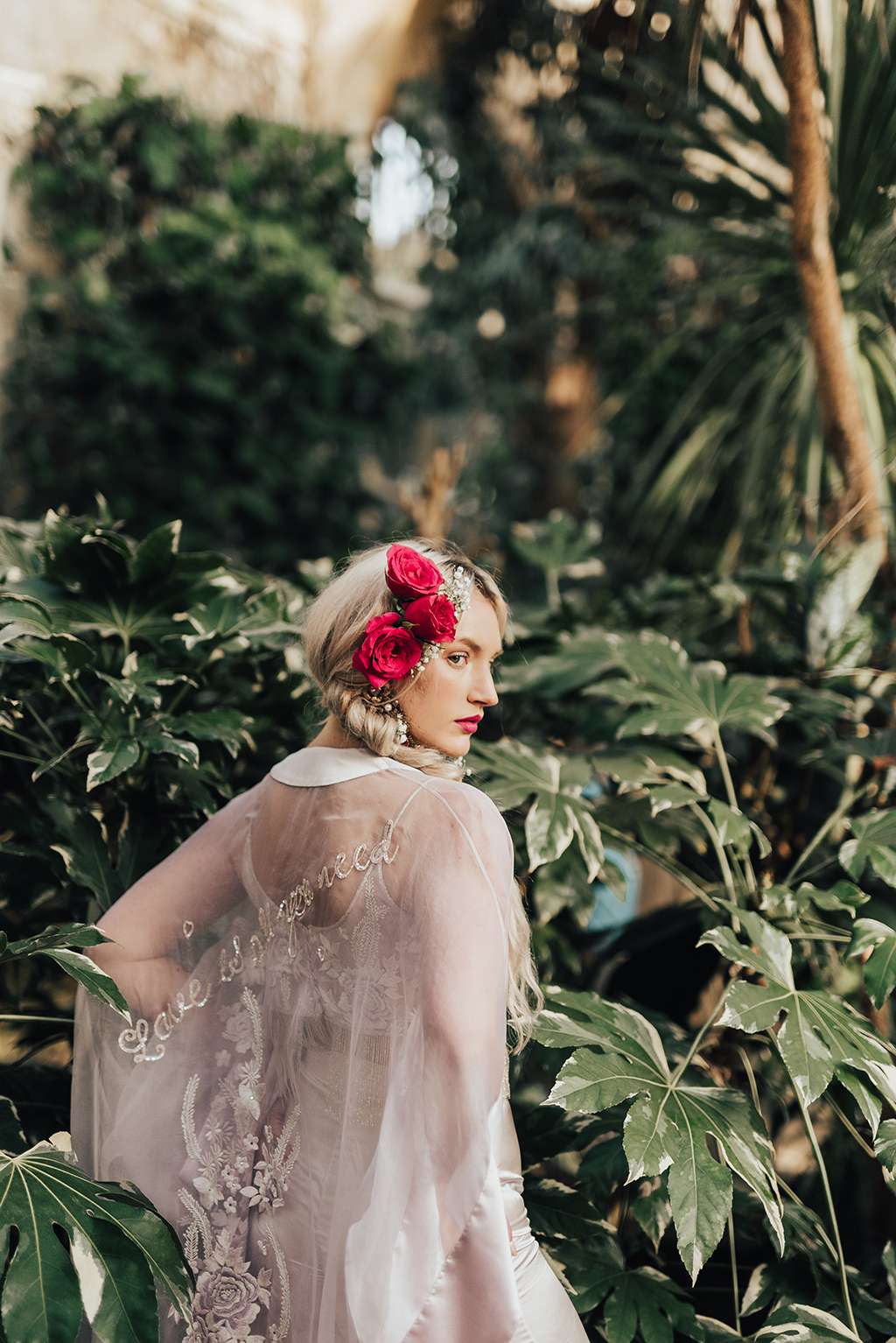 “Wear what the hell you want, be bold and look amazing. Beautiful does not have to come from stereotypes of weddings! With this shoot, we wanted to keep the beauty of bridal but get rid of the typical – we ditched the bouquets, instead filling model Olivia’s hair with flowers to keep the look casual and up to date.