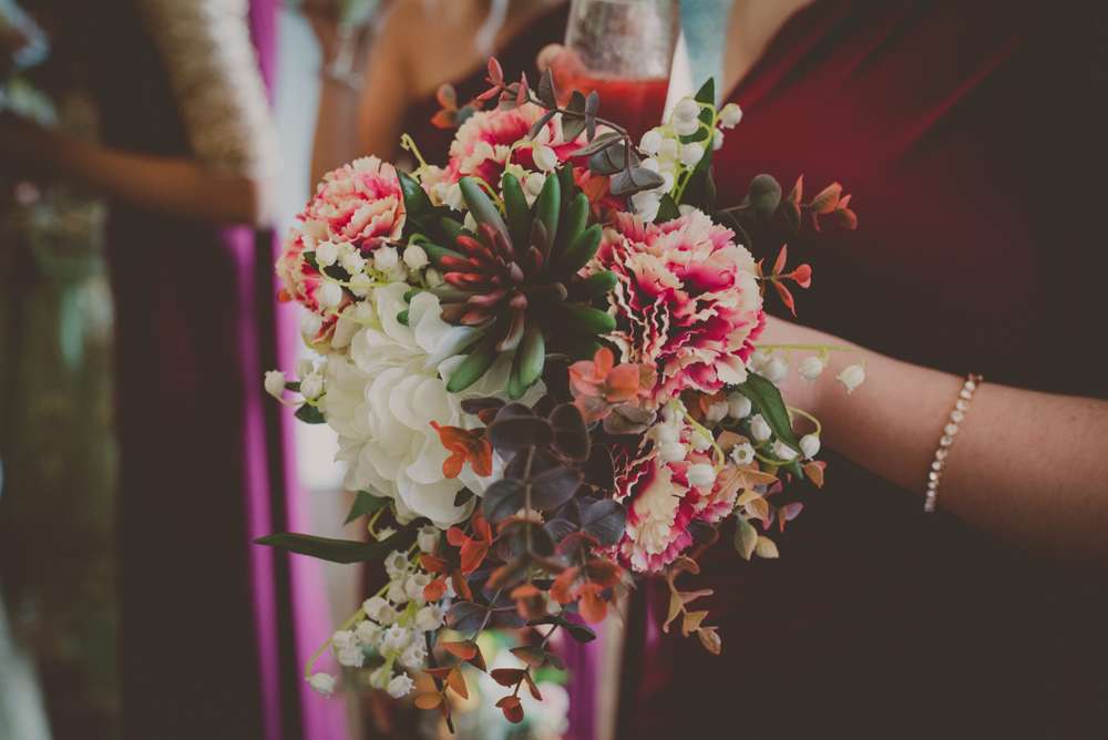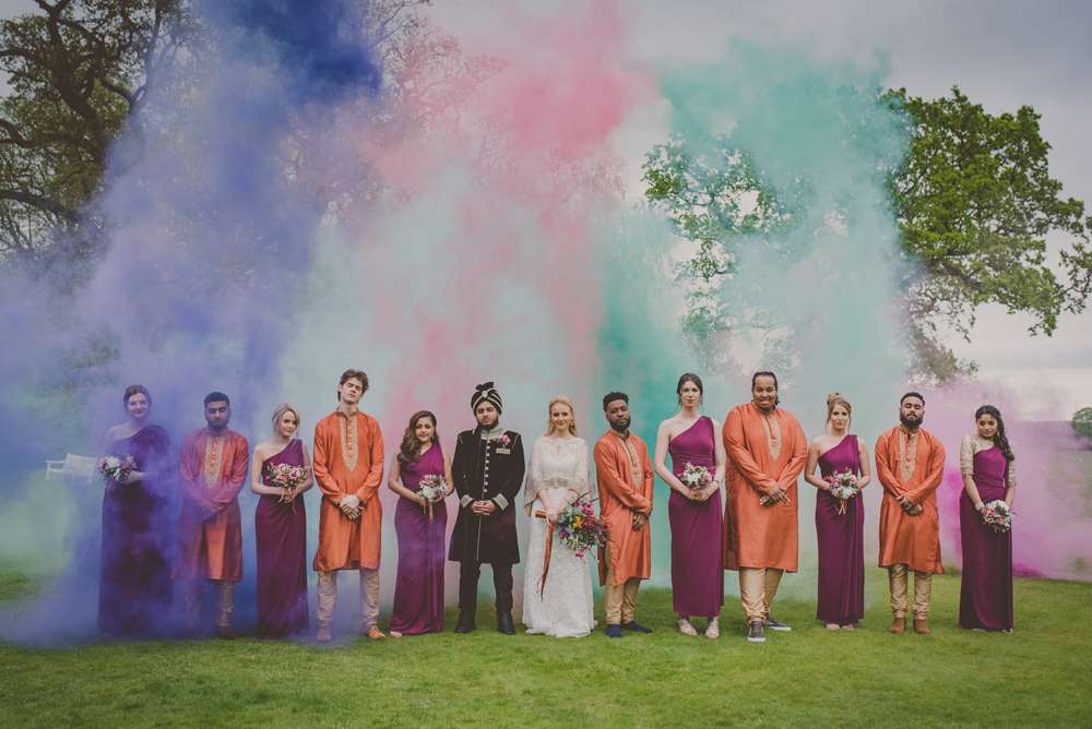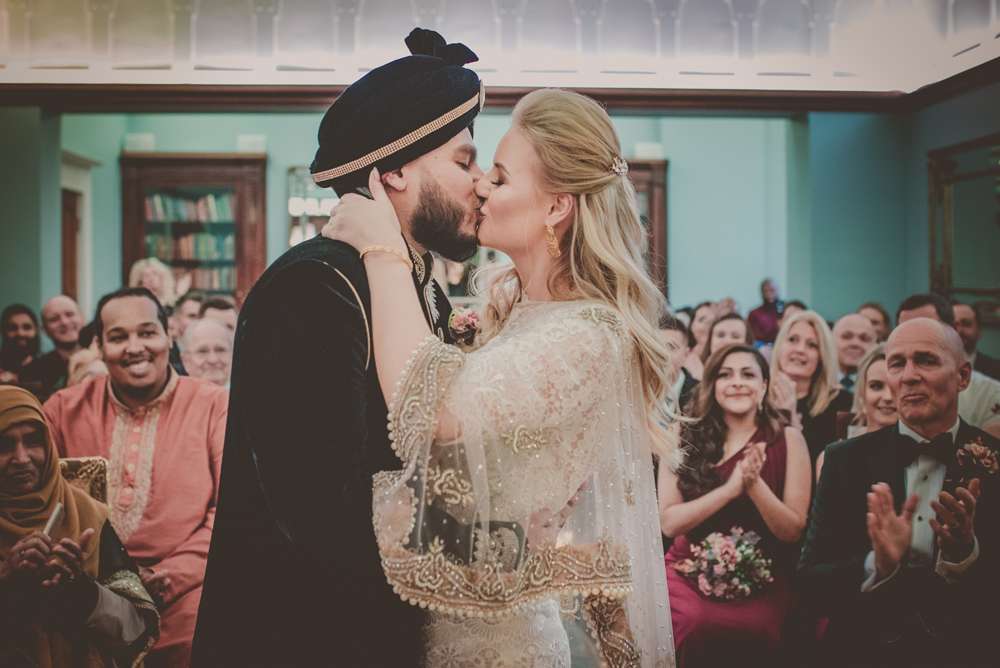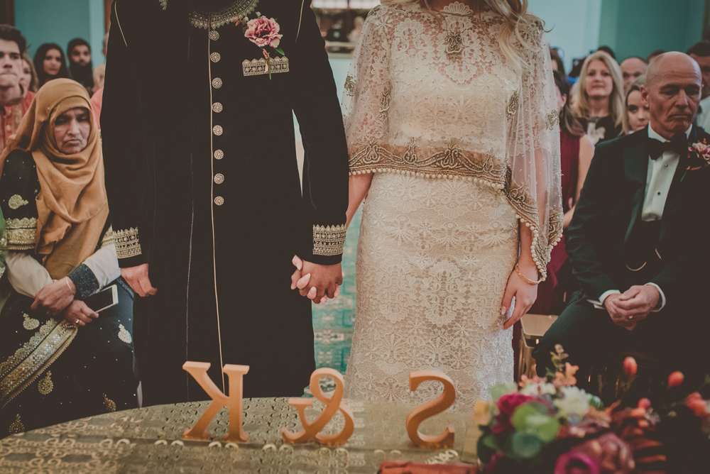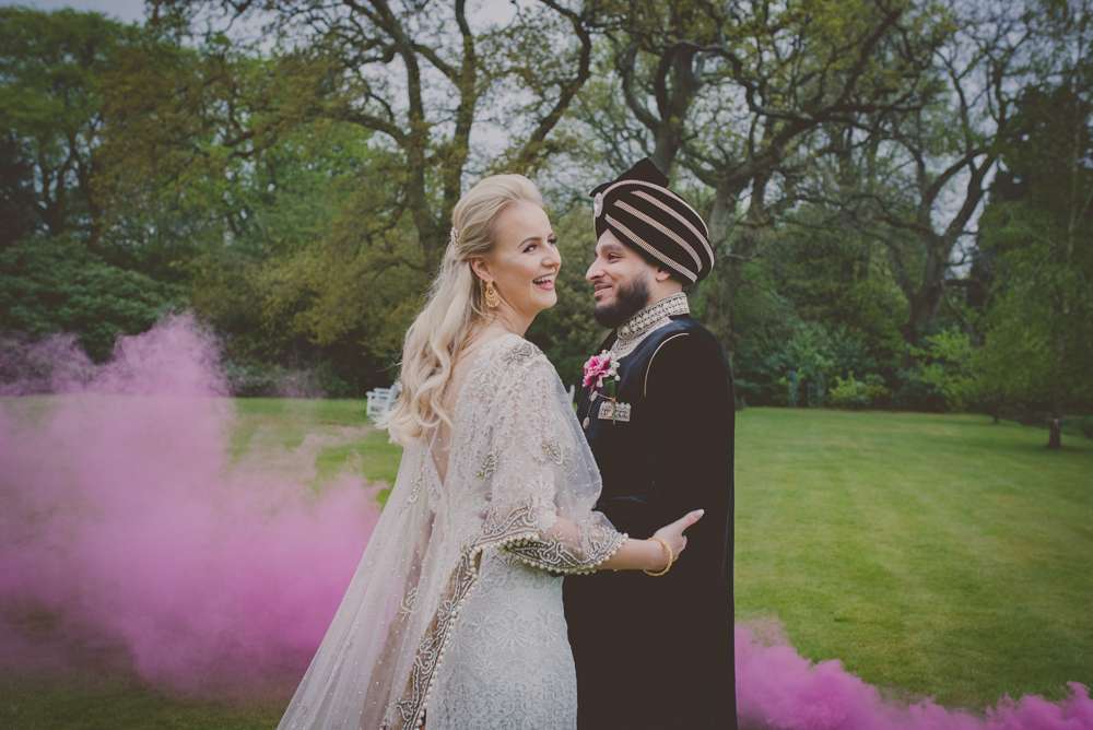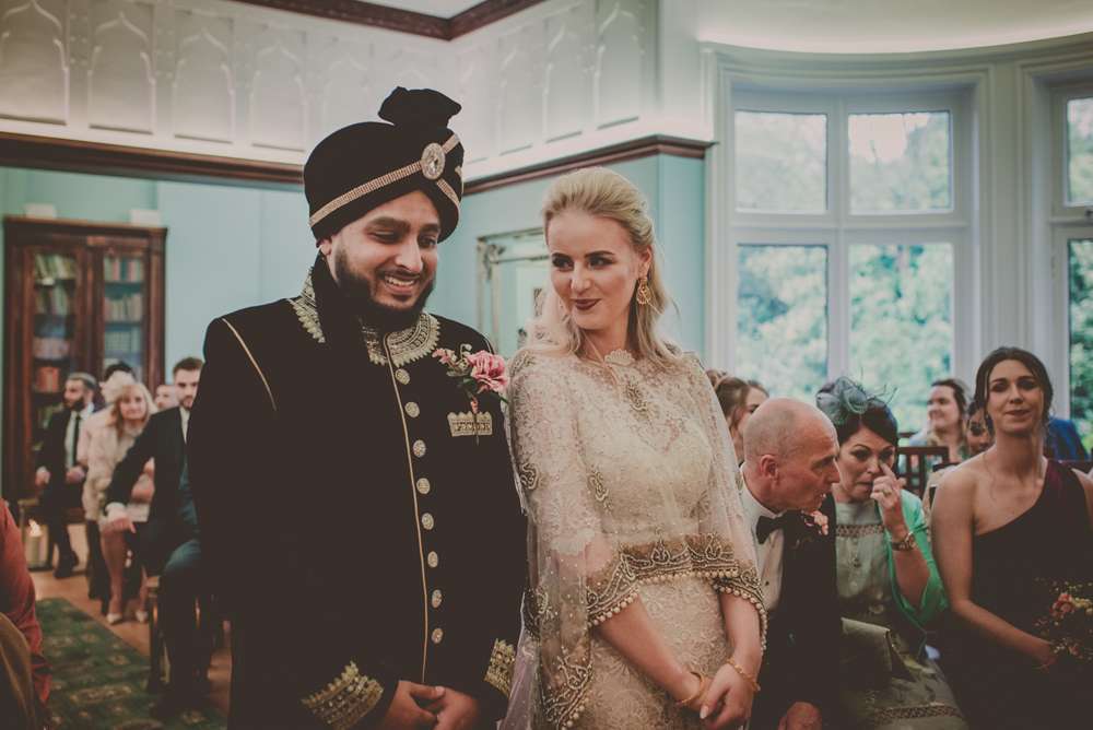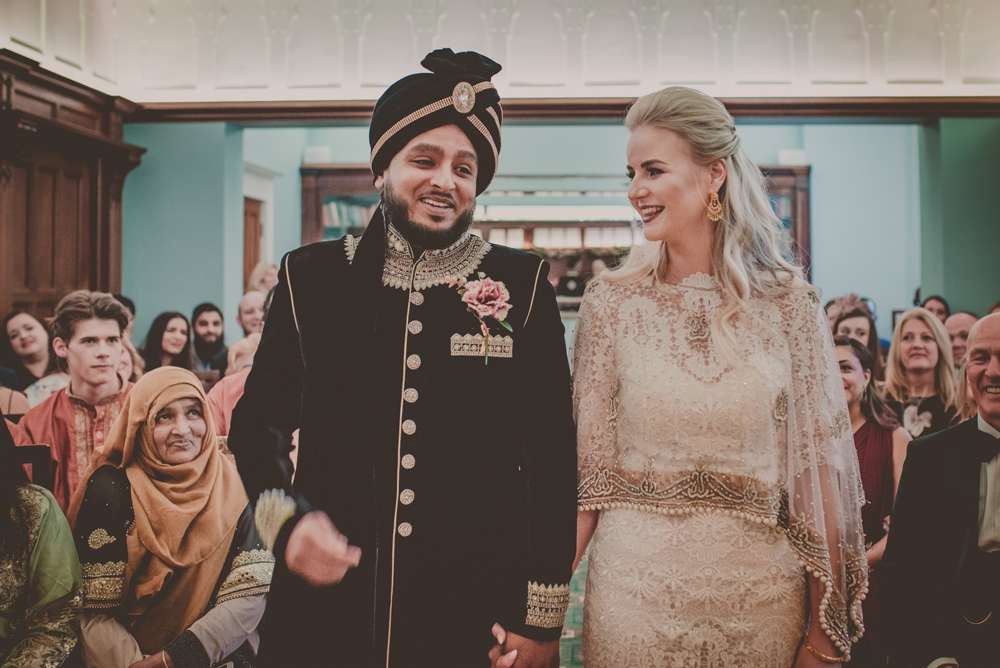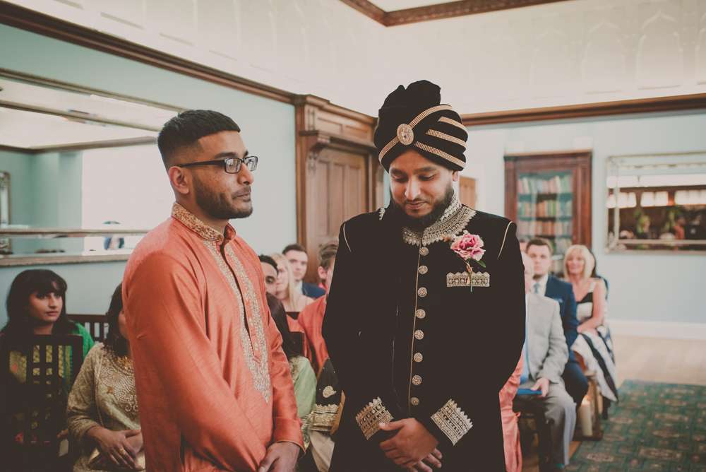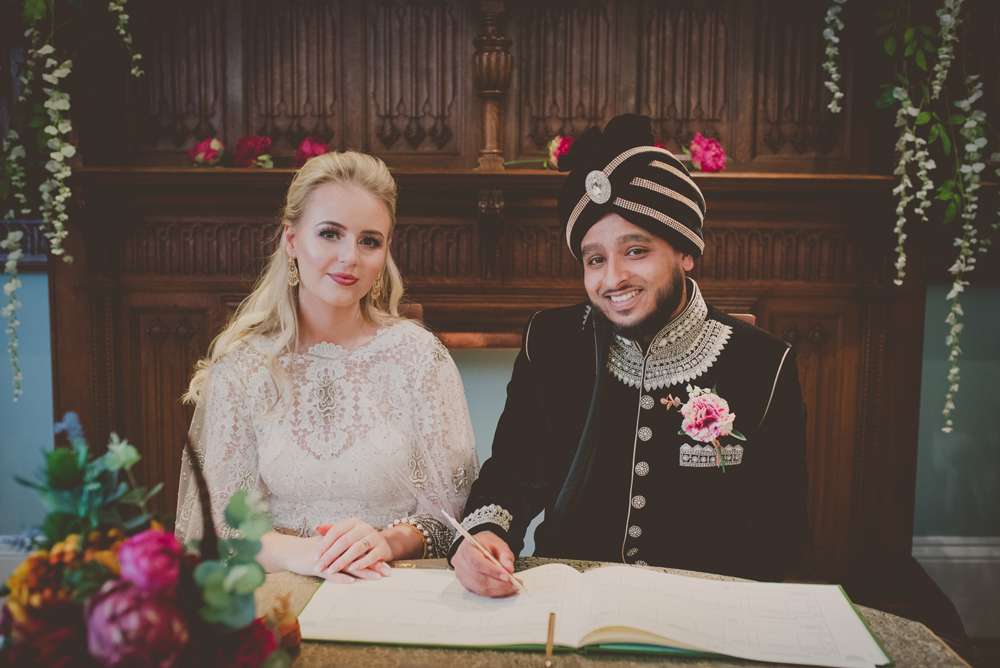 The bride wore a Sottero & Midgley gown which she had altered to include a low back, with a stunning veil bought from an Asian wedding shop. The groom and his groomsmen all wore traditional Asian wedding outfits.