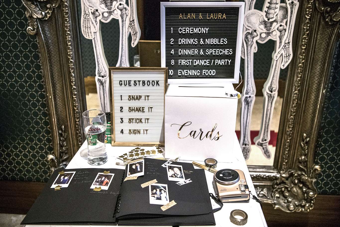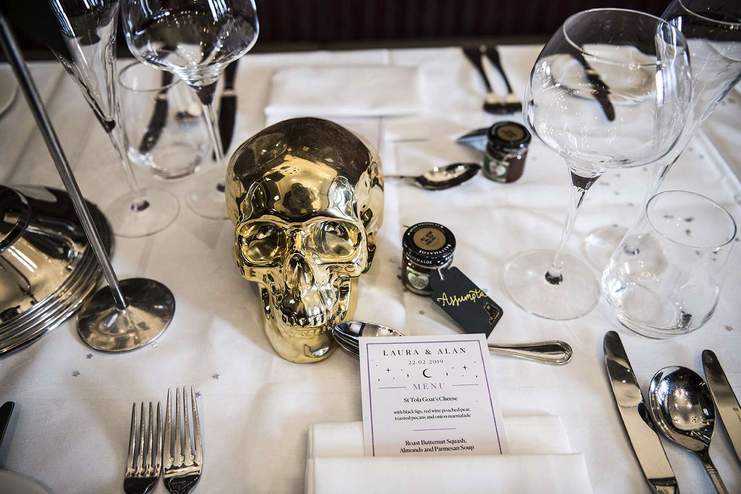 The main inspiration behind Alan and Laura’s wedding was something that they both hold dear; their two beloved cats! Laura also has a thing about skulls, so they needed to feature heavily in the day too. “In fact, I always wanted our wedding to have a bit of a gothic vibe,” said Laura, “so when we found our venue we were over the moon!”