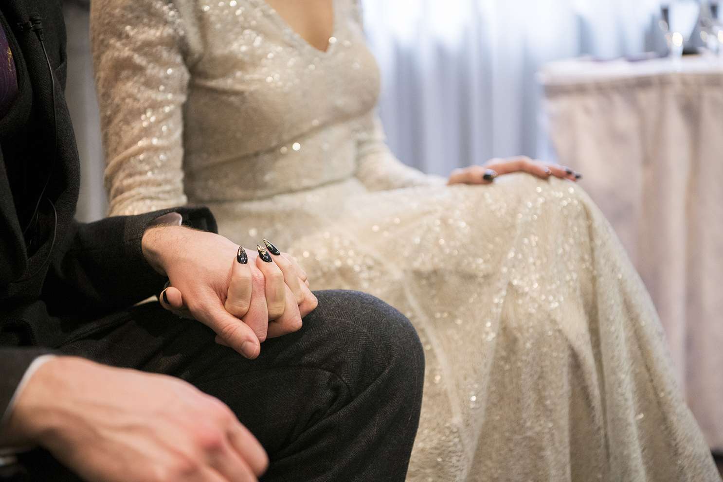 The biggest expense for Alan and Laura was their venue – but it was a great deal for them, as nearly everything was included, and it needed little in the way of decor! It already included black velvet chairs and candelabras which suited their gothic glam vibe perfectly.