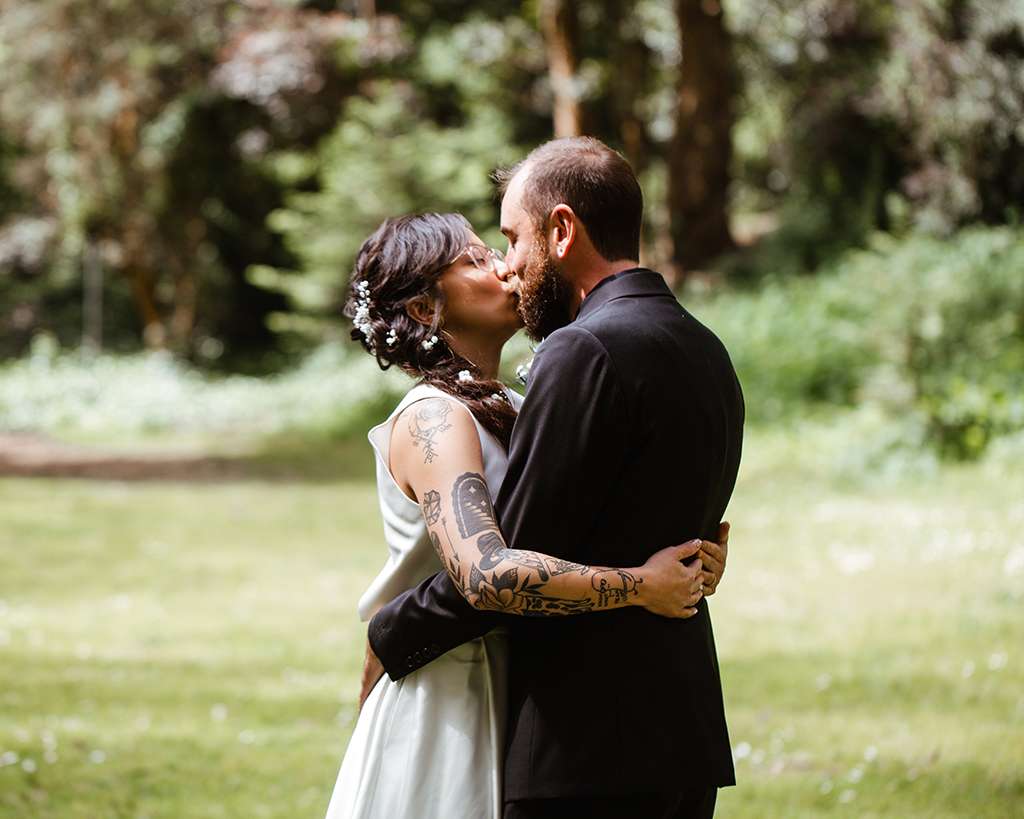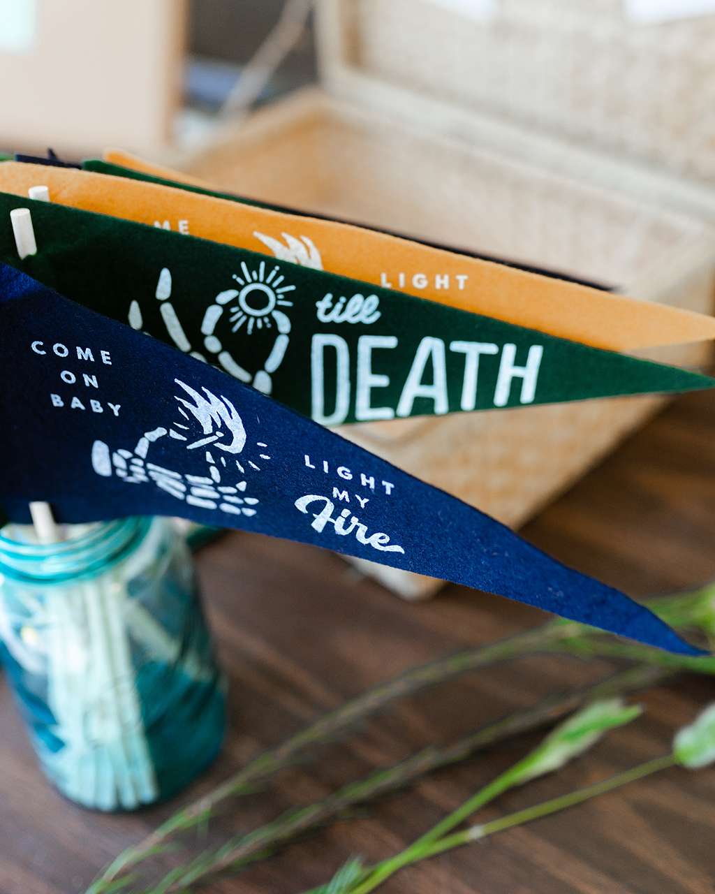 Scott and Jackie’s main aim with their May 4th wedding was to stay true to what they love and care about. They grew to love camping together and got engaged while on a cross-country road trip, and that became the core of the theme – made by hand, a little rough around the edges, mismatched, down to earth, but most importantly to them – a hella good time!