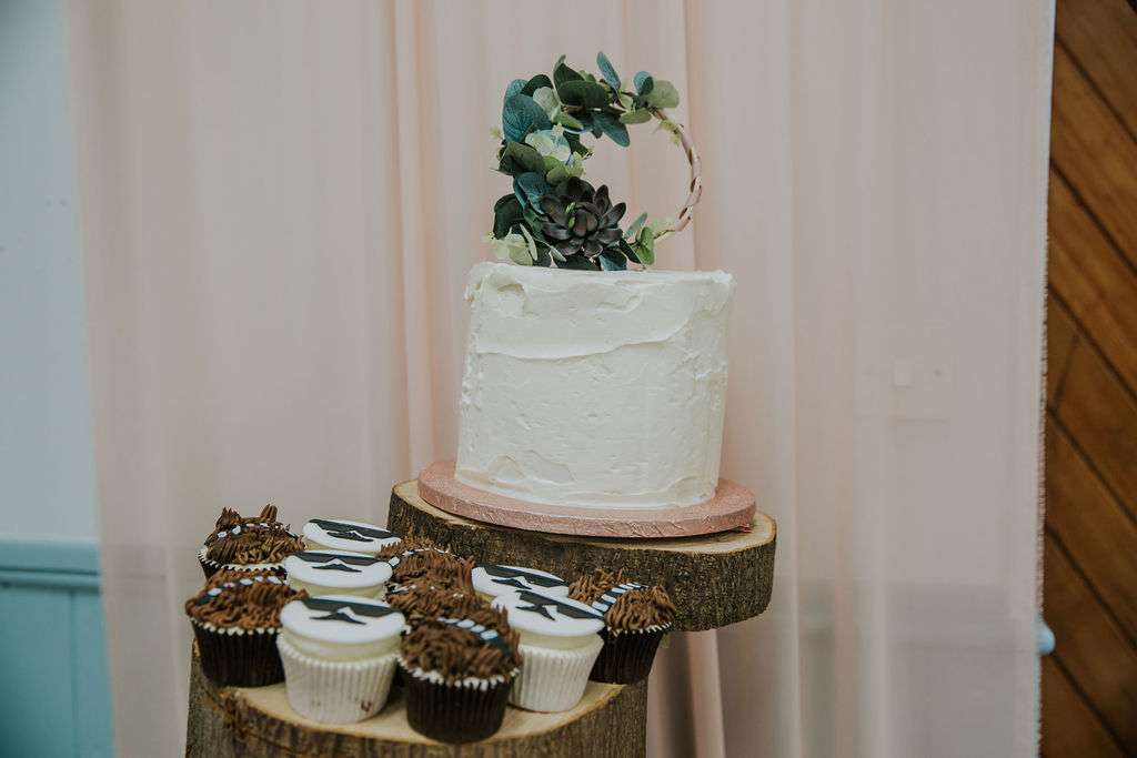 They mixed Star Wars elements throughout their whole day – from the character table names, to weaving trinkets and figurines throughout their bouquets and floral decor. They printed confetti bags with Star Wars references and paired their rustic wedding cake with Stormtrooper and Chewbacca themed cupcakes. They even had a lightsaber cake knife, that was made by Beth’s stepdad and given to the couple as a surprise – it even lit up!