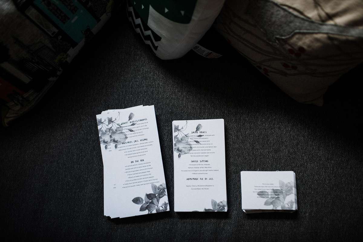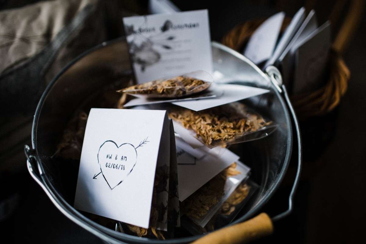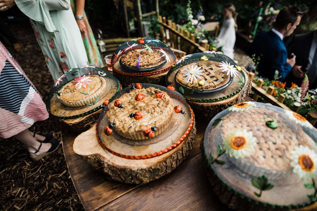 The bride’s mum made pies (savoury and sweet), the graphic designer groom created all the wedding stationery and Hollie made the confetti by drying their our own rose petals.