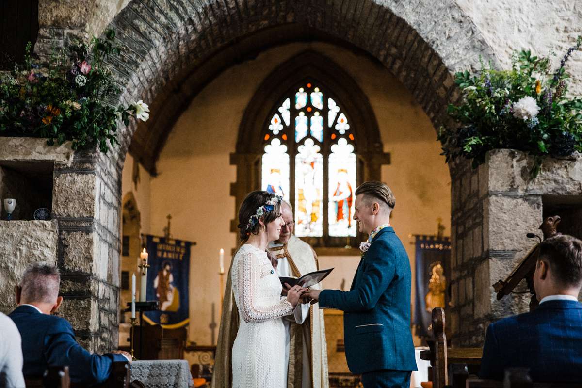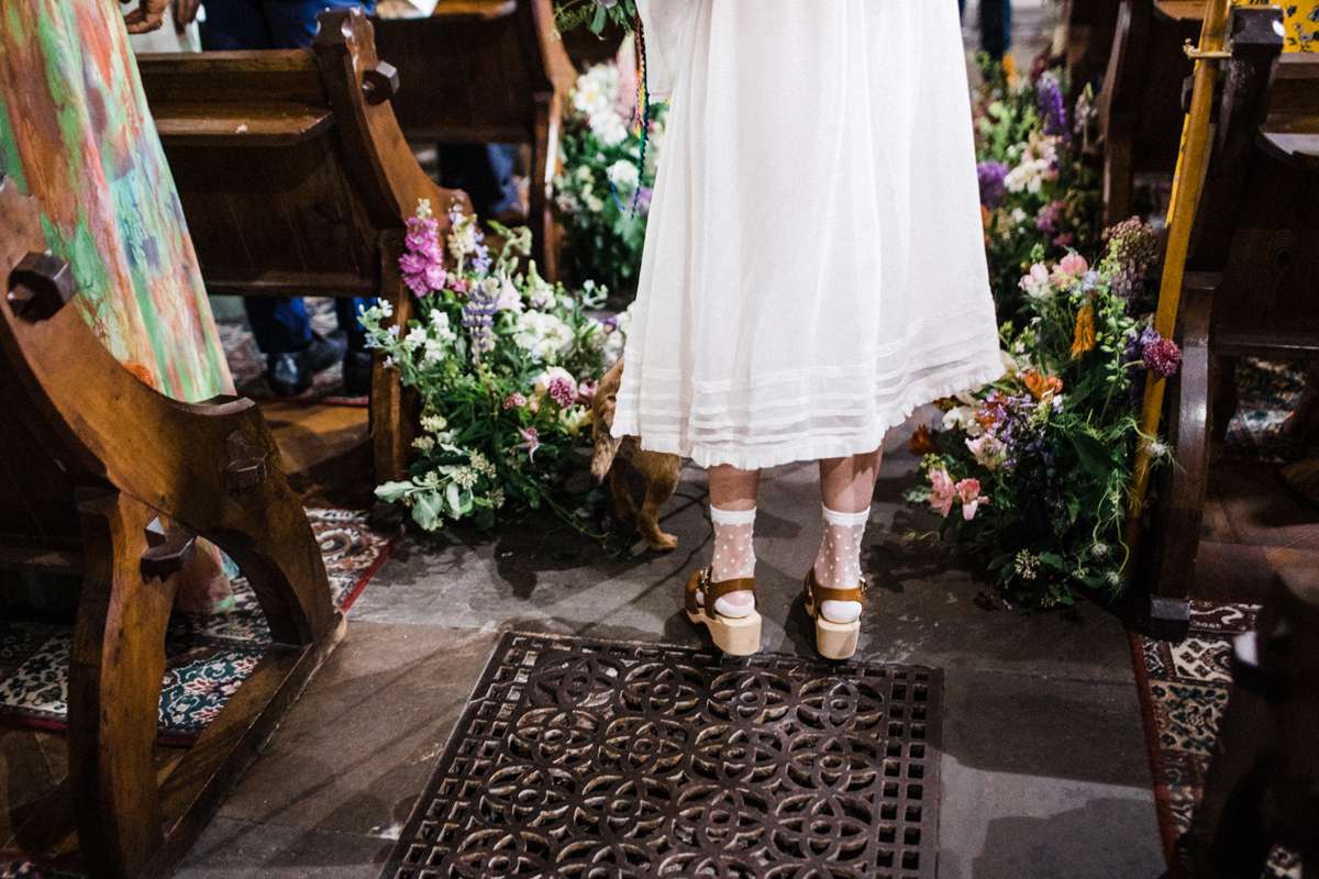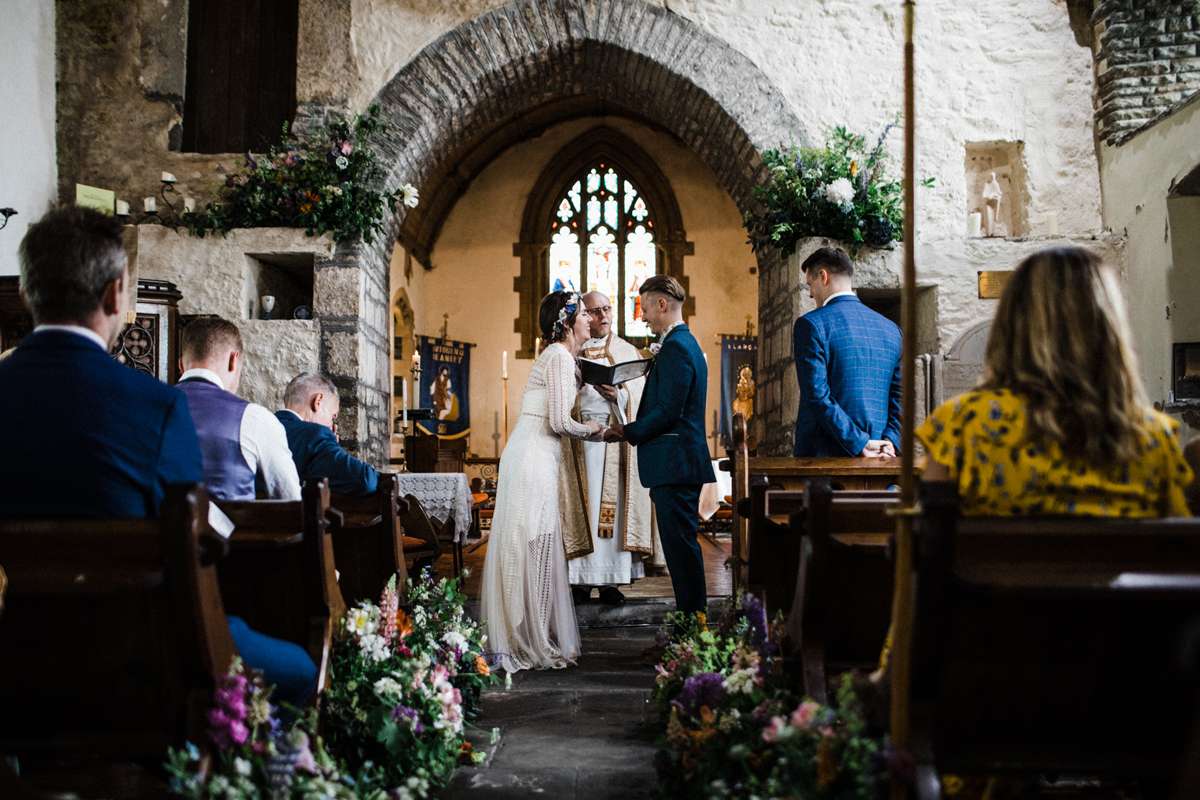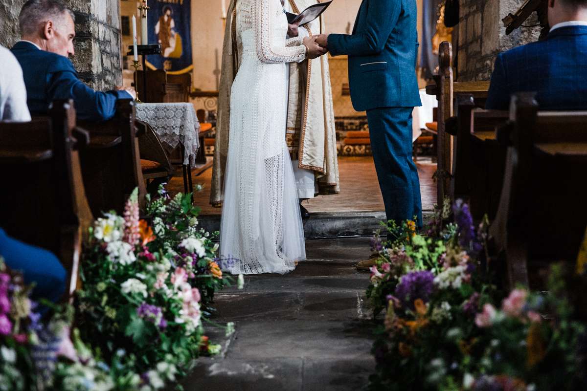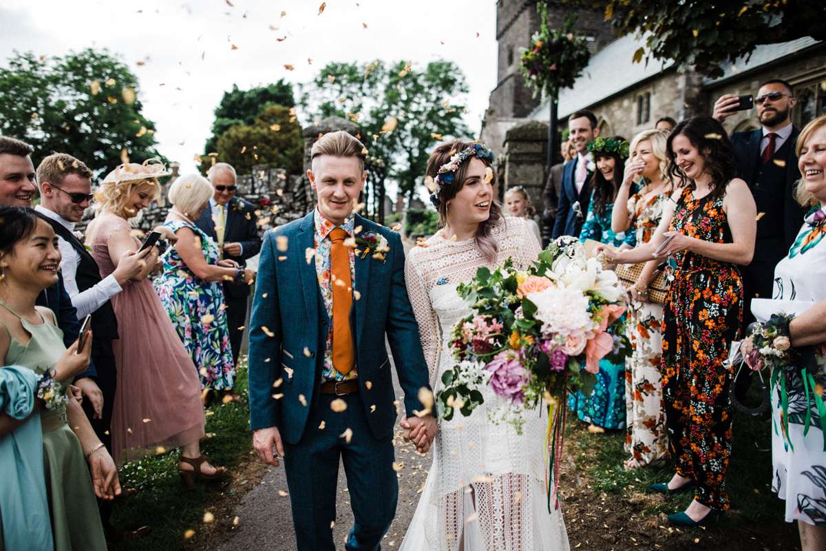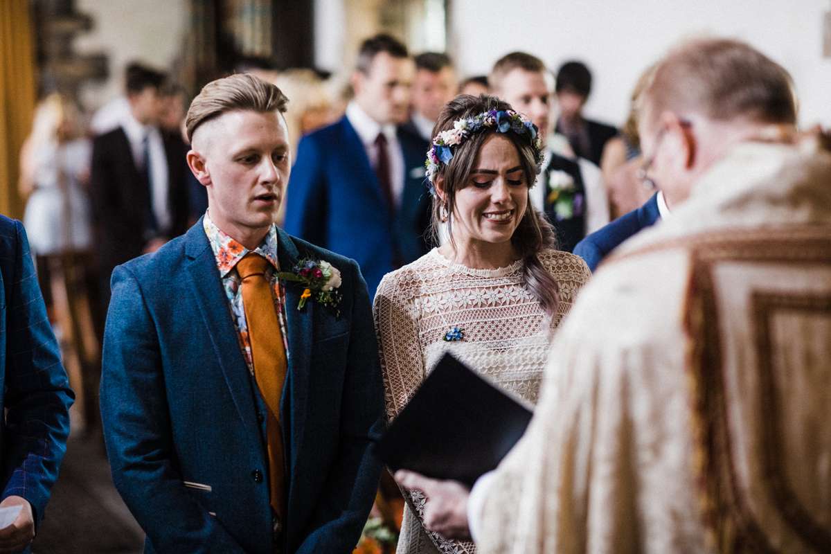 Hollie and Adrian wanted their wedding to feel relaxed and just really chilled out. They decided to host their reception in their own back garden which meant they could do exactly what they wanted. The ceremony was held in their local parish church, just a stone’s throw from home, which they decorated with all the flowers and foliage! In fact the flowers ended up being their single biggest cost of the otherwise DIY wedding, but they provided exactly the look they were after for their day.