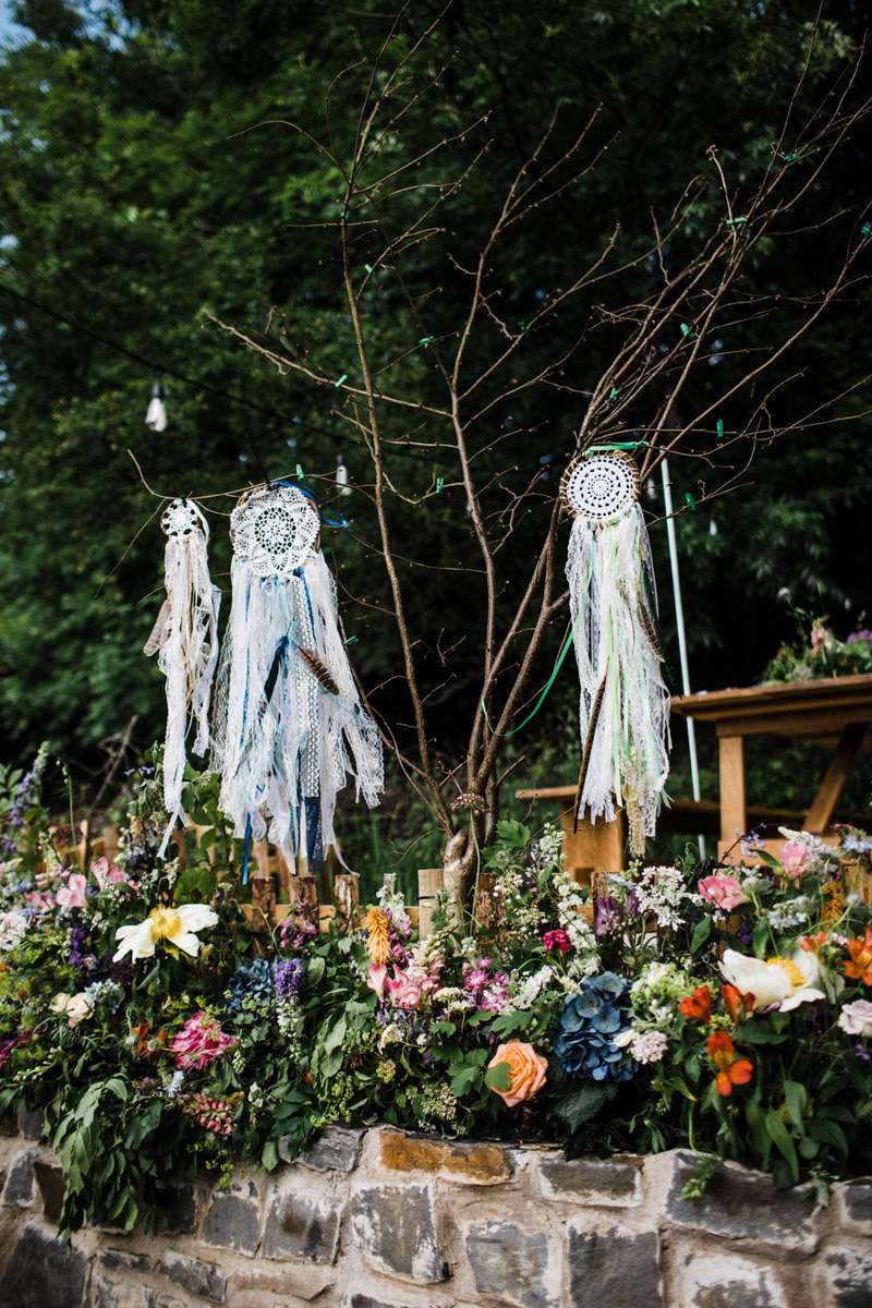 The DIY projects were plentiful for this day including the dream catchers made from willow, hazel, doilies and feathers. Adrian, a friend and the bride’s dad made the bar and even their own and composting toilet from palettes!! This was not only better for the environment but saved money because they didn’t have to hire in portaloos.