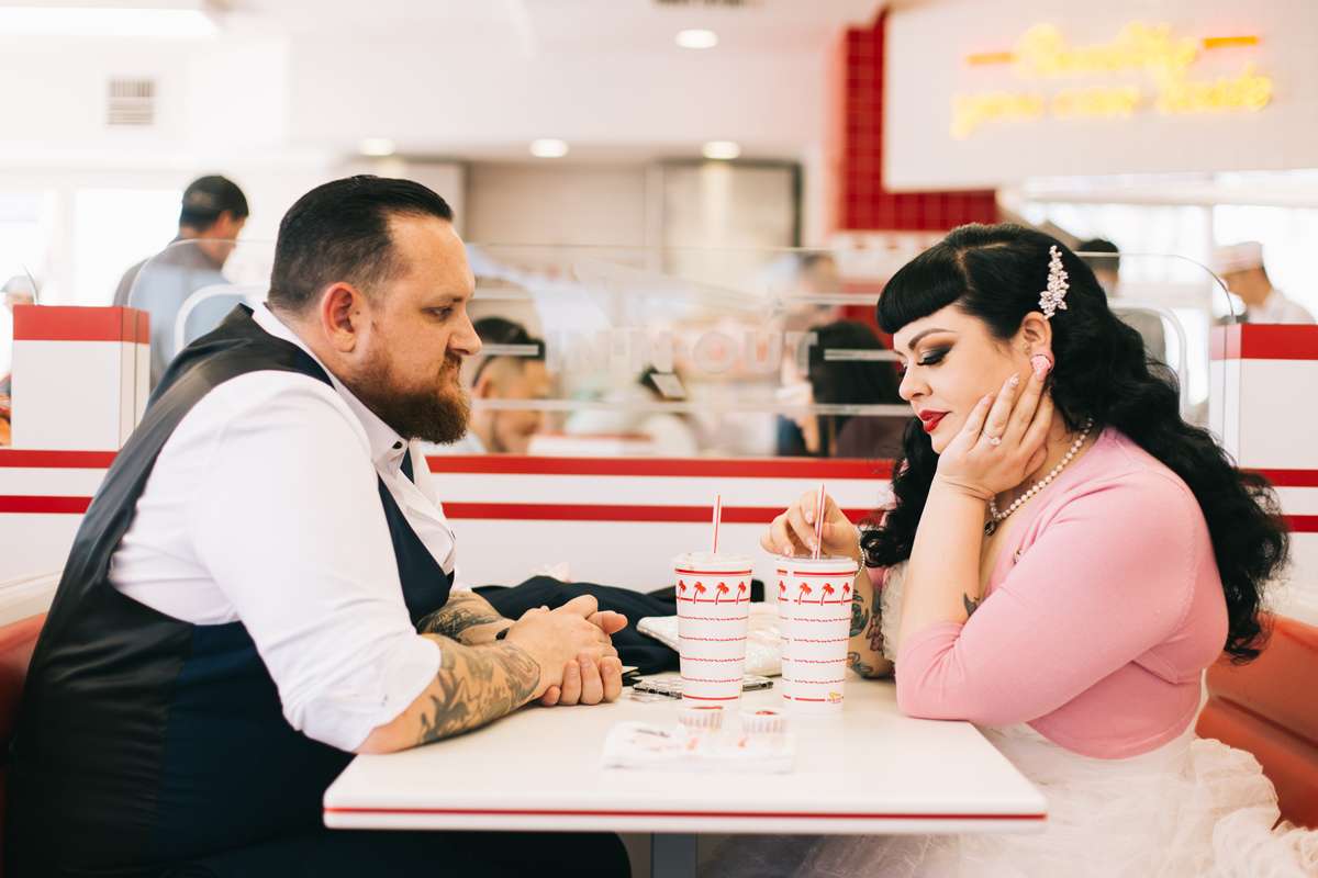 “We got engaged at Disneyland a week prior to our elopement. We decided to plan the elopement for when we’d be in Vegas. We planned this in secret and surprised Luke’s parents, who were travelling with us, the morning of the wedding. They were shocked initially but afterwards were so happy that they got to share the day with us. Once the day was over we called close friends and family and told them, everyone else found out with a social media post. So, we left Australia girlfriend and boyfriend, got engaged and returned married. Since it all happened so quickly, we didn’t have wedding bands and we actually used ring pops to tie the the knot. The day after the wedding we got matching king and queen of hearts tattoos, they’re located on our hands, above our thumbs so when we hold hands they interlock.”