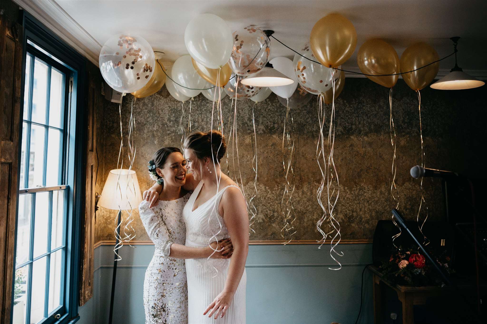 Ashlie and Steph wanted a stress and fuss-free pub wedding with minimal details and things to worry about! Although they made the table numbers, photo booth and favours themselves, they also didn’t stress over them. The most important thing was that they had a day that felt like them and that they were married by the end of it!