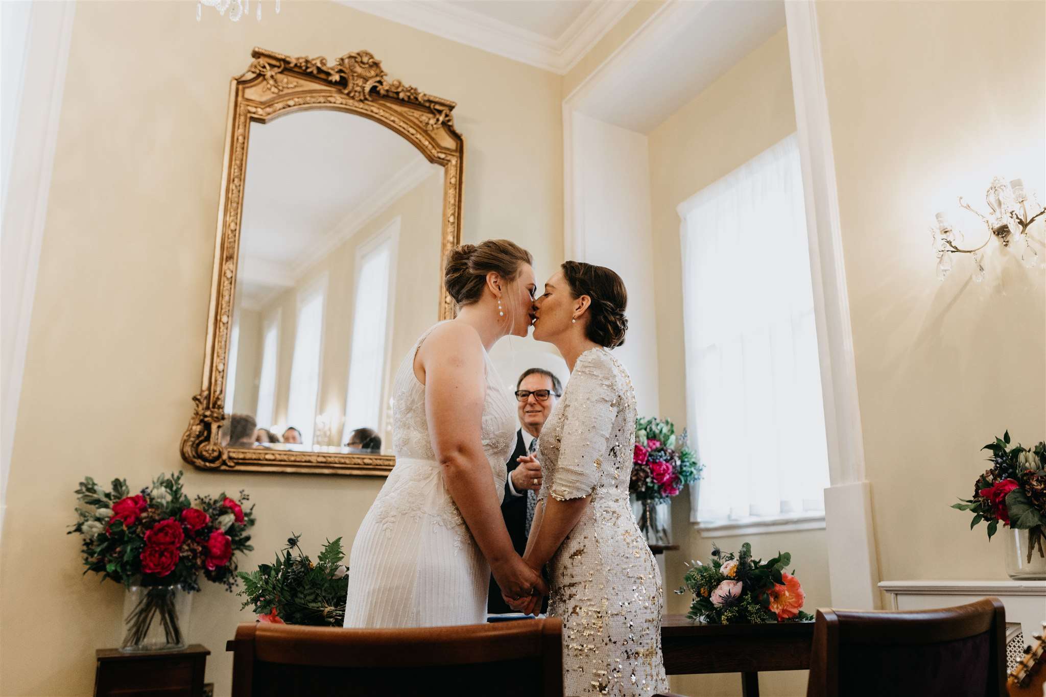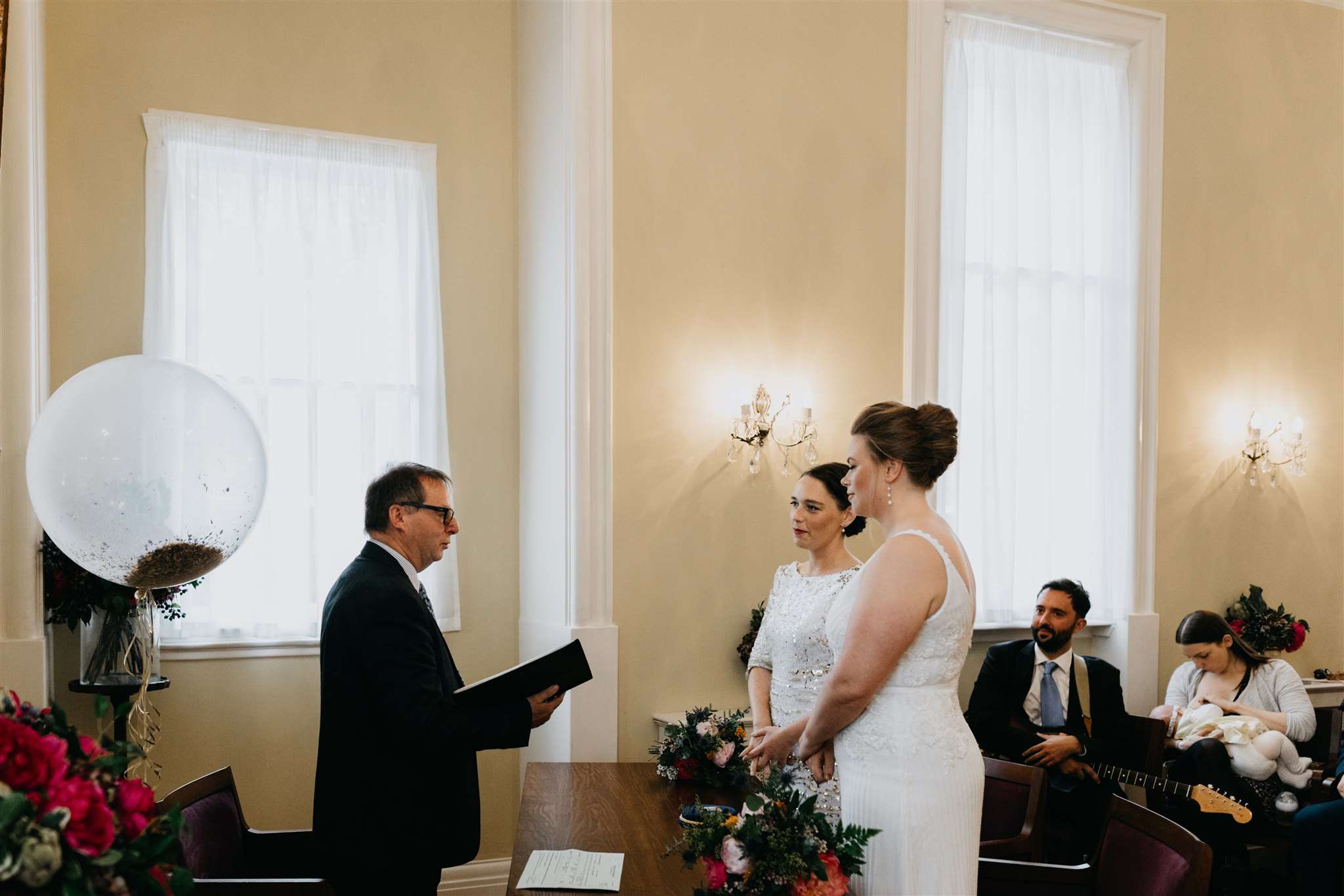 “We had quite low expectations for our registry office ceremony, but it was so very lovely”, she continued. “My Dad was very late and missed the start of the ceremony, which was a little tough at the time but gives us something to laugh about now! Your wedding is probably the only time in your life that you have everyone you love all in one room together so it feels very magical and full of joy which is how the ceremony felt to us. We also asked our friend to play the guitar for our ceremony and he played a song he wrote himself which we love, which was extra special.”