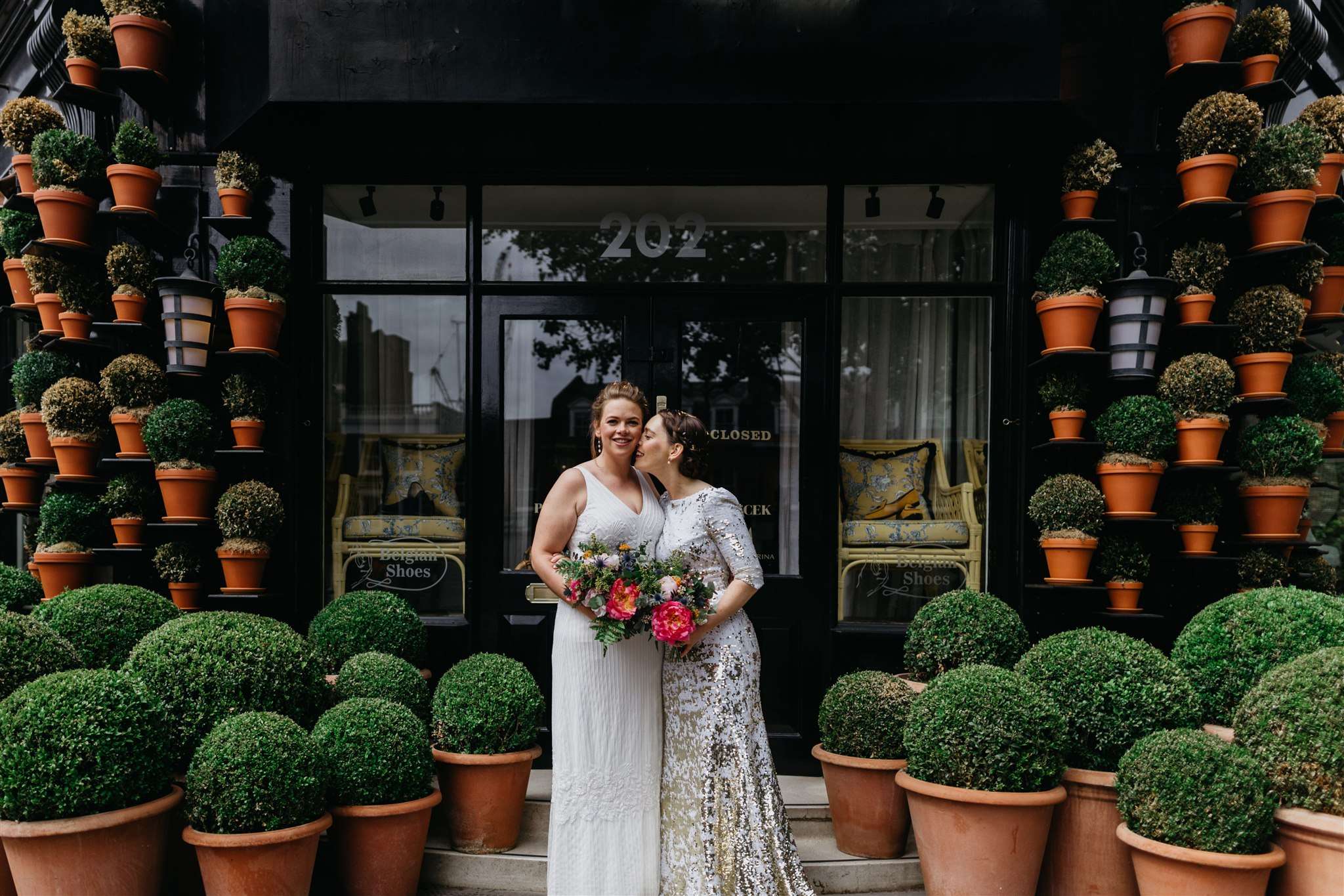 Their ceremony was held at Chelsea Old Town Hall followed by a reception at The Orange public house in Belgravia, where they actually had their very first date. “We wanted a wedding that had the focus on people and not details”, Ashlie began, “and i think we created that perfectly. Having vegan food and drink was also very important to me.”