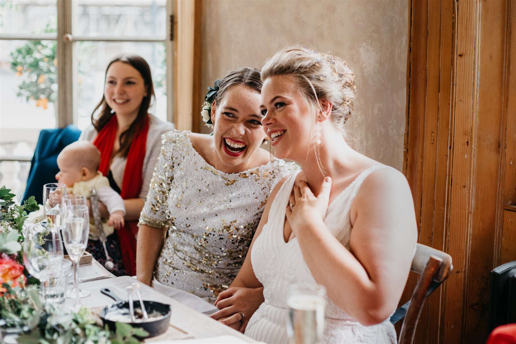 Ashlie wore an all-over silver sequin gown from Abigail of Gardenia while Steph looked stunning in her Monsoon number. Their ceremony wasn’t their main priority during the planning but on the day it was such a special moment.