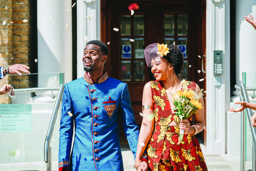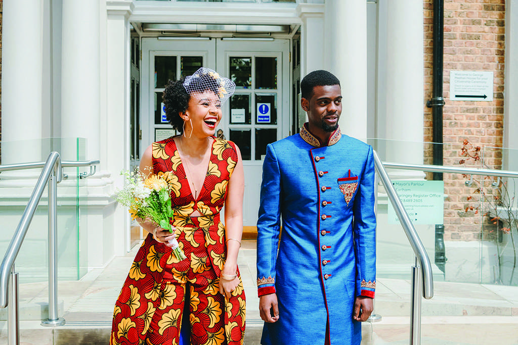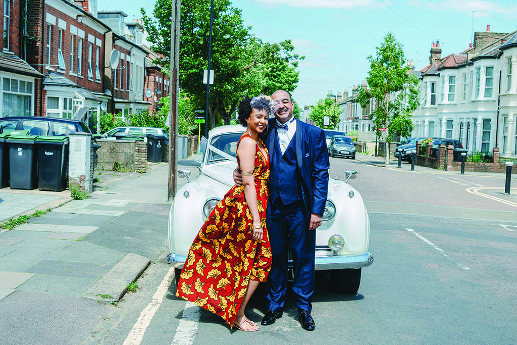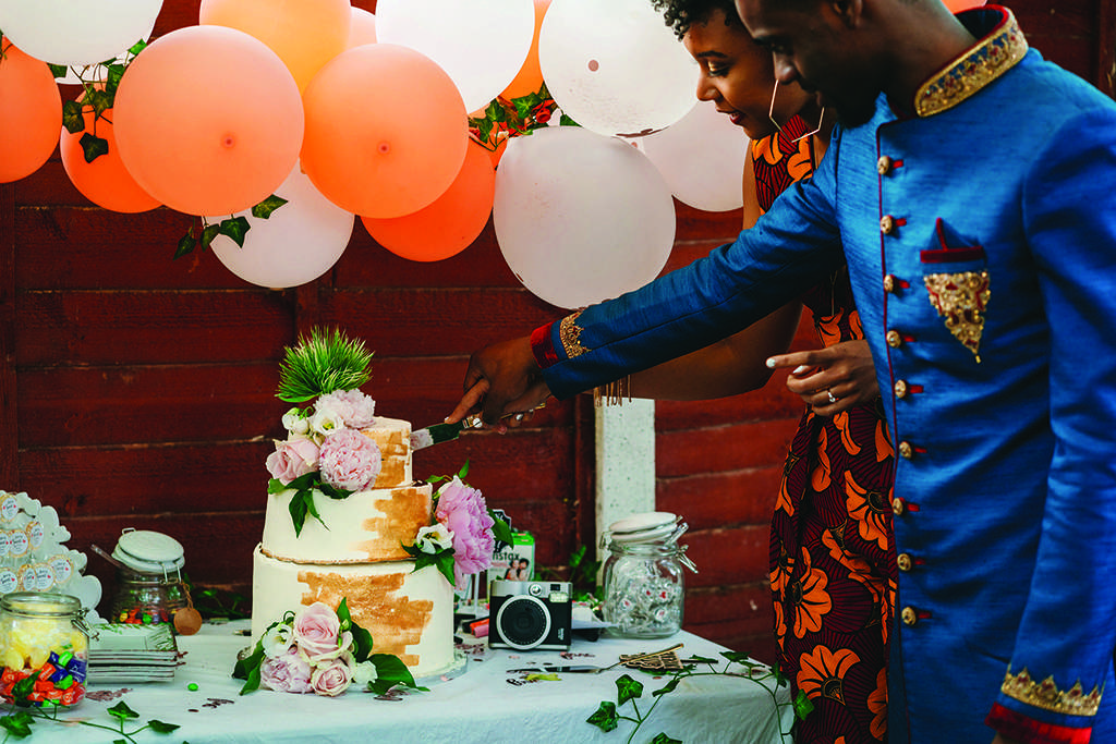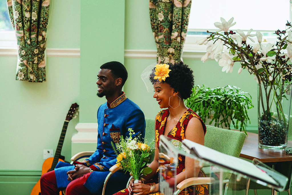 Both Luke and Aida wanted to represent their African heritage in their outfits. Aida was adamant that she didn’t want a traditional white wedding dress, or even a typical dress for that matter. She chose a beautiful burgundy and mustard African fabric and had a local tailor create a jumpsuit with a cape out of it. She also made her own birdcage veil, wore high street jewellery and when she couldn’t find any flat shoes she wanted, just wore a pair she already owned. “Much to my mother disapproval,” she laughed, “but at least I was comfortable! I hate heels, so why would I wear them on my wedding day?!”