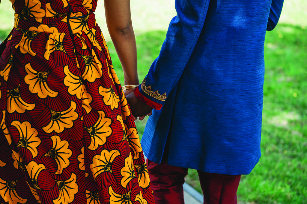Knowing there are many similarities in South Asian and African traditional wear, Luke went to Green Street in Newham in search for an outfit. “In the last shop we went to a blue and burgundy Sherwani caught my eye straight away. He tried it on, and I knew he had to get it. After getting a second opinion from his cousin, he went ahead and ordered his size.”