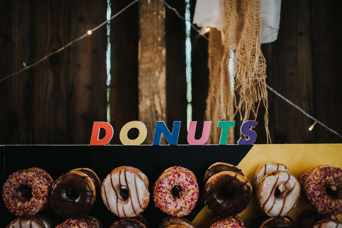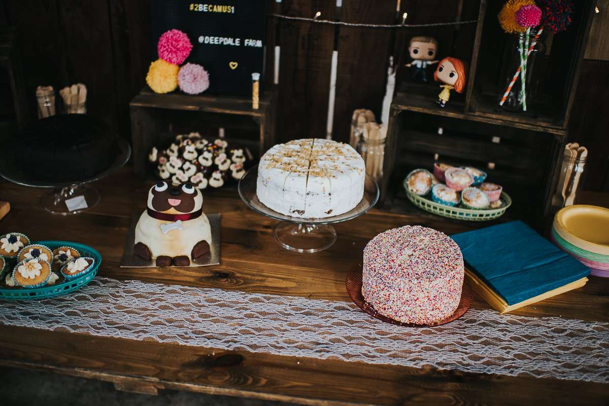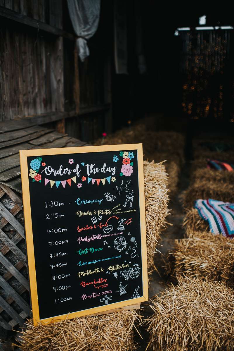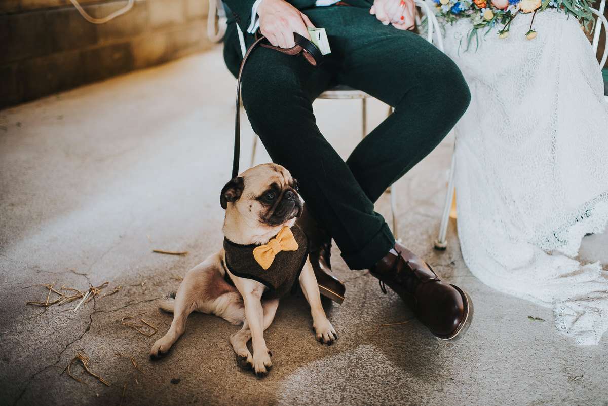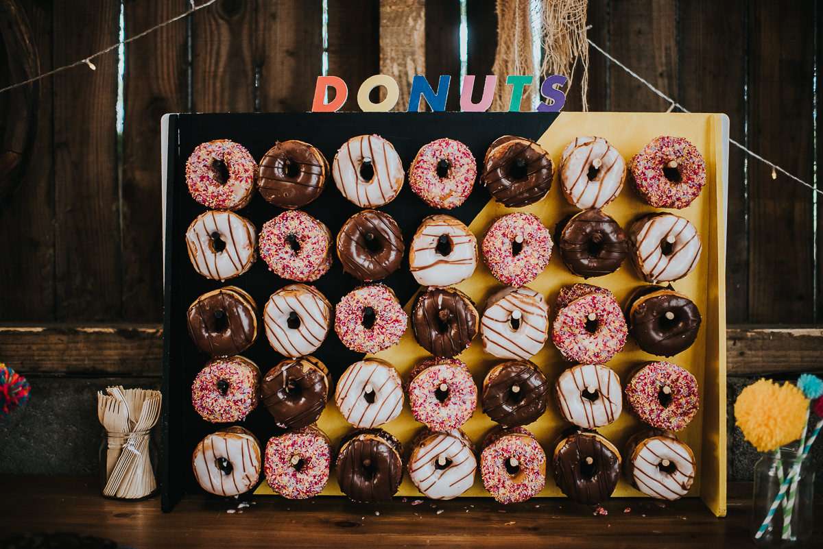 Their ceremony, held in the barn, was exactly how they wanted it to be. “Our ceremony was, in one word, EPIC!” Kayley continued. “Lou Starr created the most amazing ceremony all about our relationship and musical theatre. We had sound bites from our favourite shows to tell our love story (e.g. Can You Feel The Love Tonight from The Lion King, Man Up from The Book of Mormon). Lou changed costumes from a nun, to a bearded lady. She created a countdown conundrum of Les Miserables to give anyone time to object before we said our vows (and decided who was going first with rock, paper, scissors!). Finally, we had everybody up doing the Time Warp then a giant sing-a-long to We Go Together from Grease as we left the barn. Our pug Frank was ring bearer and was held up like in The Circle Of Life to a raucous applause.”