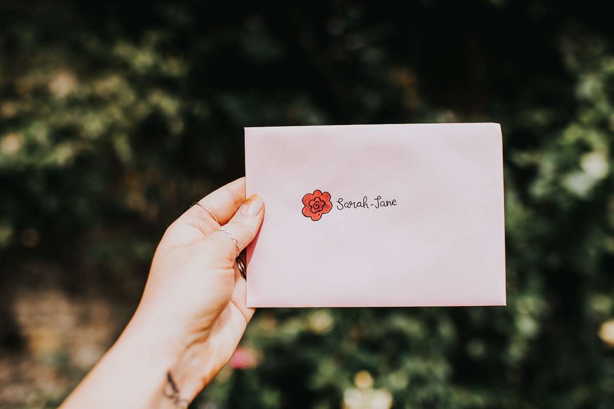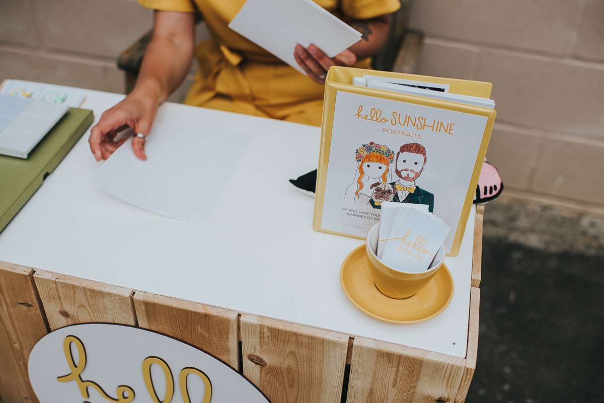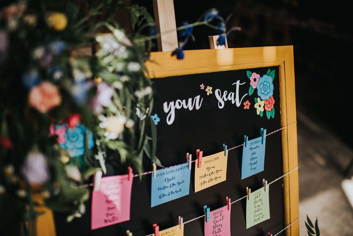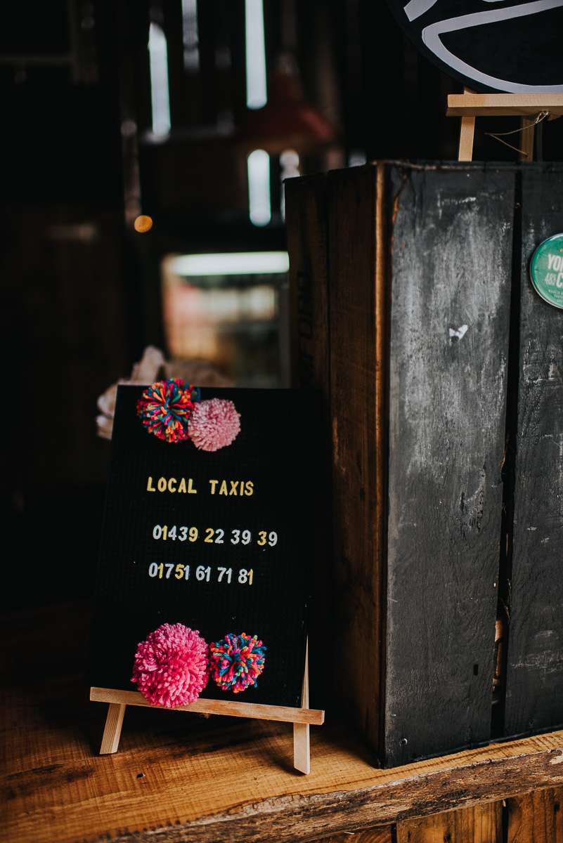 “We bought a big roll of fabric, cut out each banner and acrylic painted the quotes”, Kayley explained. “We’ve got one up in our living room now to remember the day. We also created ‘theatre programmes’ for everyone who came to the ceremony which had ‘cast’ photos in (our families and wedding party), our story, a series of photos we had done at Sunderland Empire Theatre, and a collage of all the shows we have seen together. They also had a little bit explaining about the favours we had. We donated to the Mind charity to get sunflower seeds for our favours as mental health is a big part of our life and something we care a lot about.”