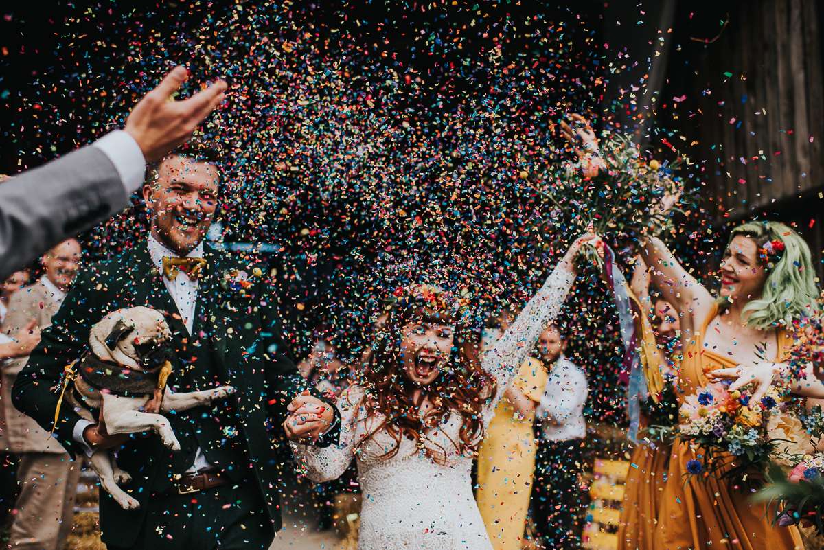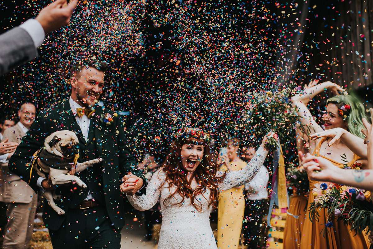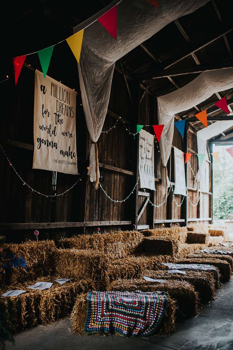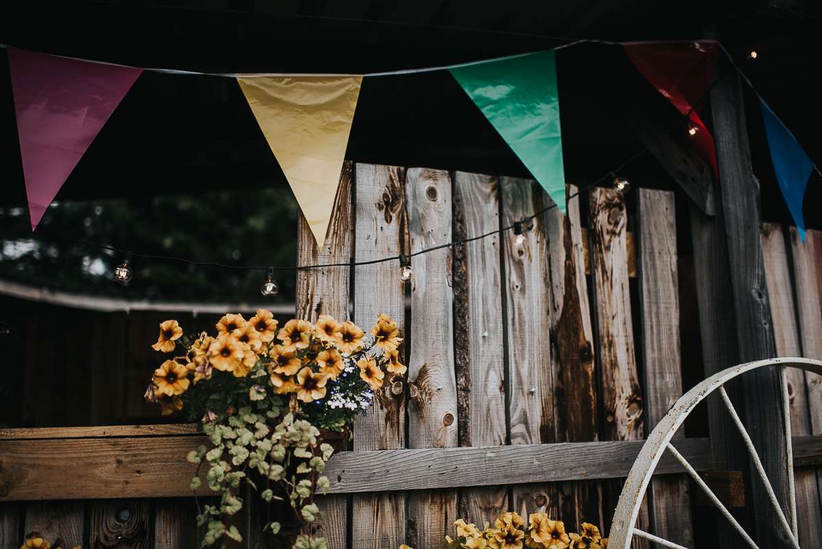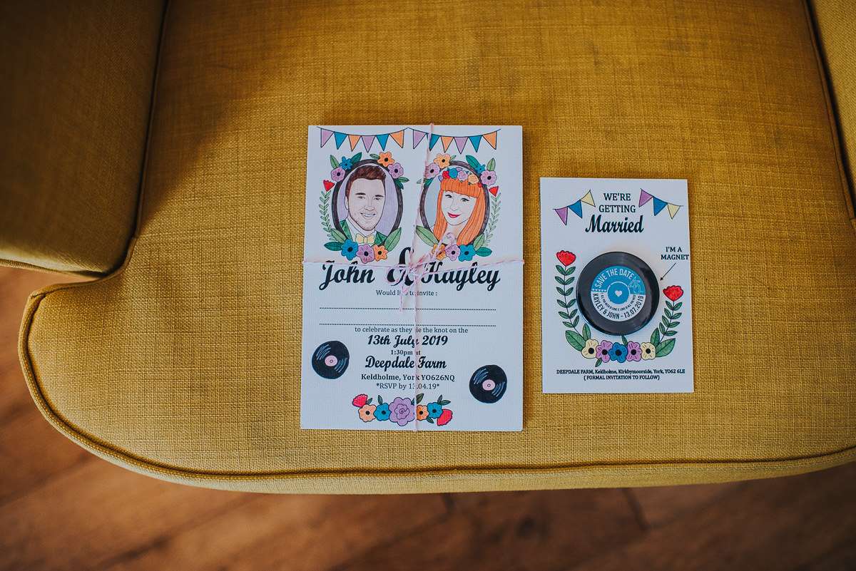 Bringing their musical love of musical theatre and colour into the day, Kayley and John were married at Deepdale Farm over the summer. They also had a number of very special guests, namely their pug, Frank, and a llama and alpaca who joined them for photos! All the decorations were designed and made by the couple themselves. Their particular favourites being the banners with musical quotes on.