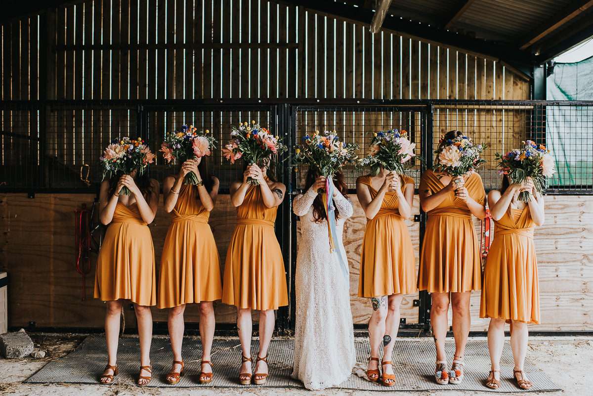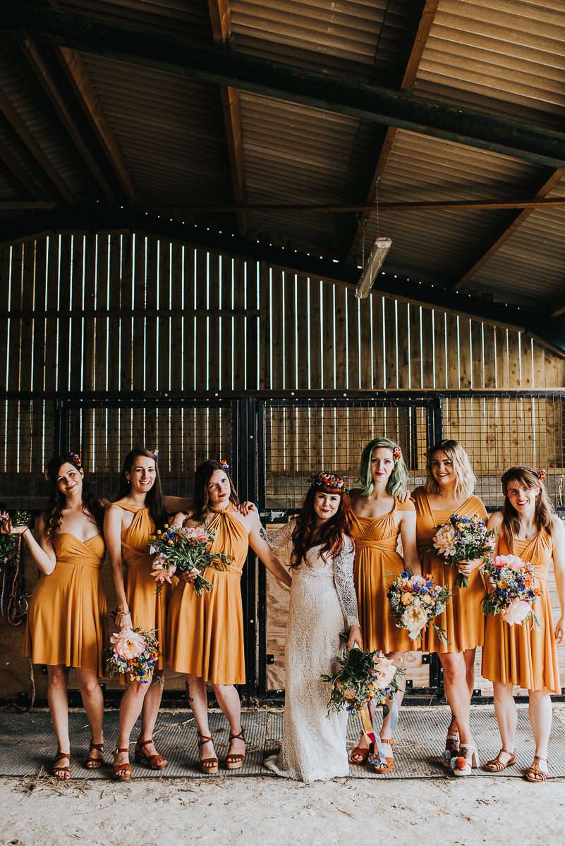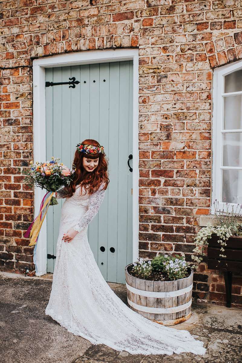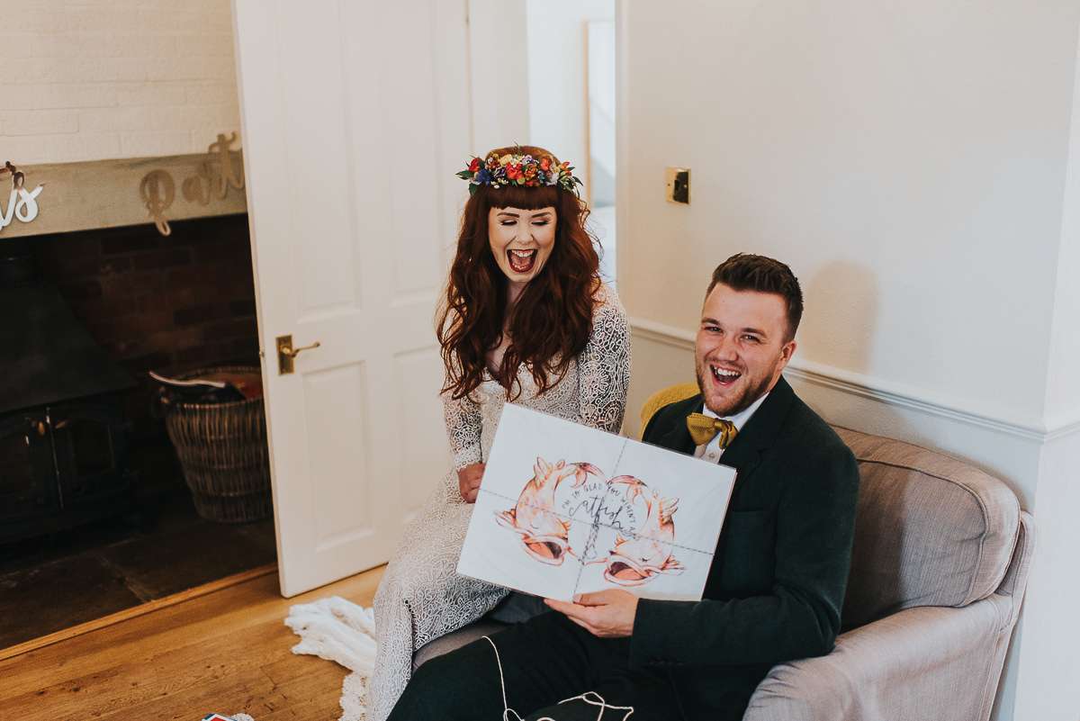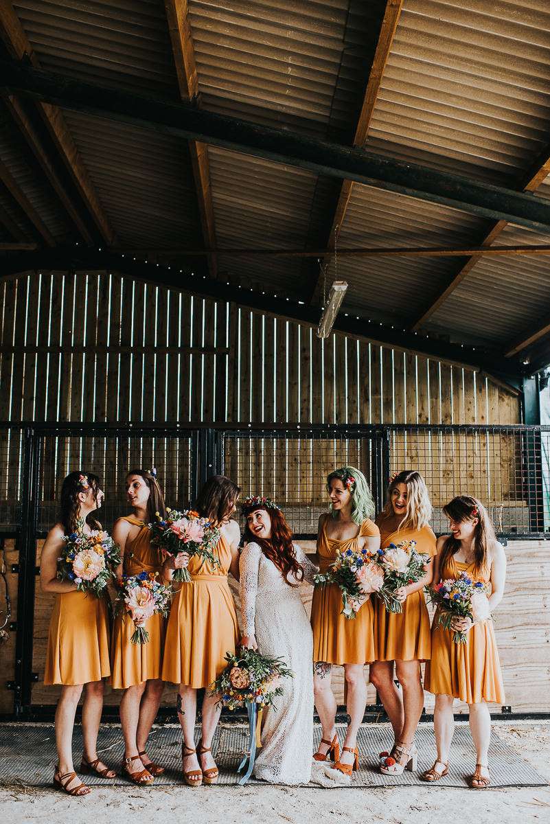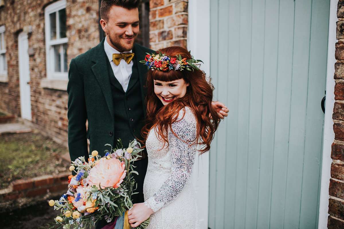 Bringing their musical love of musical theatre and colour into the day, Kayley and John were married at Deepdale Farm over the summer. They also had a number of very special guests, namely their pug, Frank, and a llama and alpaca who joined them for photos! All the decorations were designed and made by the couple themselves. Their particular favourites being the banners with musical quotes on.