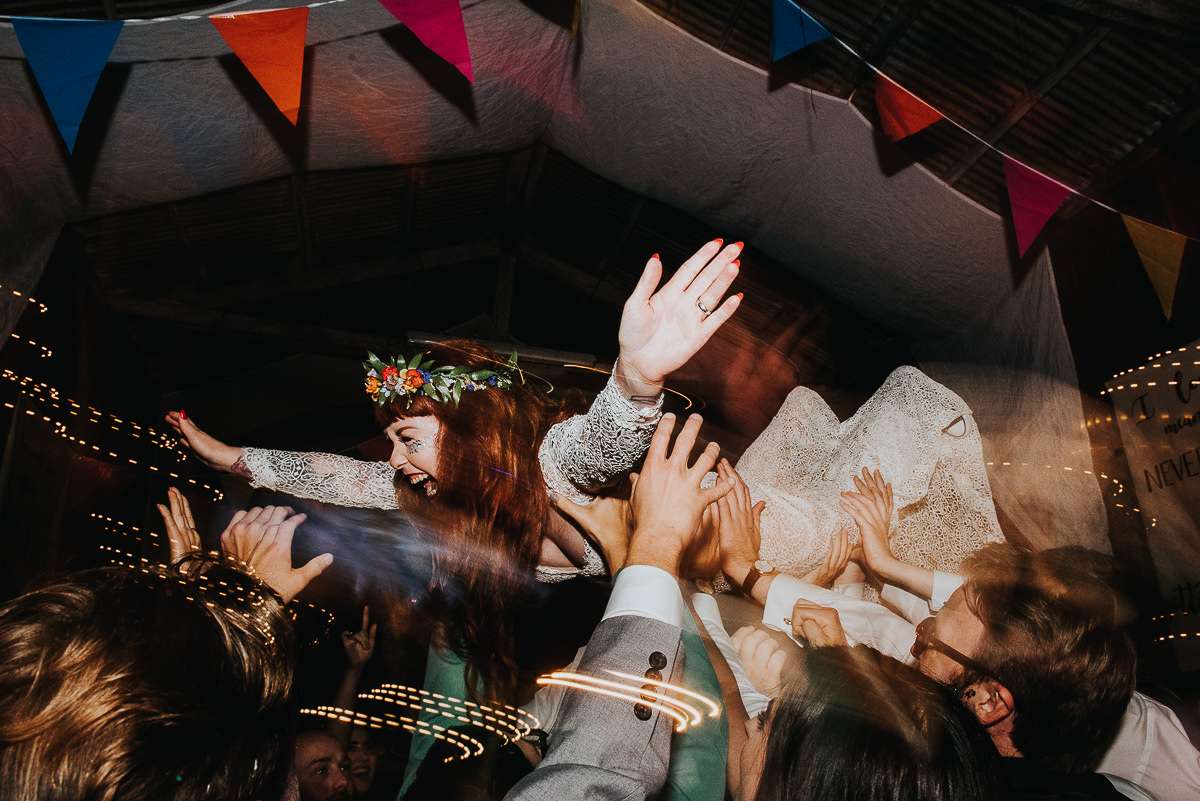 Not everything was smooth sailing though, and due to a leak in the roof, they had to move the band from the barn with the dance floor into the ceremony barn. It all worked out for the best though! “This turned your standard wedding reception into a bit of a gig with a crowd surfing couple, a mosh pit and an encore of Madness as everyone chanted for ska as the band finished their set!”