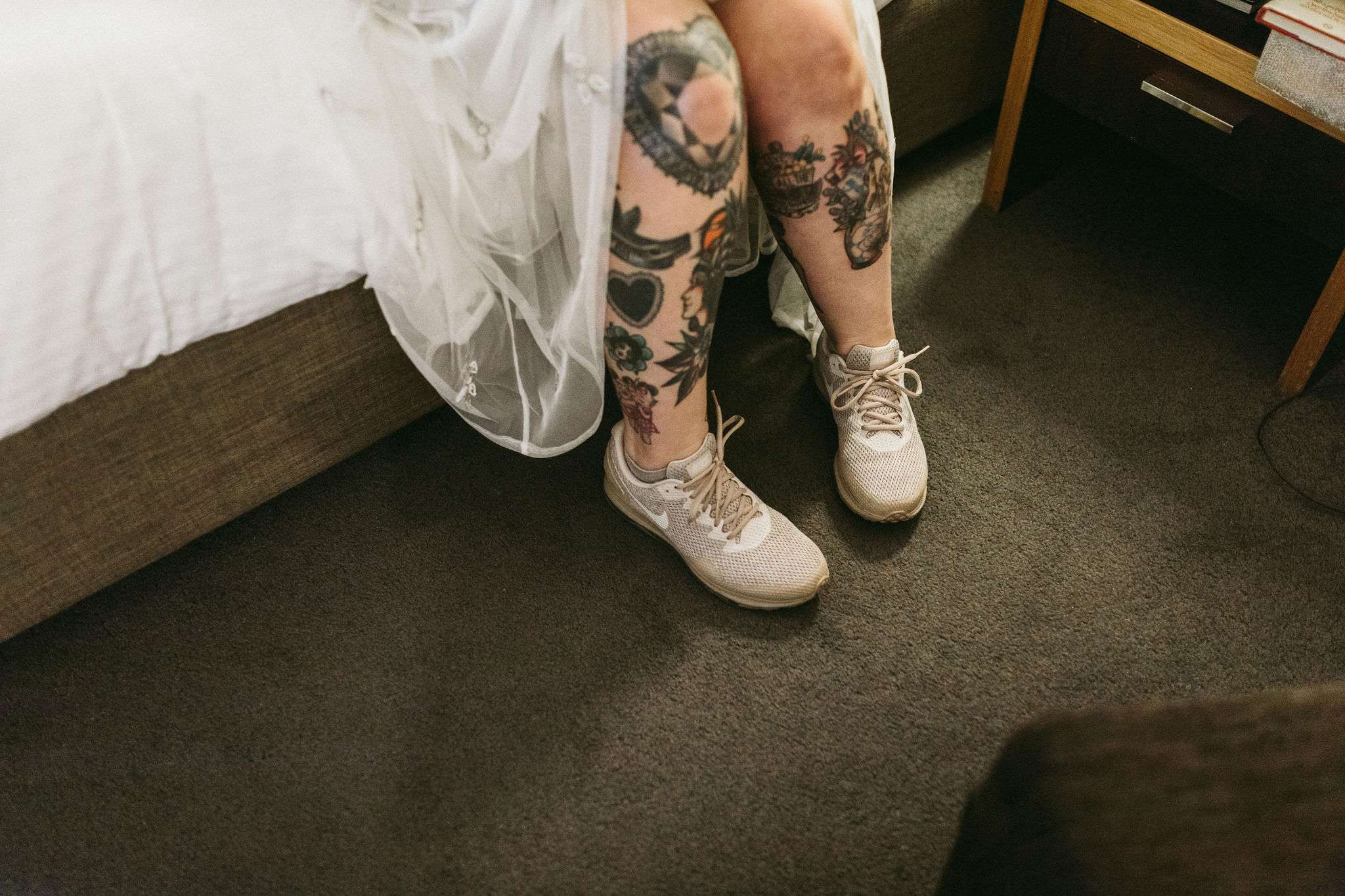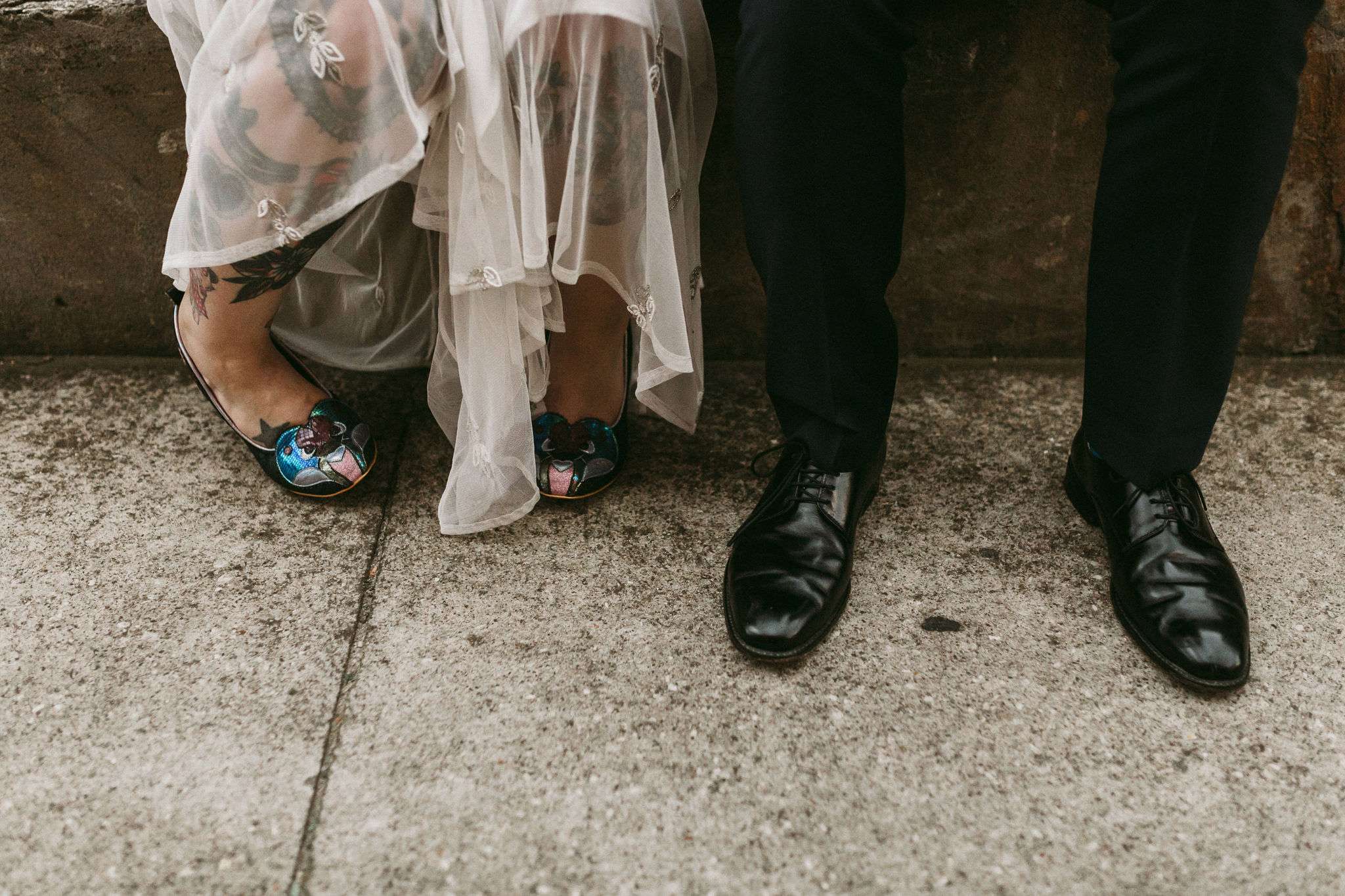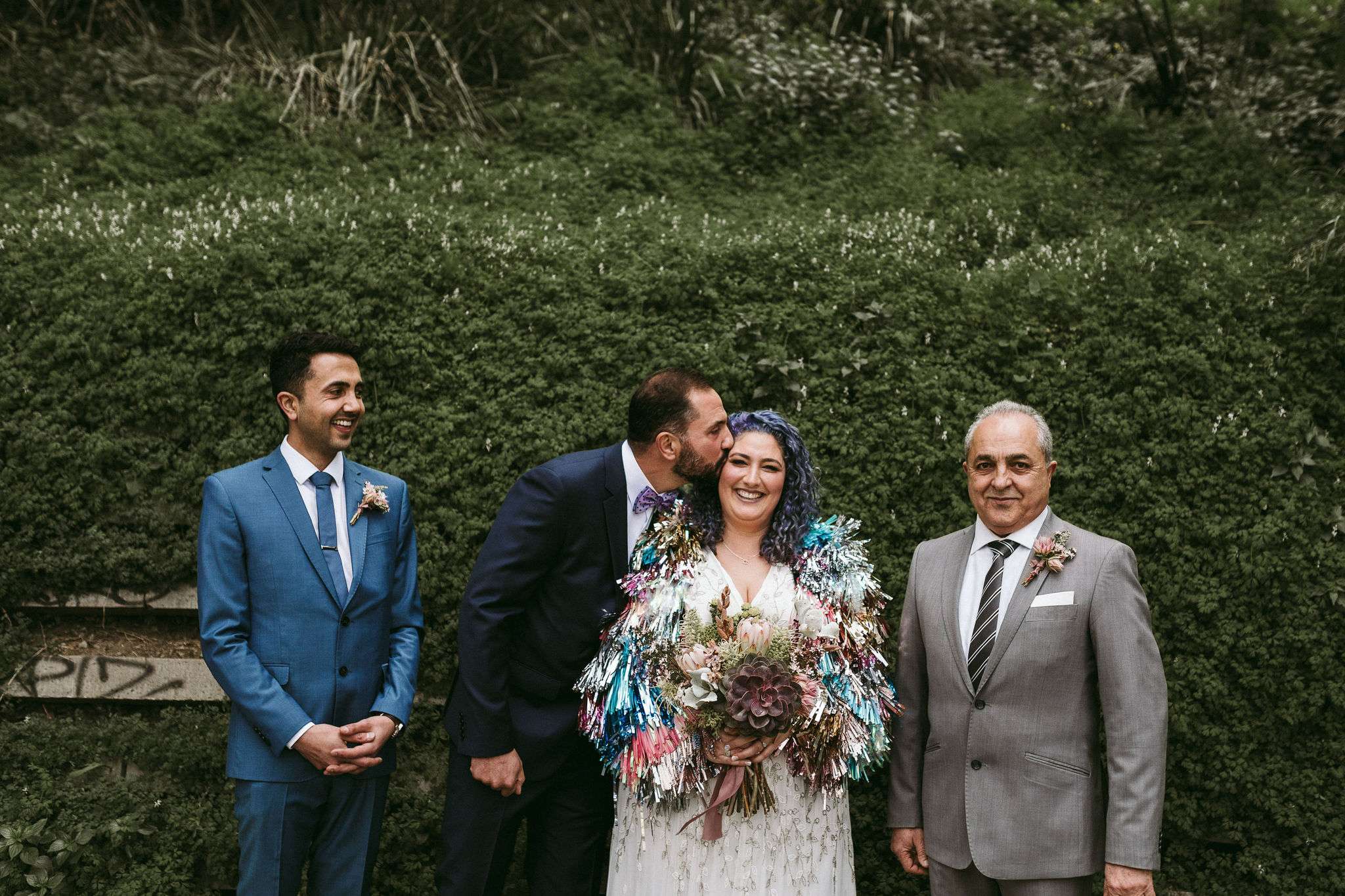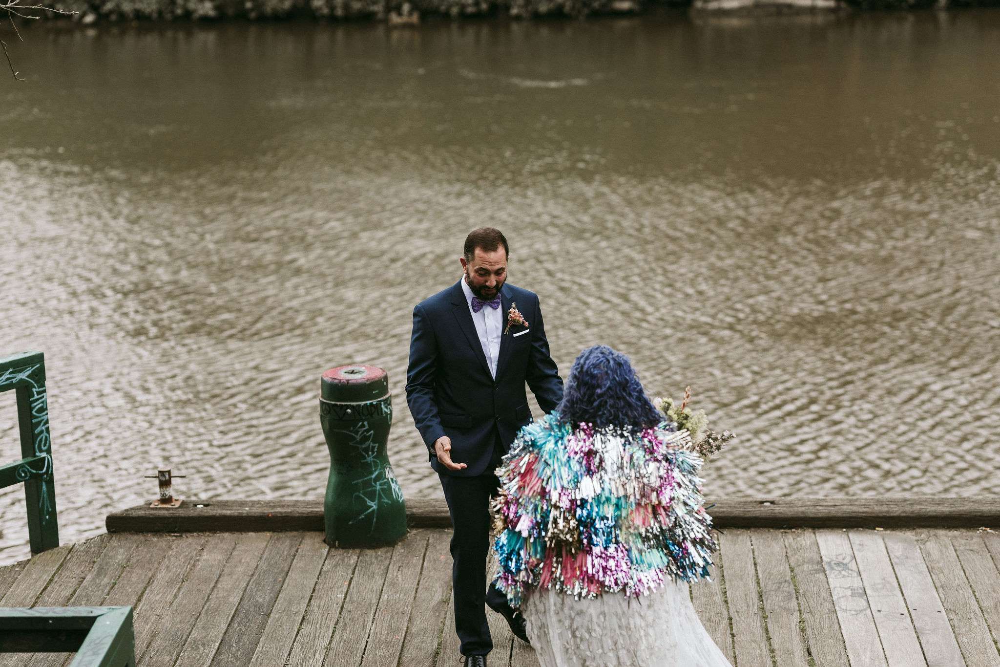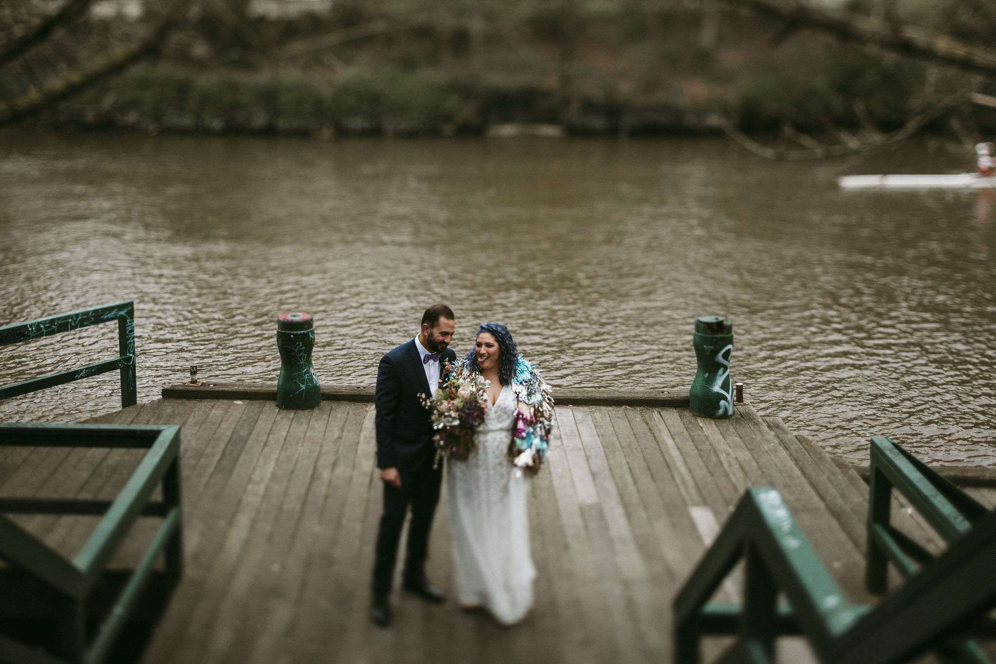They made a conscious effort to step away from all the other weddings they’d attended and focused on creating a day that suited them. They were married at Mountain Goat Beer, a working, red brick, warehouse style brewery bar in Richmond, Australia. They put their focus, and majority of their budget, on the things important to them (namely, the catering!) and left behind stuff that didn’t matter to them (such as fancy transport). Their invites were sent via Paperless Post, and they didn’t have bridesmaids or groomsmen.