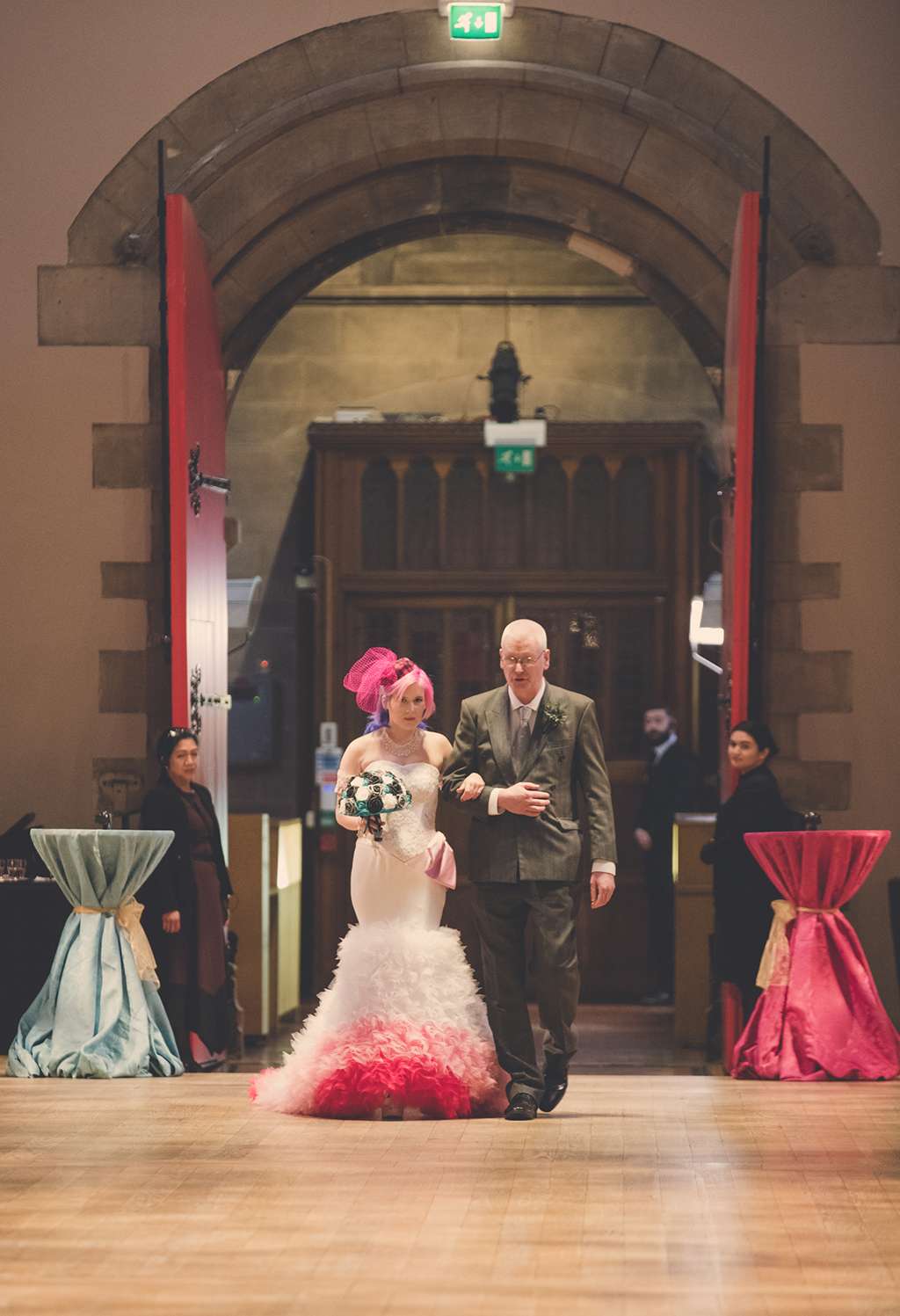 In fact, Kacii had her dress designed especially for her, “Literally none of the wedding shop bridal dresses made me swoon; I knew then i would have to create my own,” she explained. her unique, ombre fishtail number was dreamed up by her with help from Freja Designer Dressmaking, and was her dream dress… even if it proved not very practical!