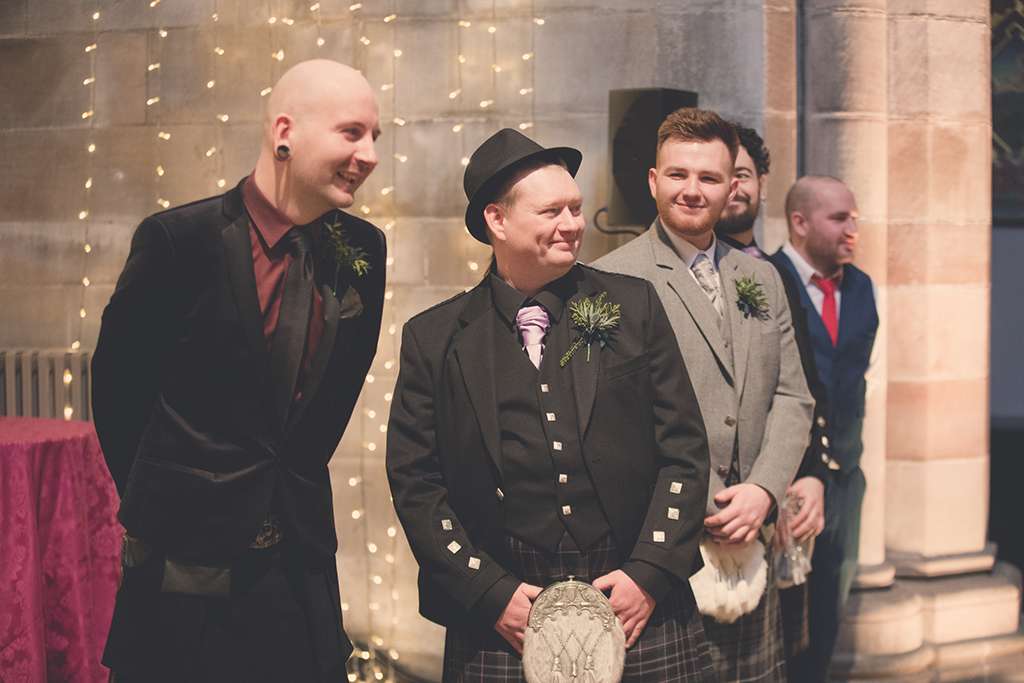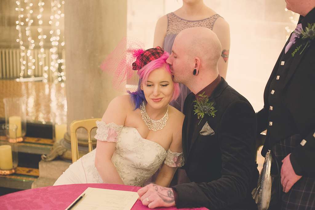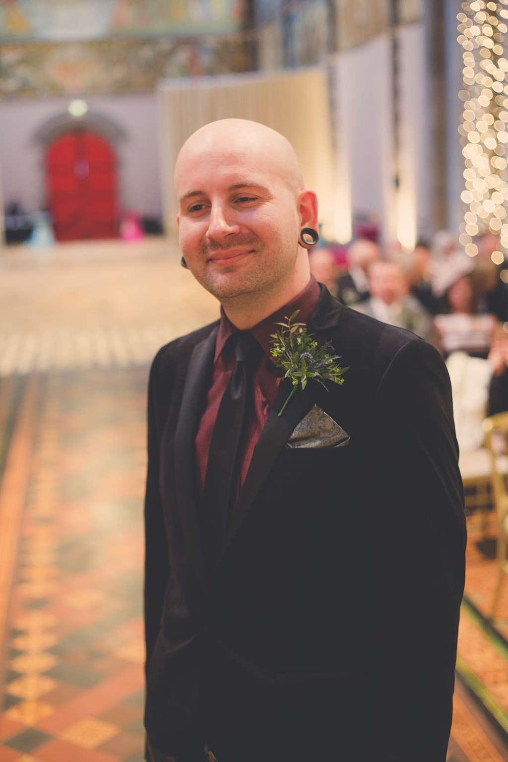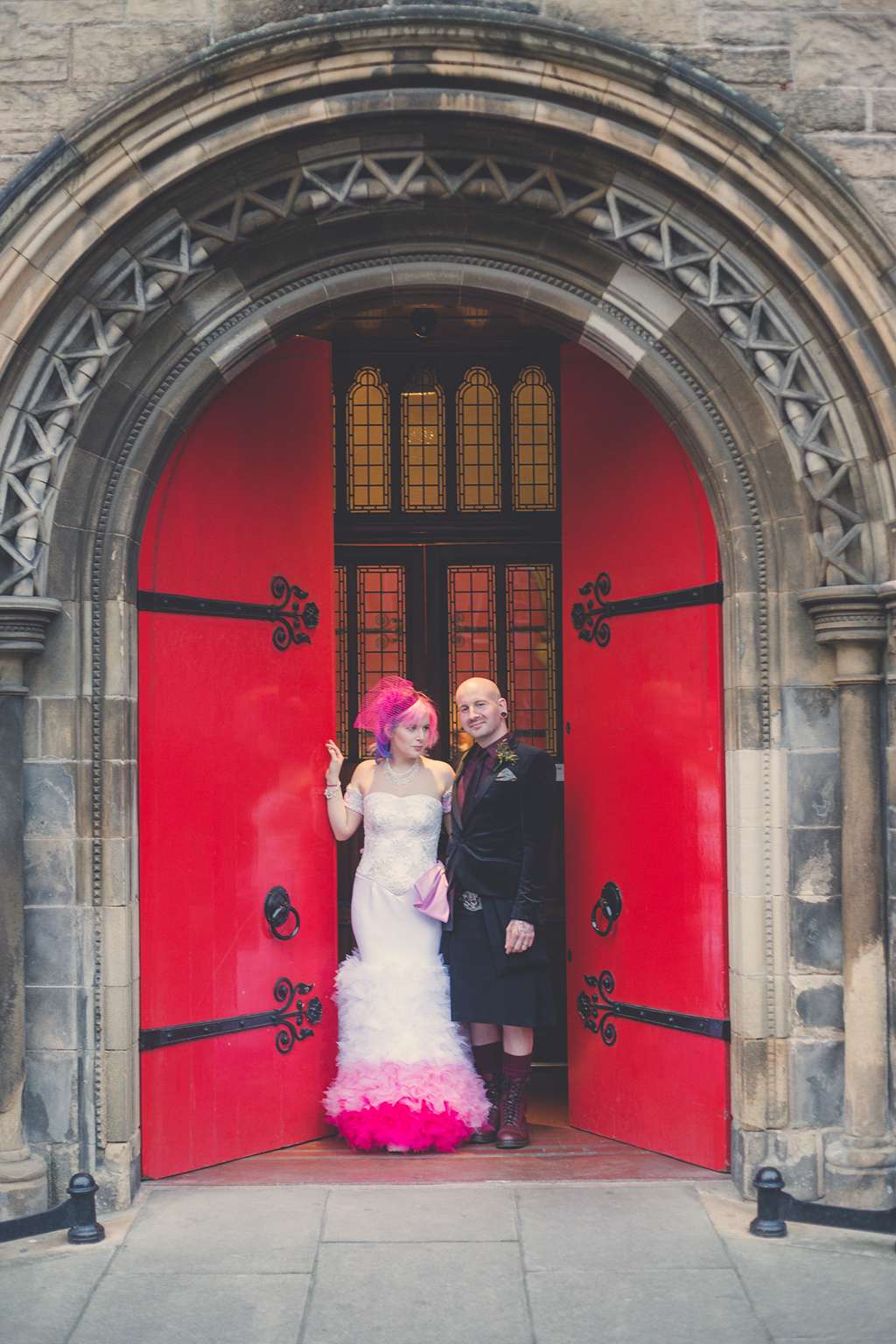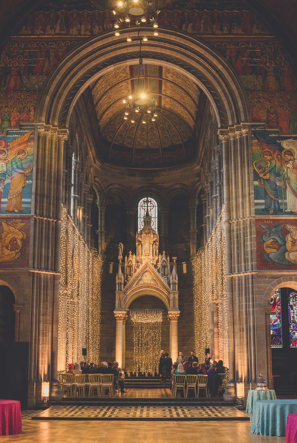 Kacii and Jay Jay married at Mansfield Traquair, Edinburgh. Known locally as ‘Edinburgh’s answer to the Sistine Chapel’, the exquisite, neo-Romanesque former church was an opulent setting for their March celebration. The couple made it their own, wanting a more casual, fun affair than is usually held there, so they eschewed the traditional expectations and did things the way they wanted!