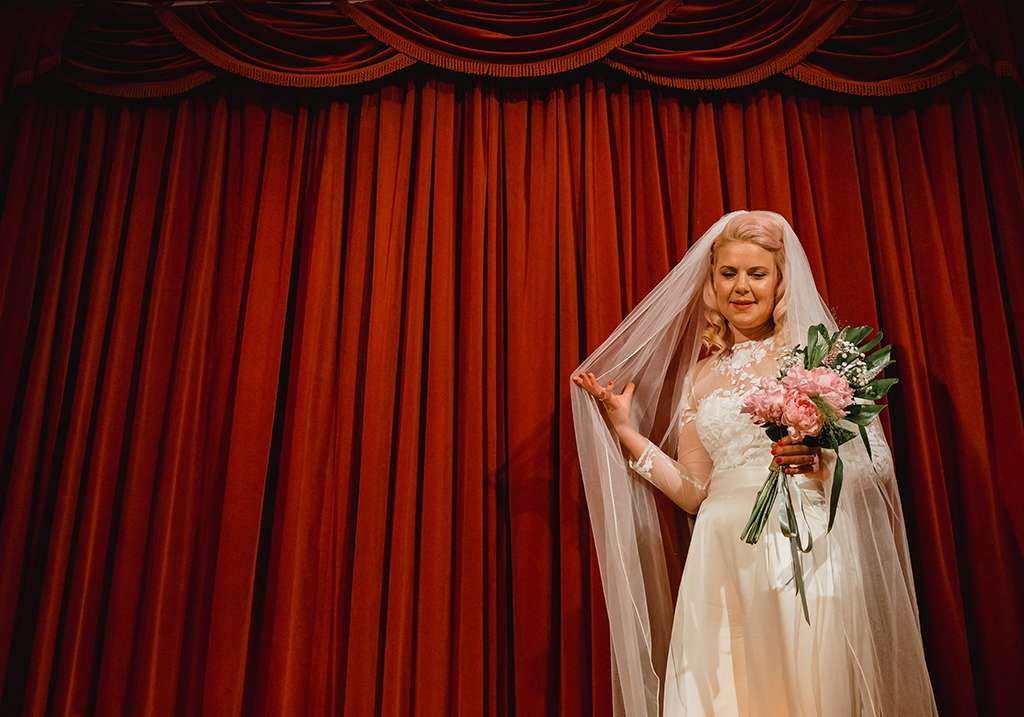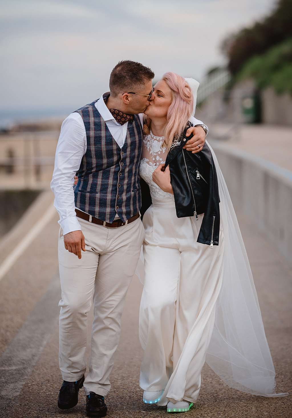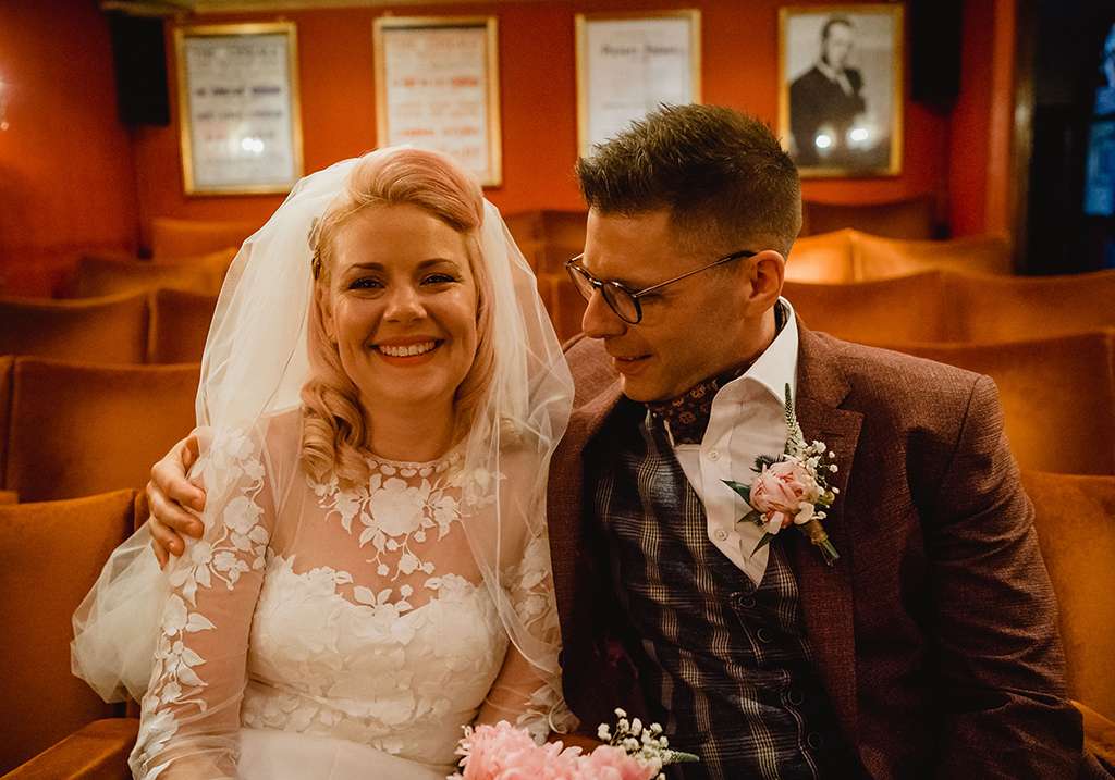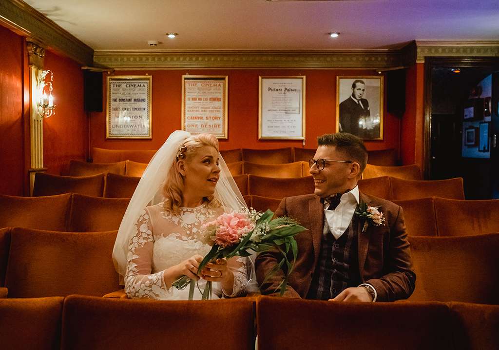 The ceremony, held at the Electric Picture Palace, was intimate with 68 guests in attendance. It was short but to the point, and still had personal touches – their page boy showed the guests to their seats and instead of a traditional wedding reading, Amy wrote a poem about Leighton which was read out by close friends. The second reading was the song lyrics from The Wedding Singer – I Wanna Grow Old With You. They signed their marriage certificate to Oh I Do Like To Be Beside The Seaside, which was fitting not only for their location but because Amy’s grandad’s great uncle wrote the lyrics! When they left the venue, there was a cascade of colourful confetti and they were greeted by their beloved dogs Alfie and Twiggy who had dressed up for the occasion in a bow tie and custom veil.