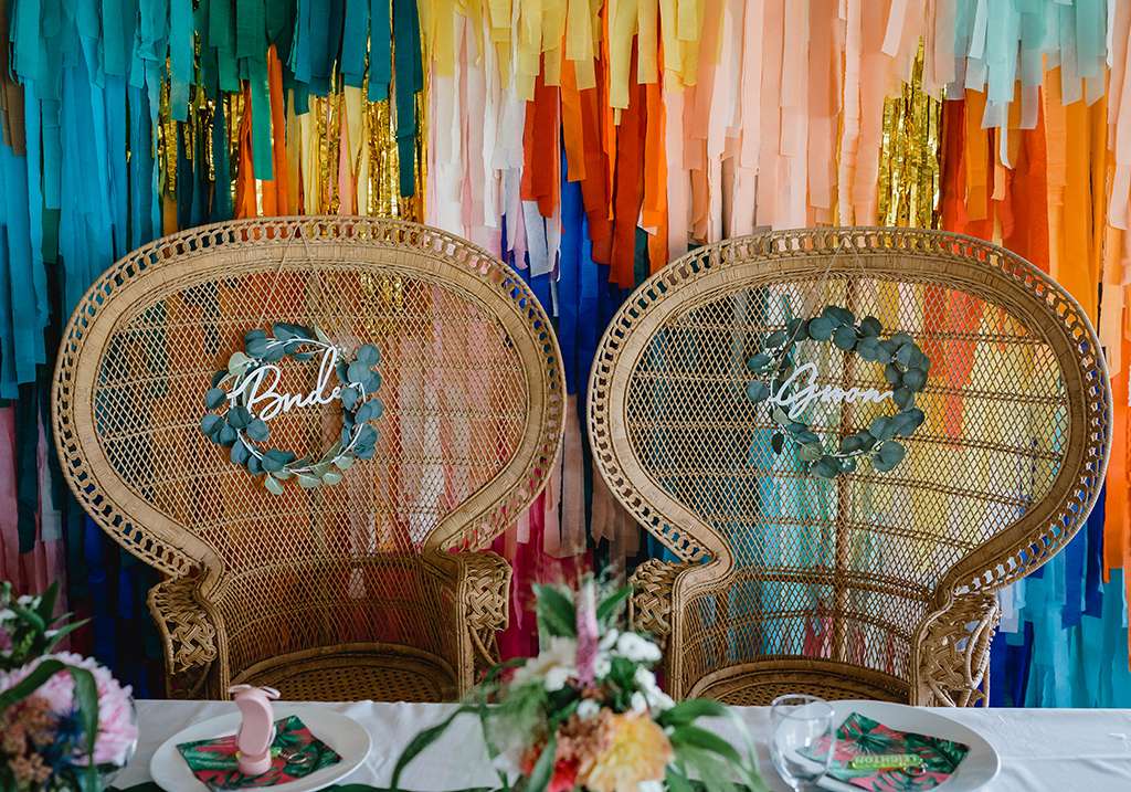 Leighton and Amy love anything related to the 1998 film The Wedding Singer, so used that as a jumping off point for the inpso for their day! Their reaction, after they got engaged and kept being asked what their colour scheme and wedding theme were, was that they aren’t matchy-matchy people and wanted to tap into all things quirky and do things their own way.