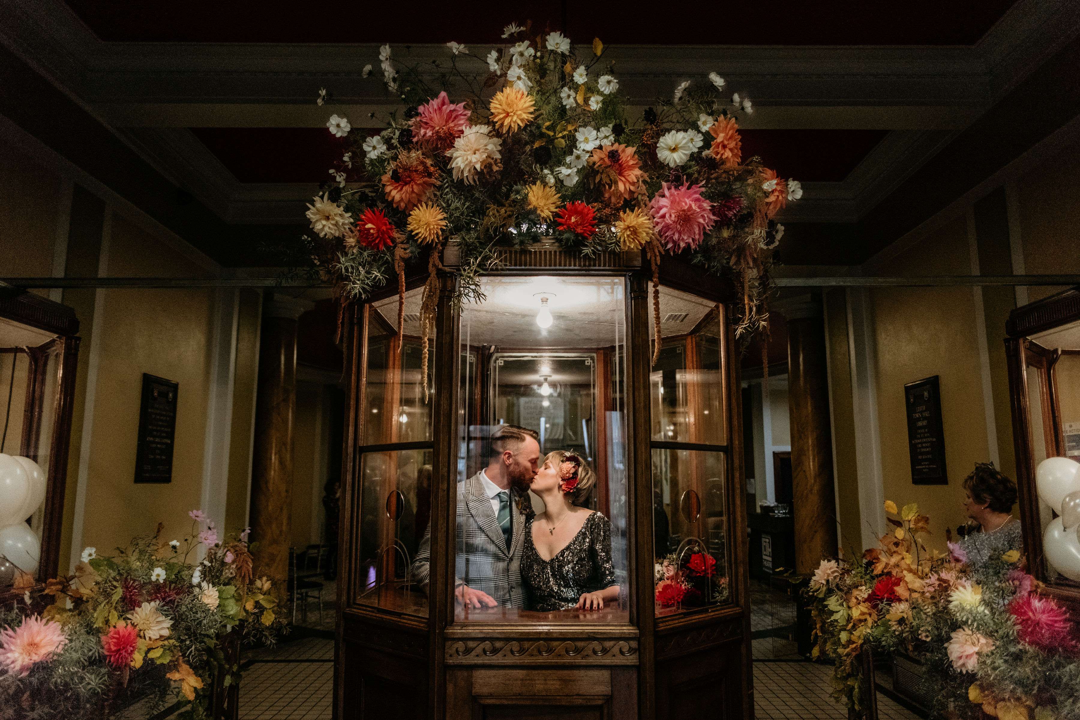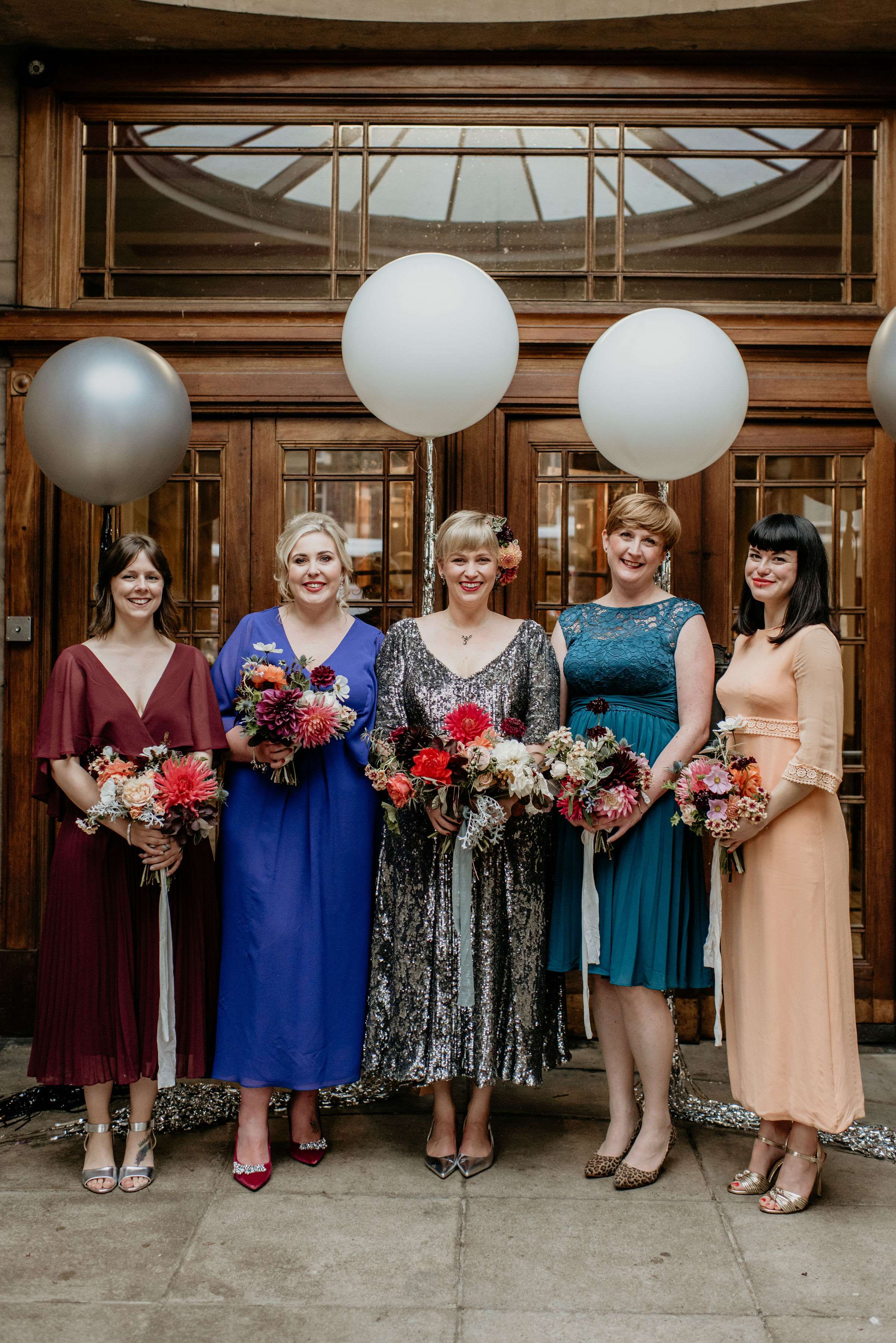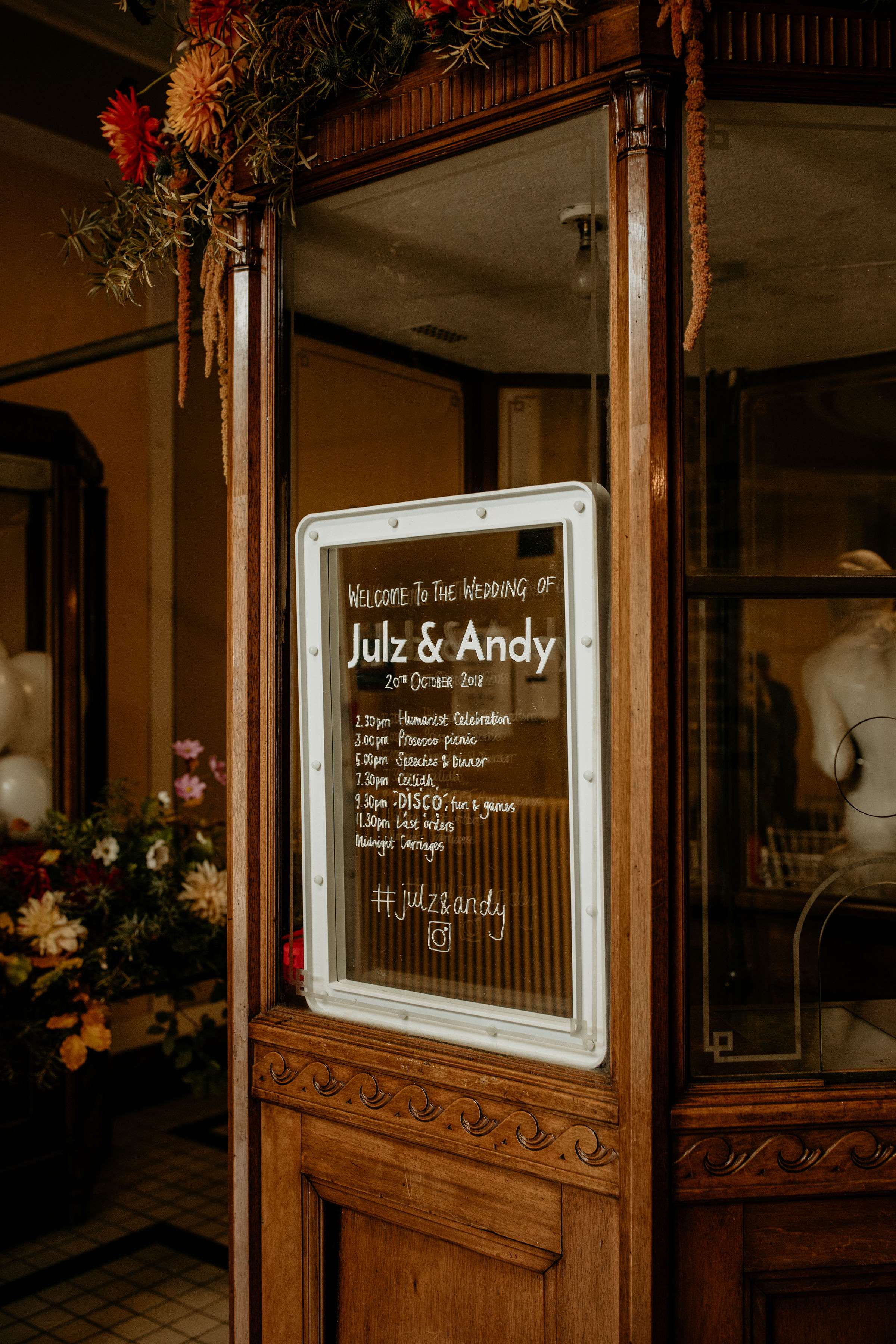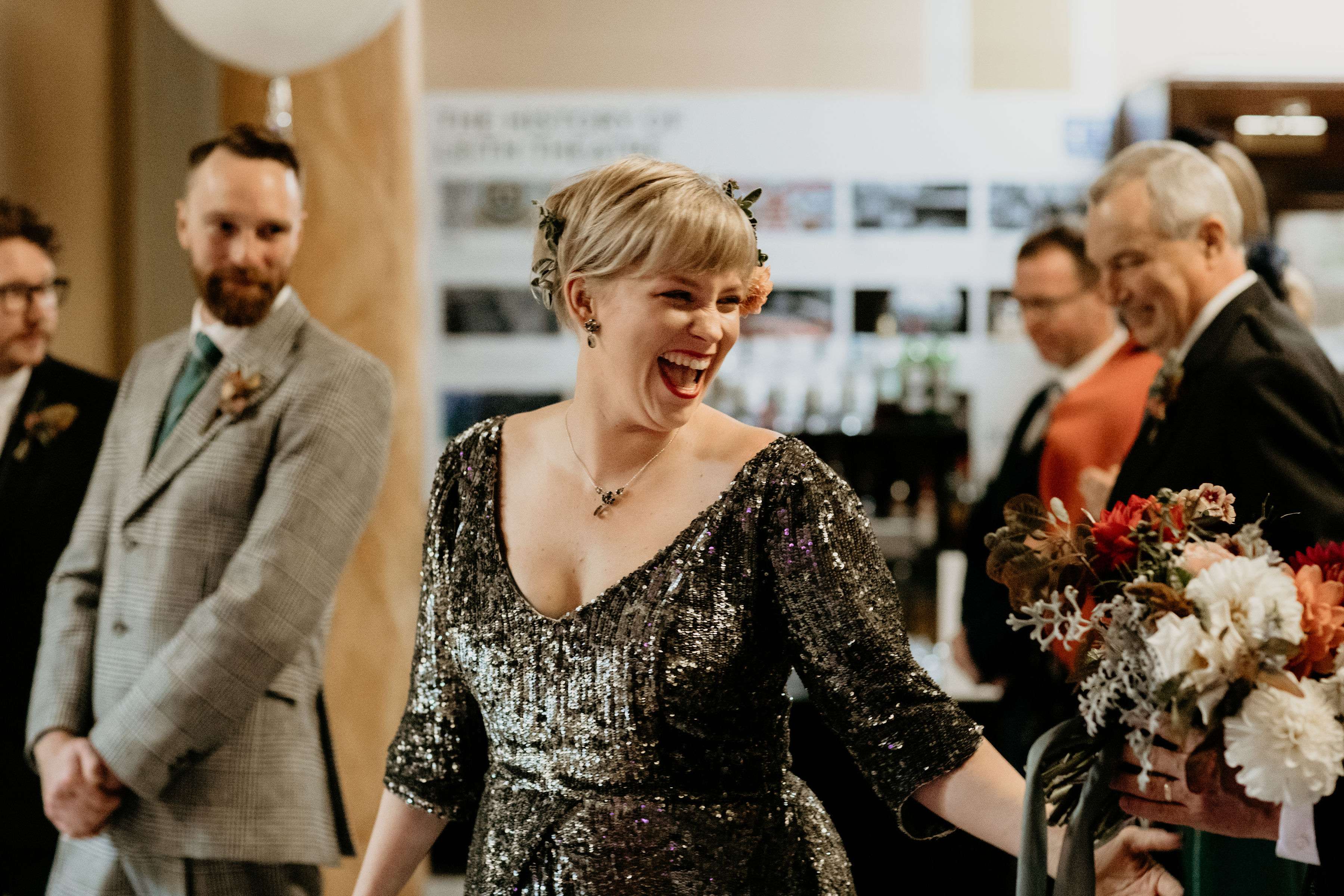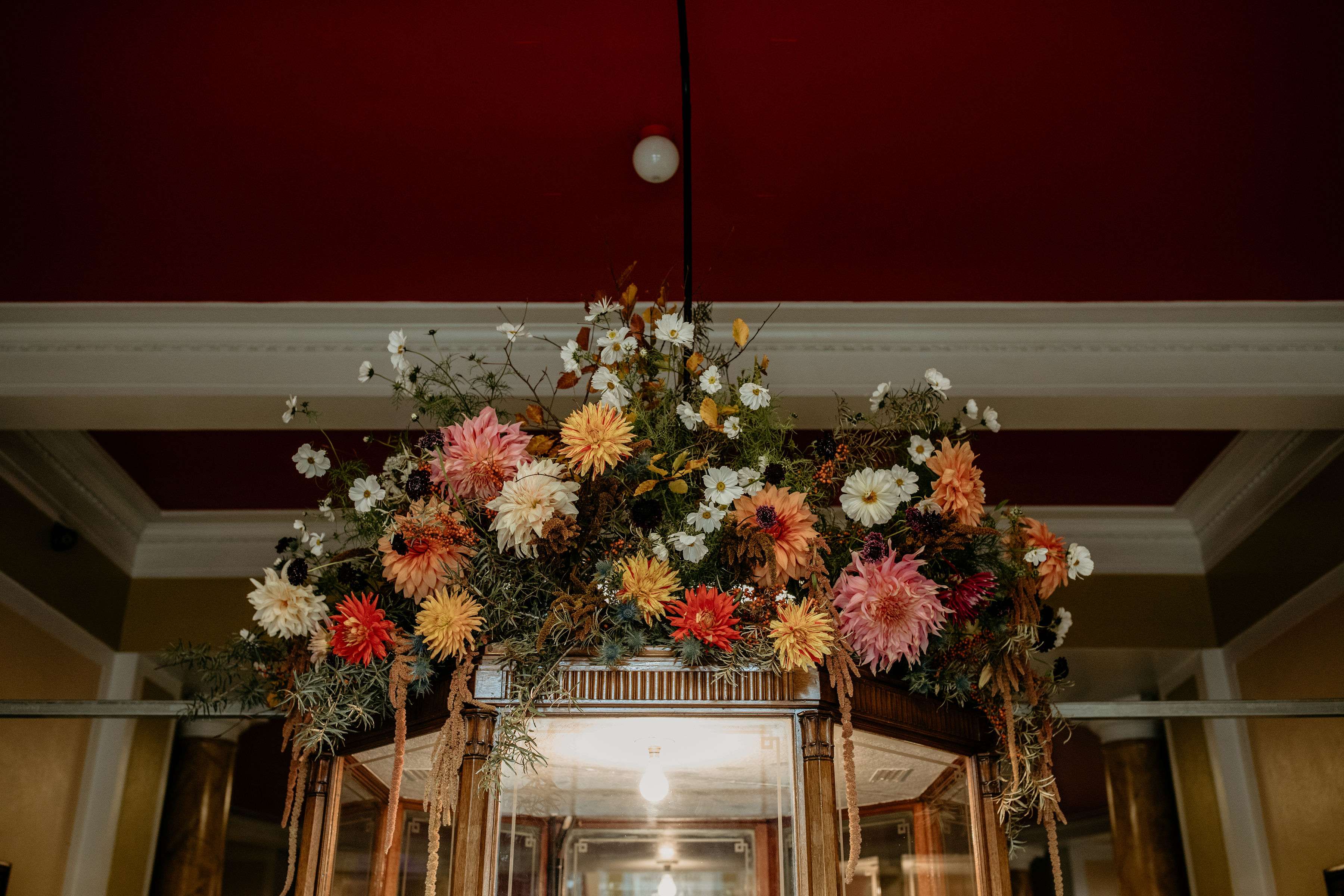 They were married in October at Leith Theatre in Edinburgh, an old art deco theatre. Although it was undergoing a massive renovation and development, it was very easy to dress because it was already is stunning. “I come from a creative background so found it really easy to dream up a ‘vision’ of how I wanted the place to look”, explained Julz. “I wanted flowers, food, disco and autumn rolled into one.”