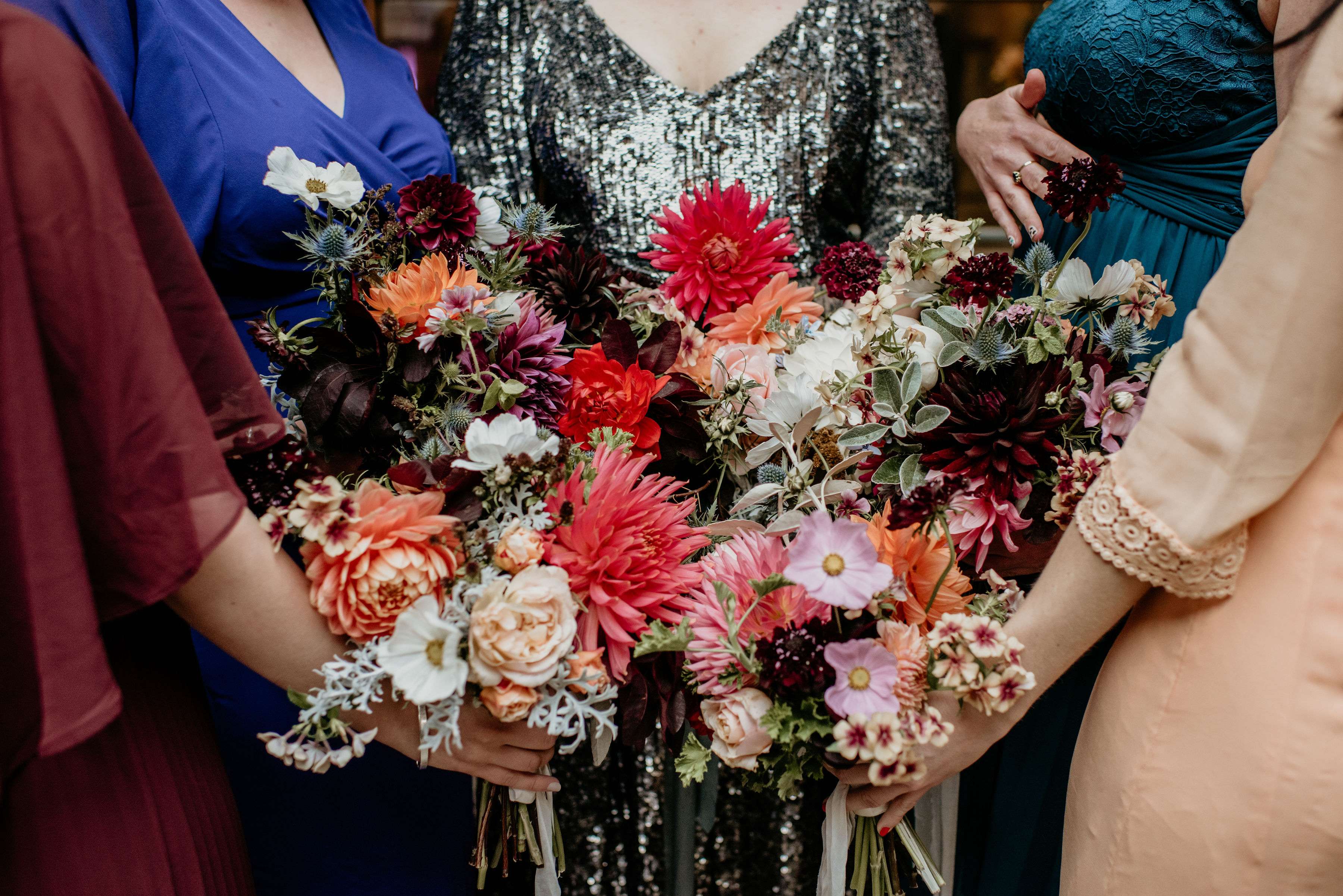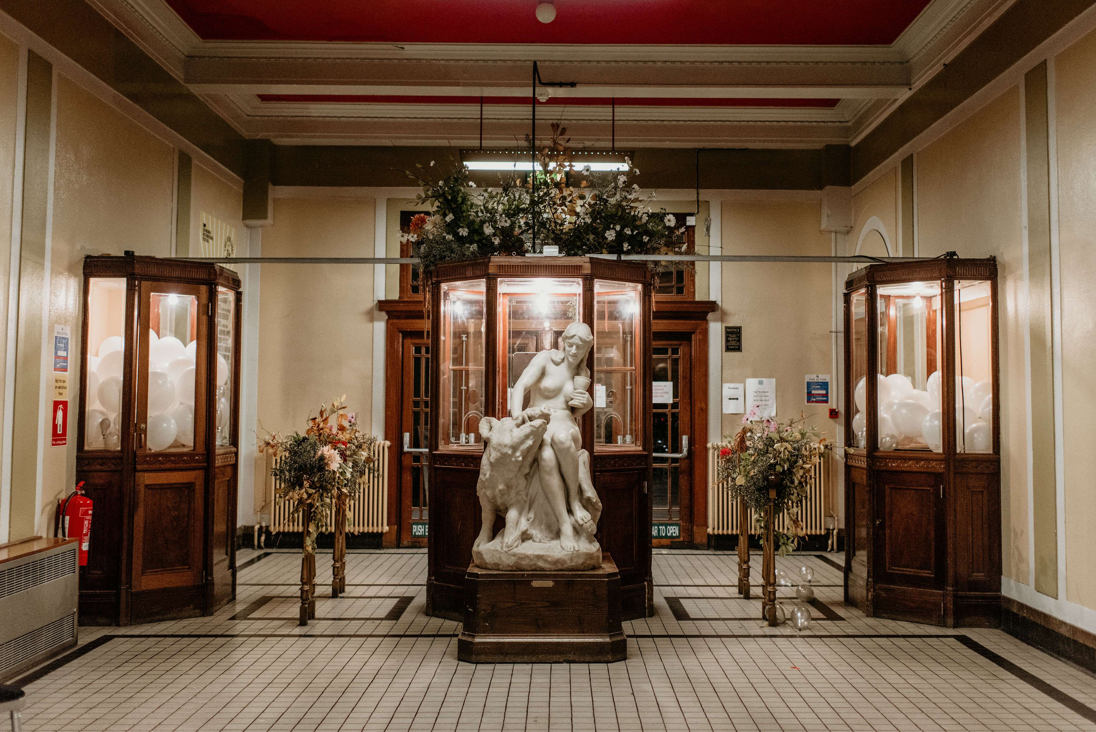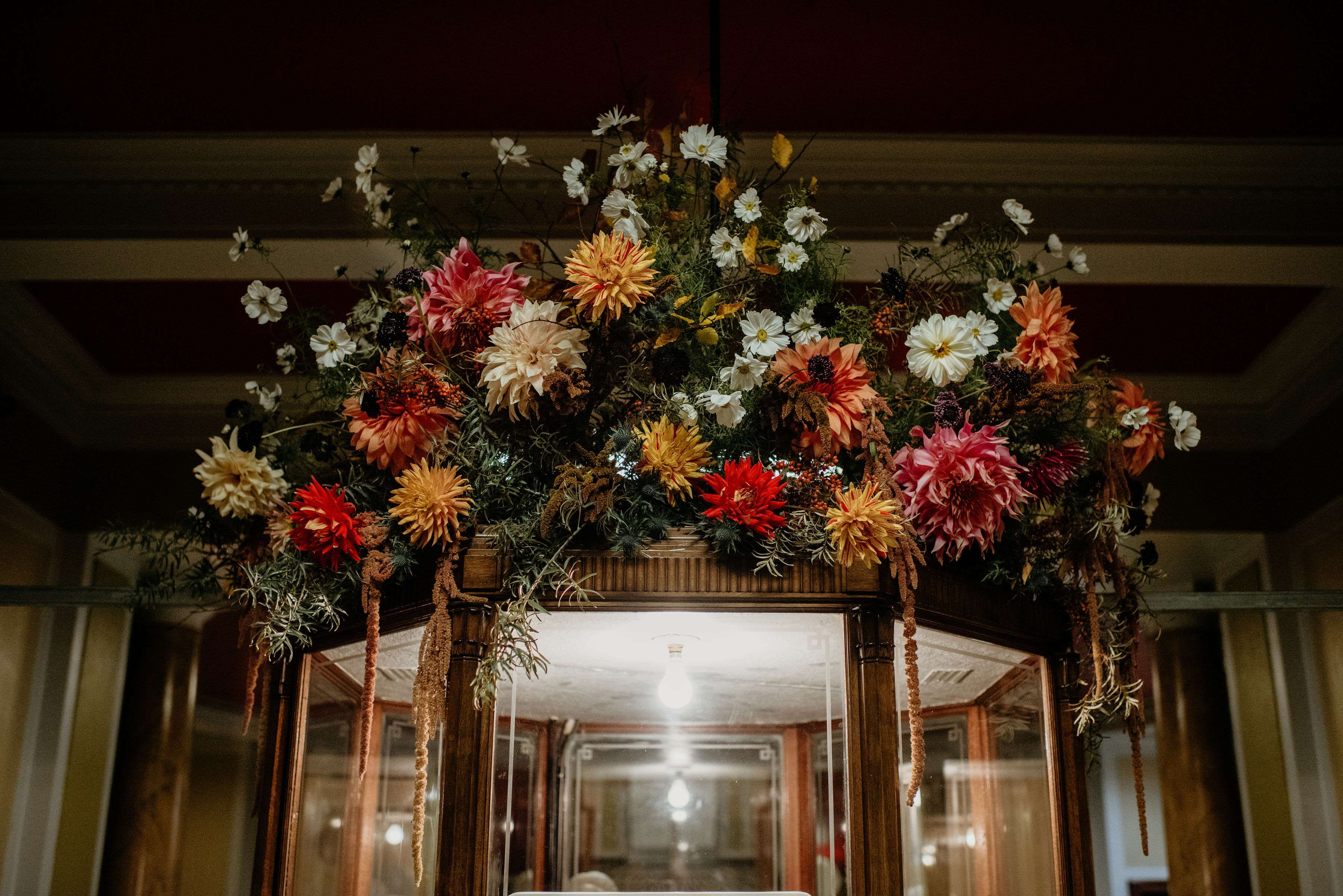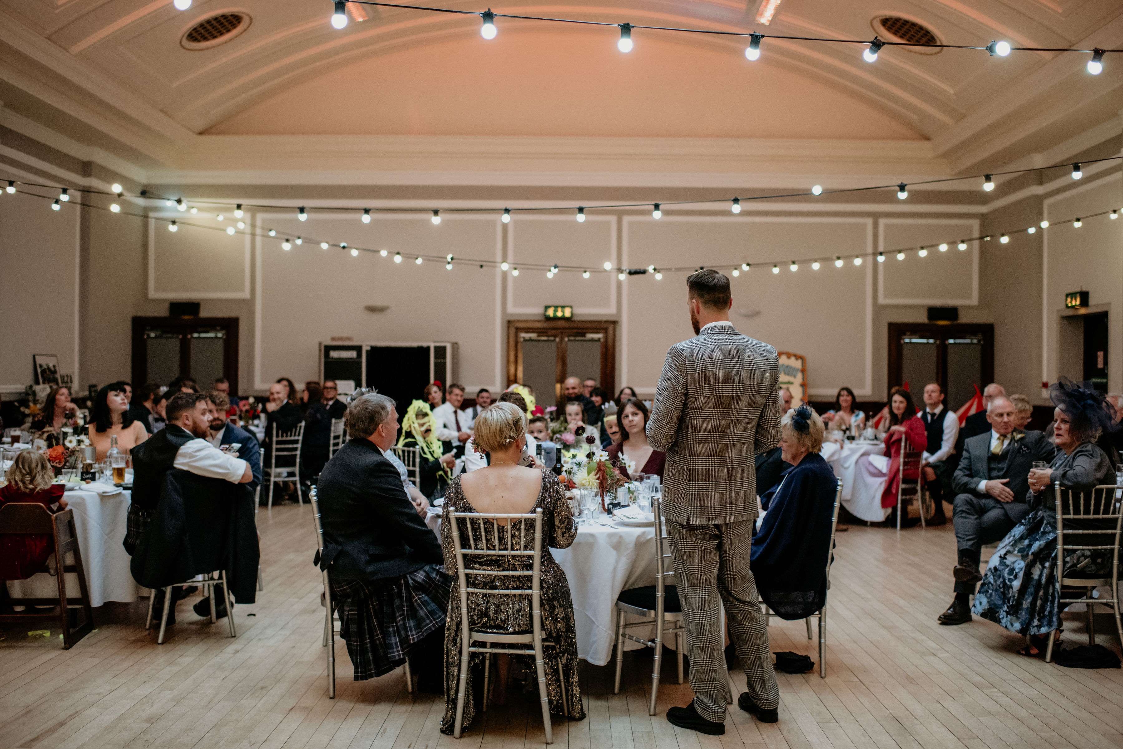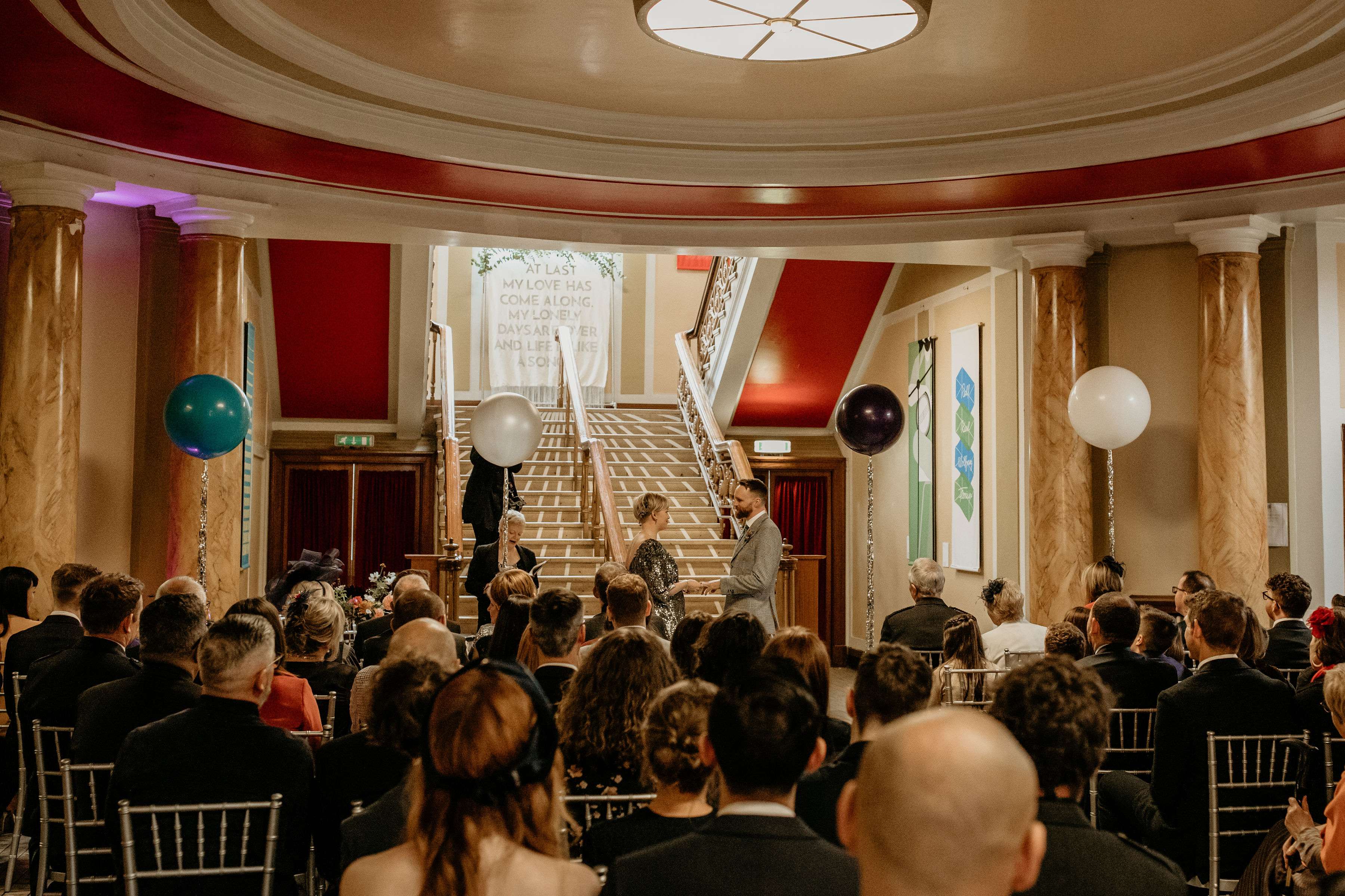 They were married in October at Leith Theatre in Edinburgh, an old art deco theatre. Although it was undergoing a massive renovation and development, it was very easy to dress because it was already is stunning. “I come from a creative background so found it really easy to dream up a ‘vision’ of how I wanted the place to look”, explained Julz. “I wanted flowers, food, disco and autumn rolled into one.”