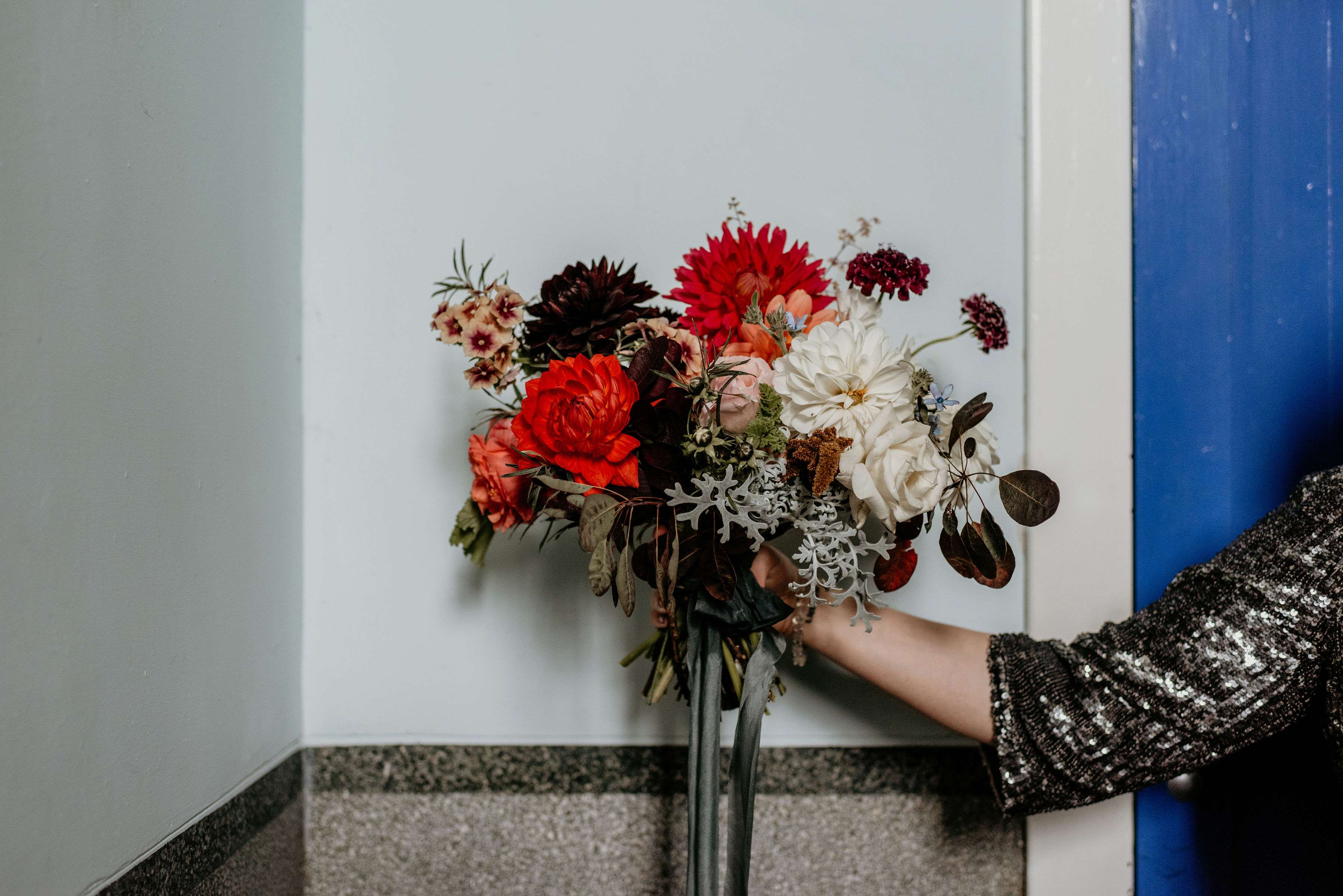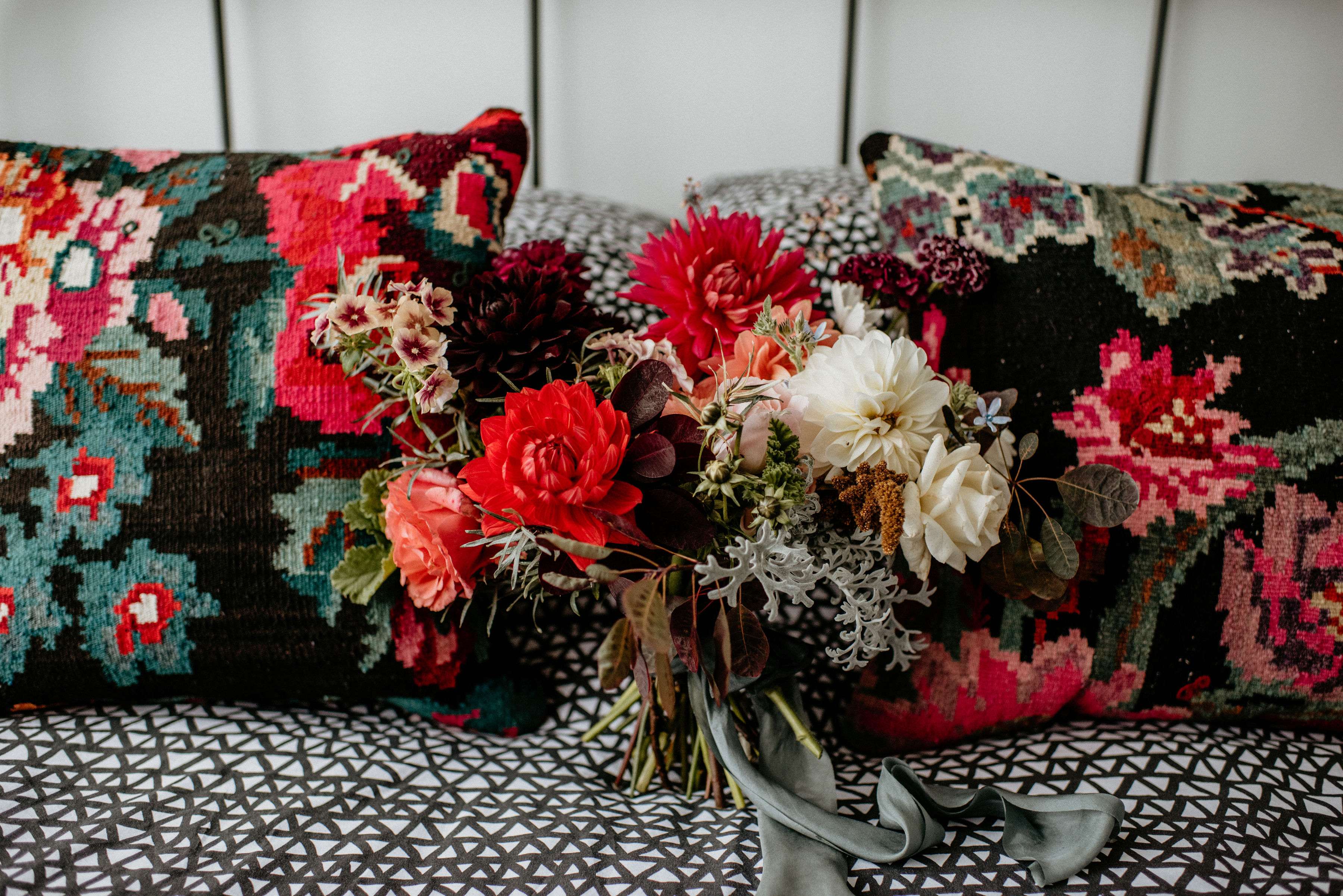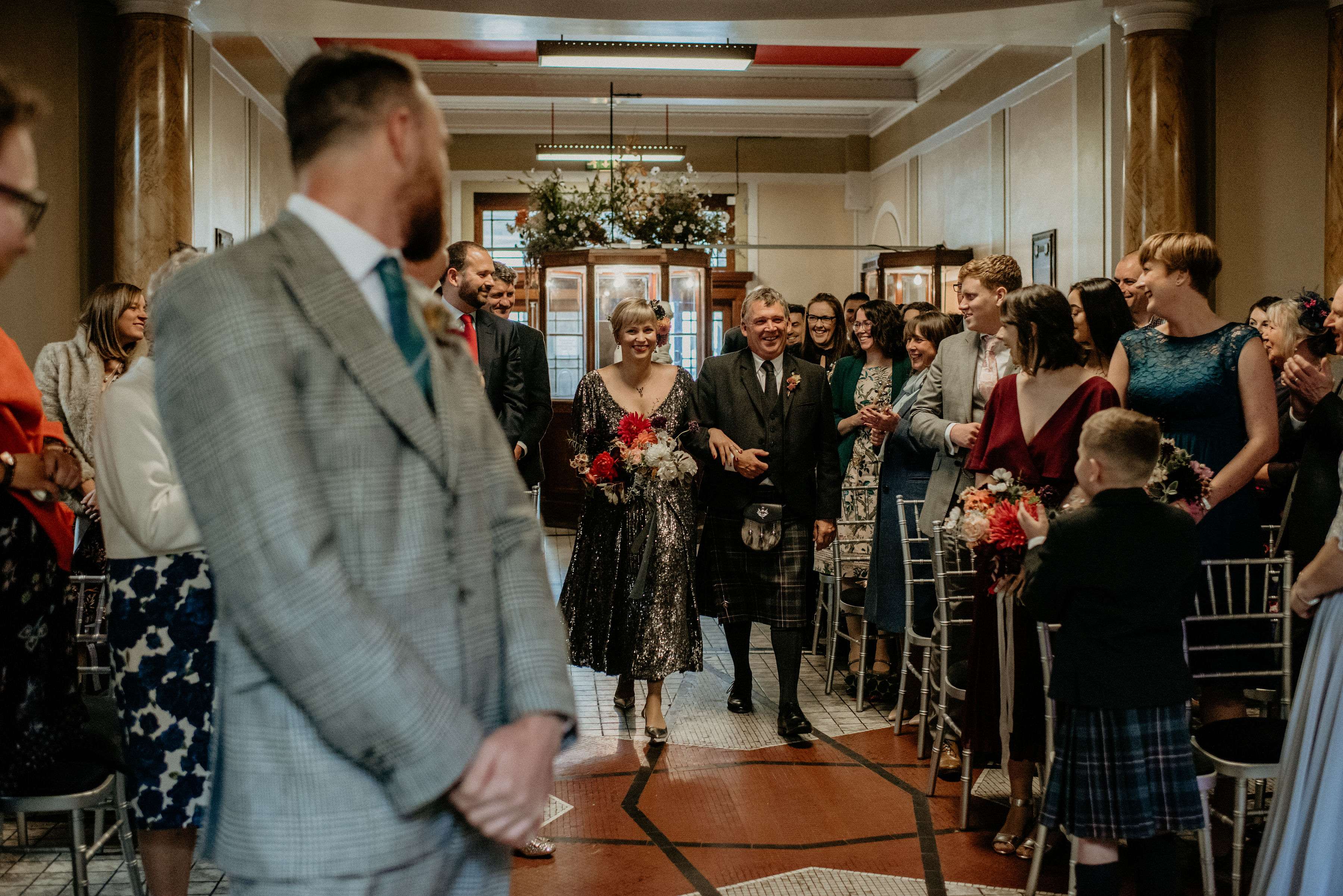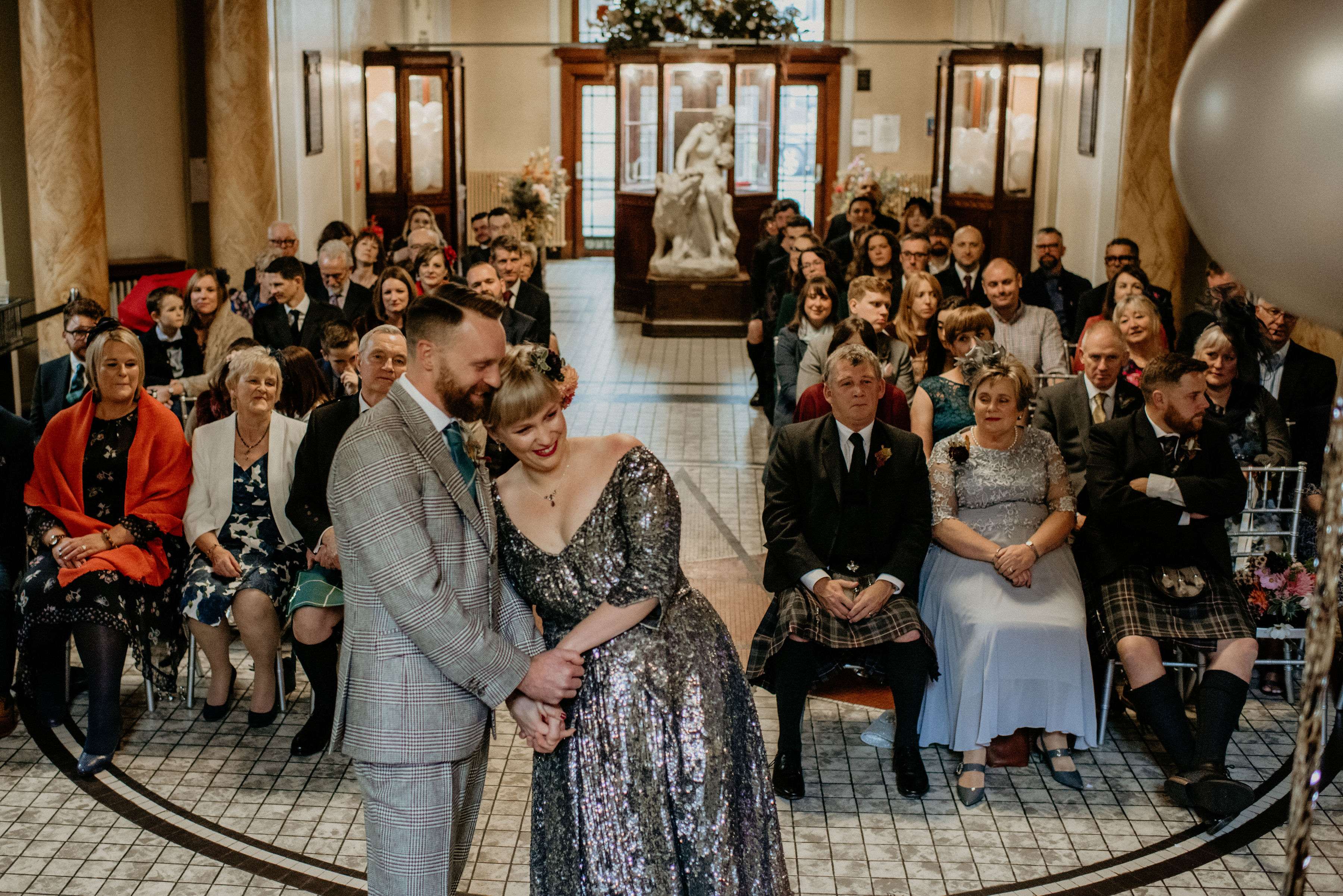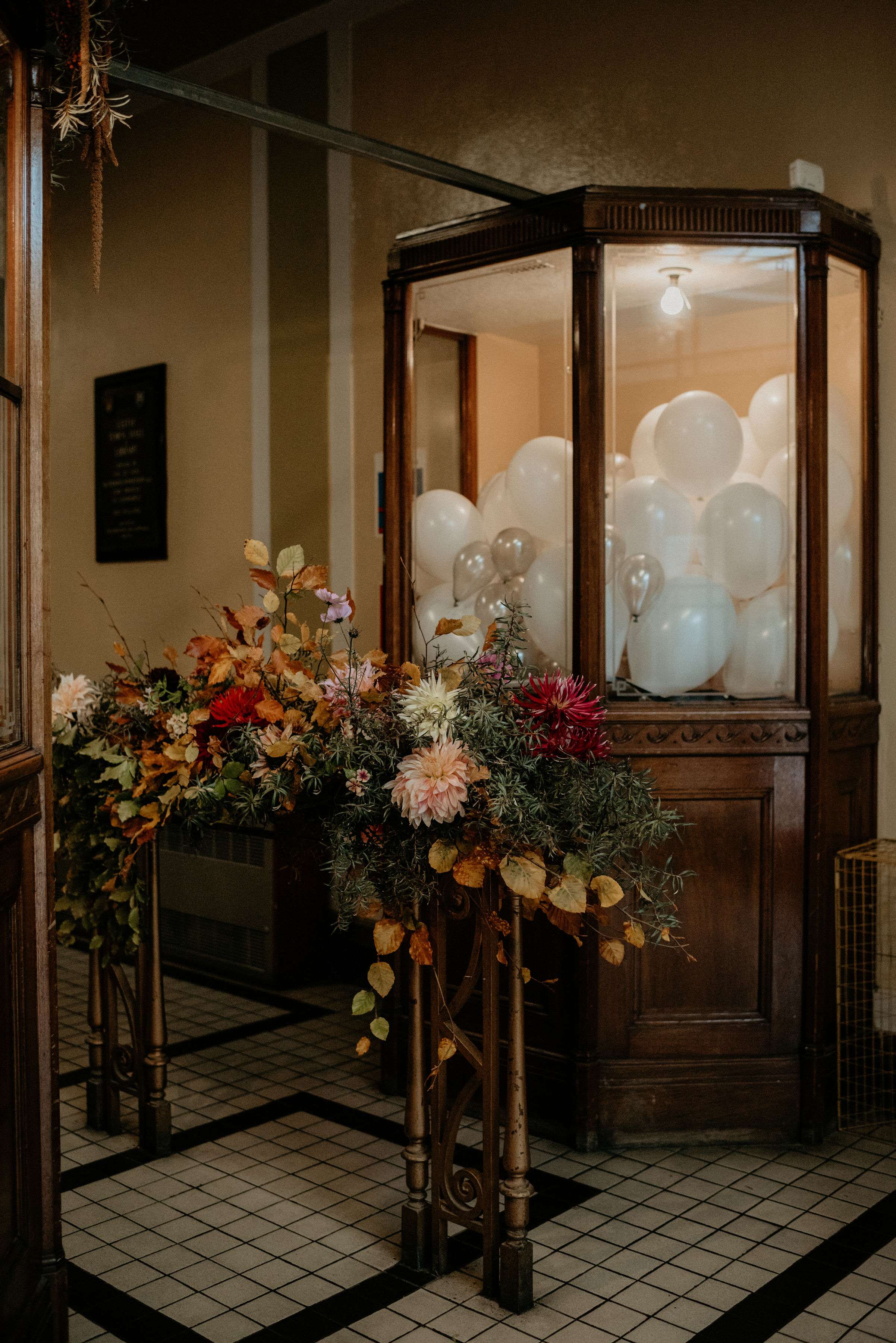They were married in October at Leith Theatre in Edinburgh, an old art deco theatre. Although it was undergoing a massive renovation and development, it was very easy to dress because it was already is stunning. “I come from a creative background so found it really easy to dream up a ‘vision’ of how I wanted the place to look”, explained Julz. “I wanted flowers, food, disco and autumn rolled into one.”