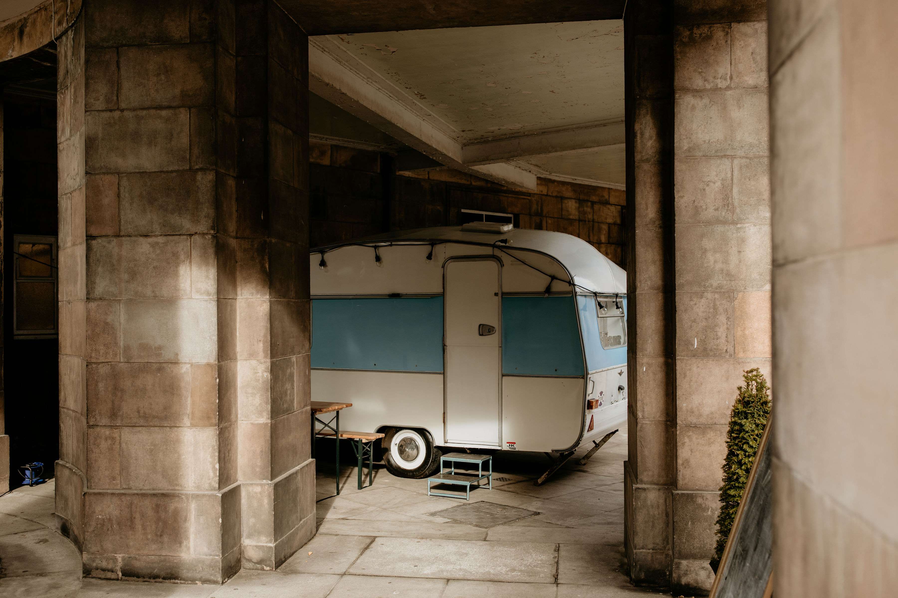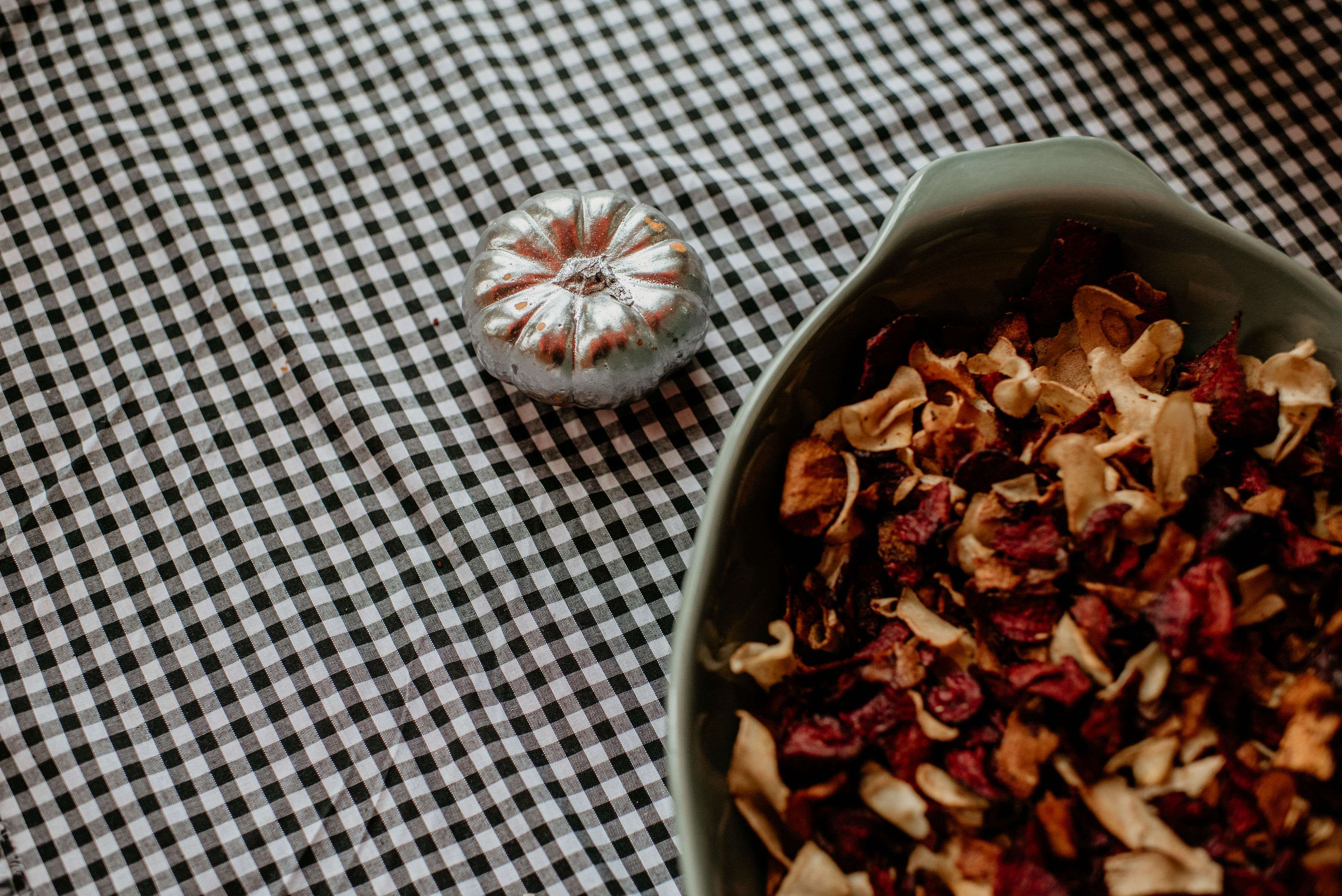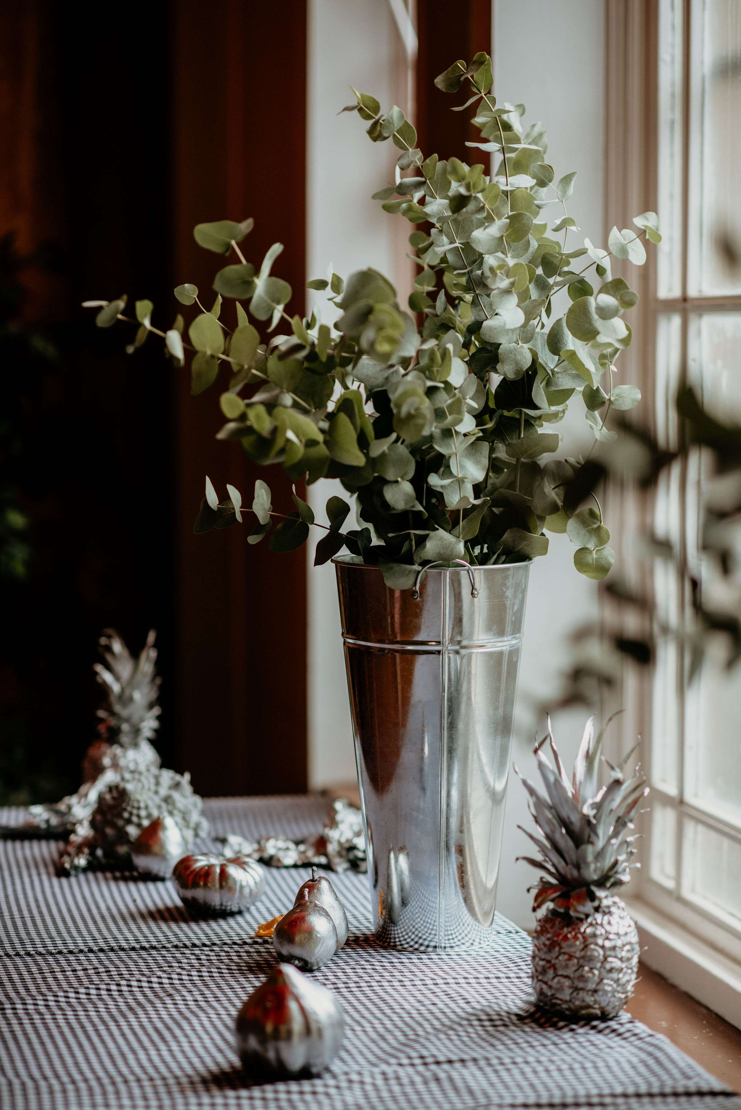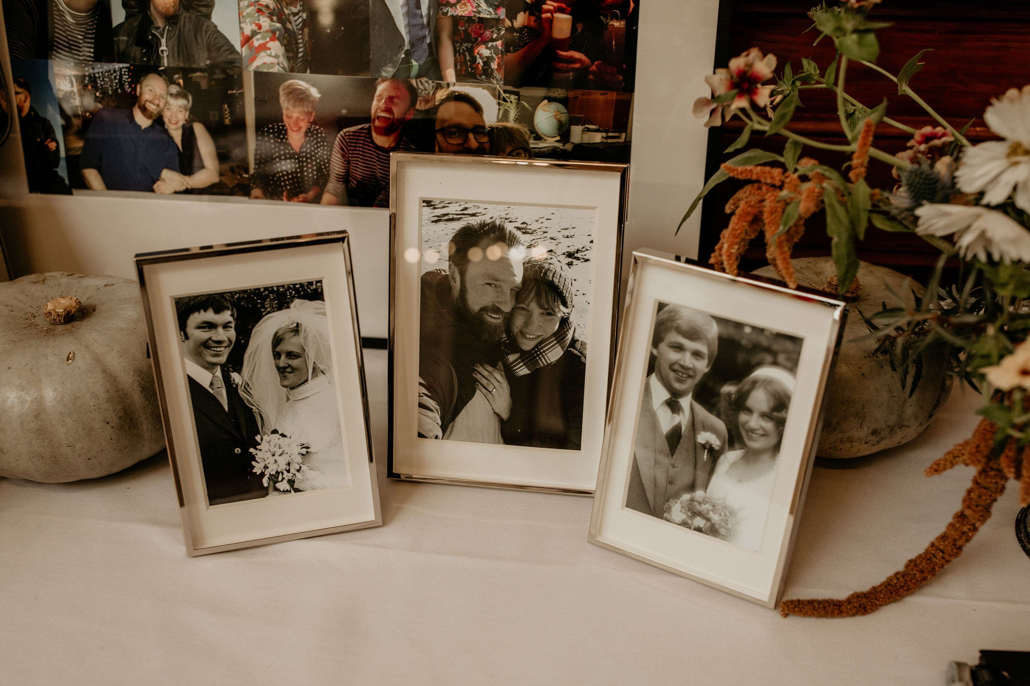 After their short but sweet ceremony the couple had a mini-picnic together in their own 1960s caravan that they parked outside the venue. “It was a really lovely moment. We got to laugh, chat and eat food as husband and wife! ( I also got to take off the tights I had been wearing, they were so uncomfortable!)” They then headed over to their reception which was decorated by their florist and themselves with silver spray-painted pumpkins, pineapples and pears.