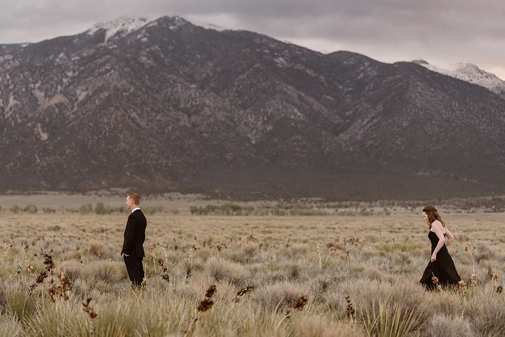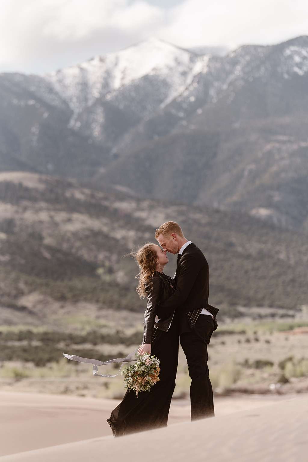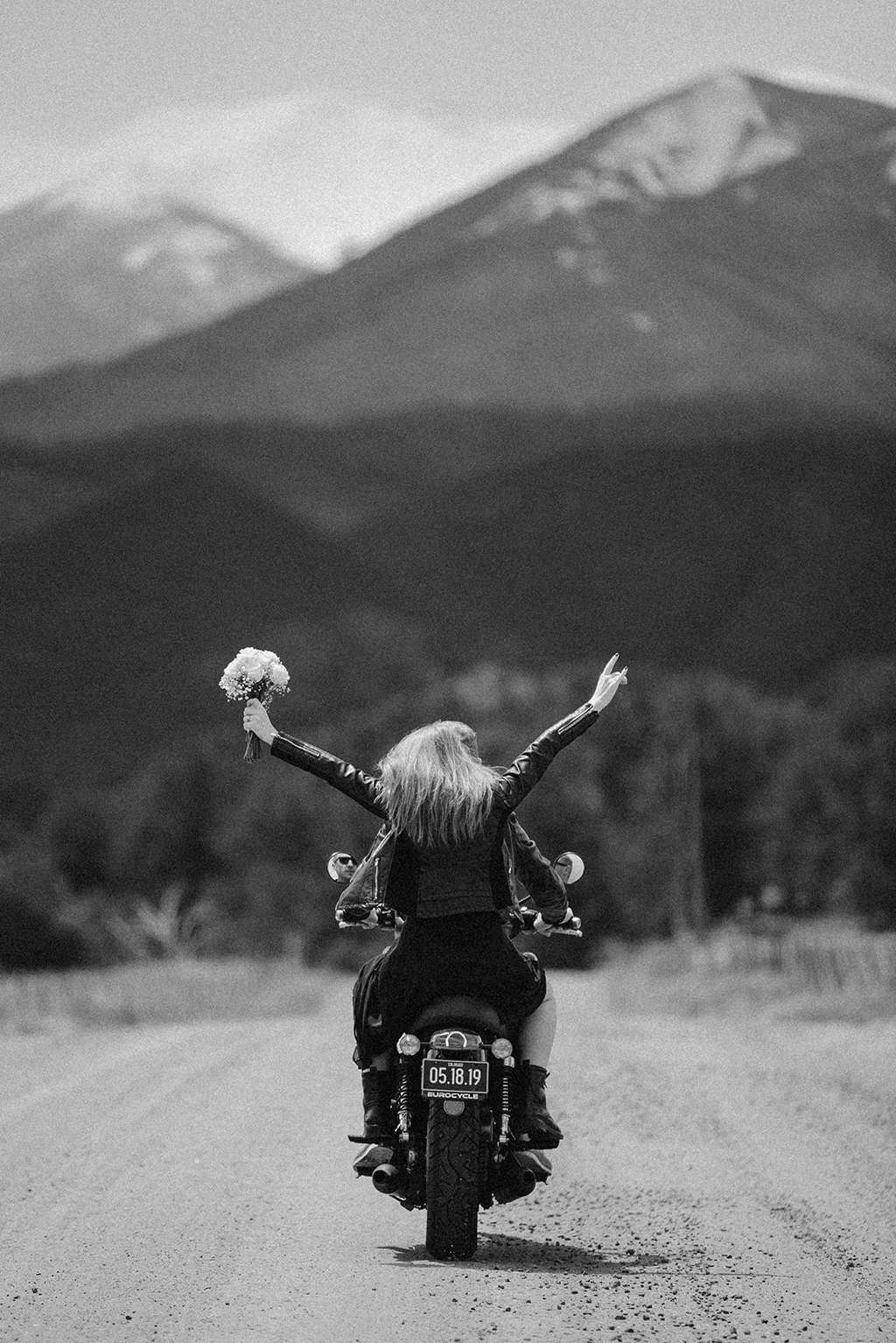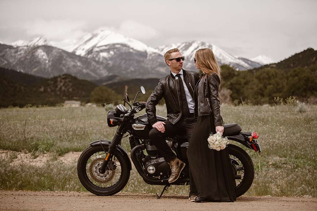In May 2019, Kate and Chris rode a Triumph Bonneville from Boulder to the Great Sand Dunes in Colorado, stopping along route to take in the breathtaking surroundings and for photo ops. They were joined only by their dear friend and photographer, Amber, who had also been monumental in getting the couple together; it was only right that she was the one to photograph their day.