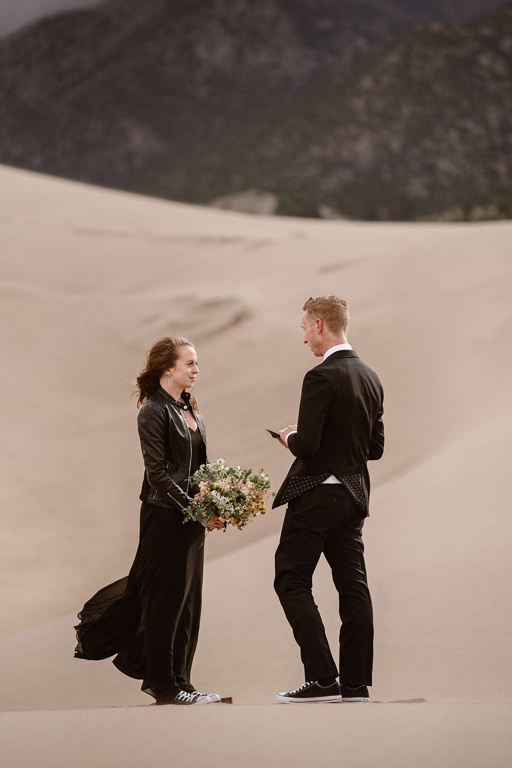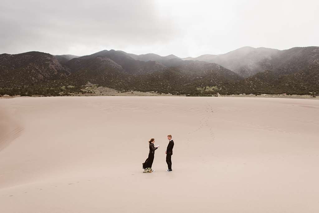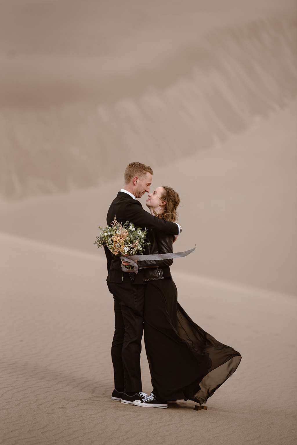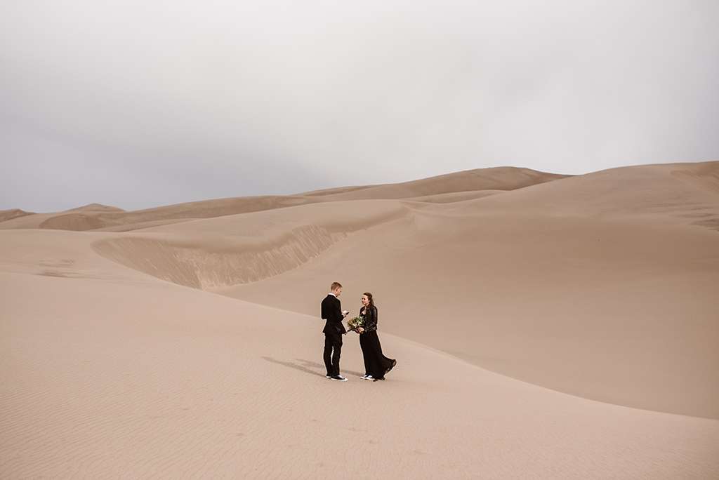 As you can self-solemnise in Colorado, Chris and Kate didn’t have an officiant to conduct their ceremony; they read personal vows to one another in the middle of the empty Great Sand Dunes, and transcribed them into Apollo Mission themed field-note books; “The Apollo Mission holds a sentimental place in Chris’s life and the full moon a special place in mine, so we wrote in each other’s books—something we will cherish forever.” They also had a custom license plate made for the motorcycle with their wedding date on it, that they also have as a momento of their day.