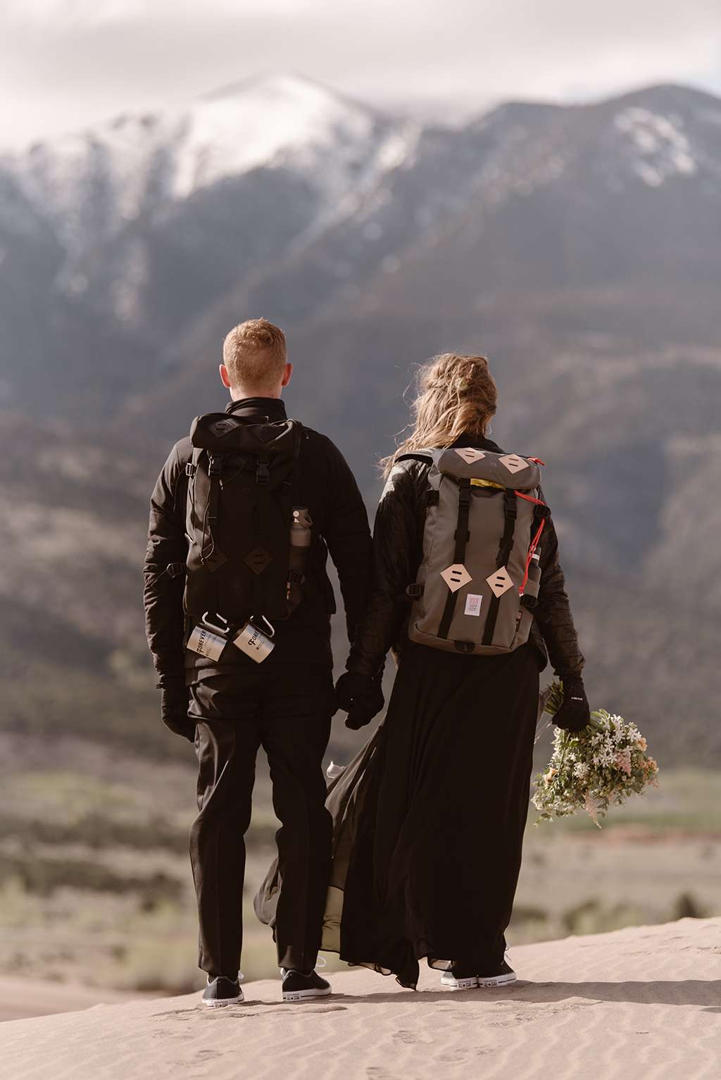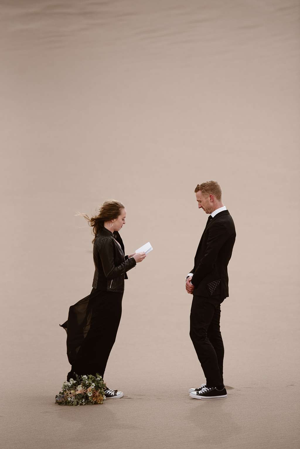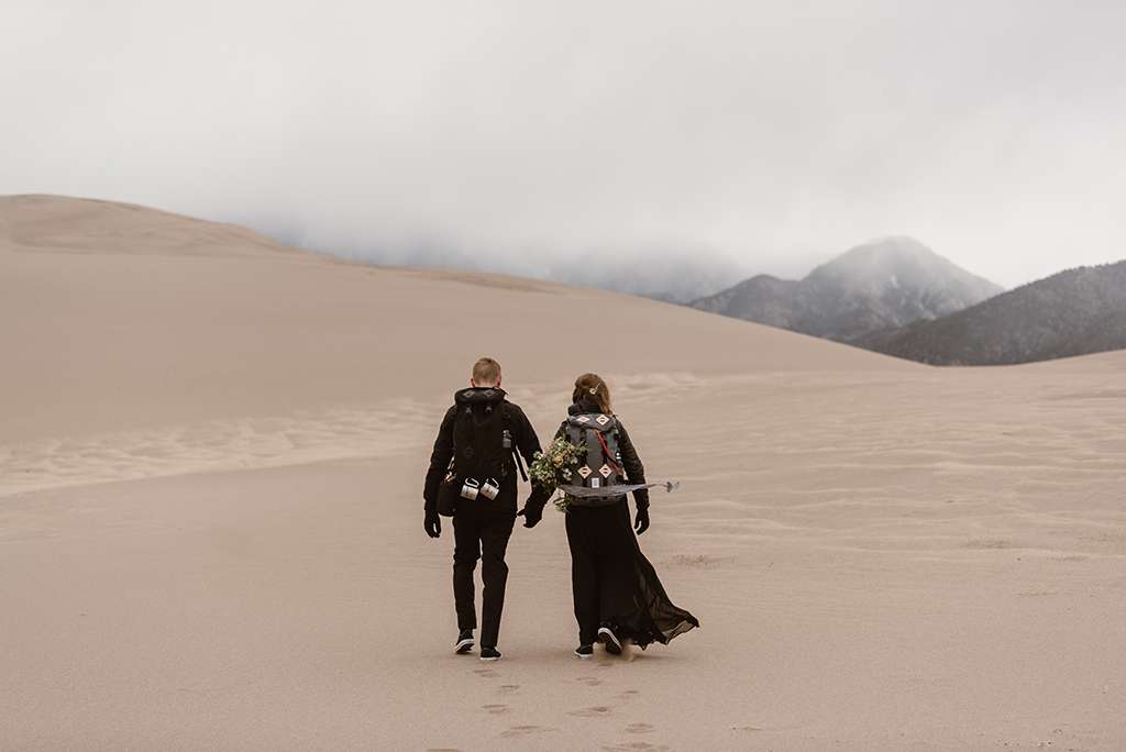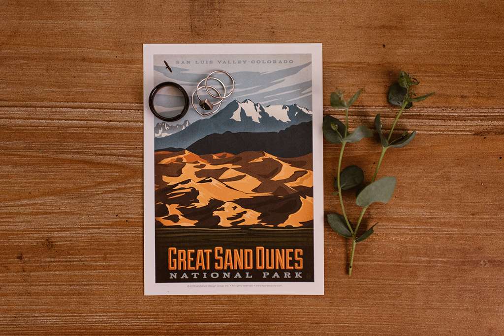 As you can self-solemnise in Colorado, Chris and Kate didn’t have an officiant to conduct their ceremony; they read personal vows to one another in the middle of the empty Great Sand Dunes, and transcribed them into Apollo Mission themed field-note books; “The Apollo Mission holds a sentimental place in Chris’s life and the full moon a special place in mine, so we wrote in each other’s books—something we will cherish forever.” They also had a custom license plate made for the motorcycle with their wedding date on it, that they also have as a momento of their day.
